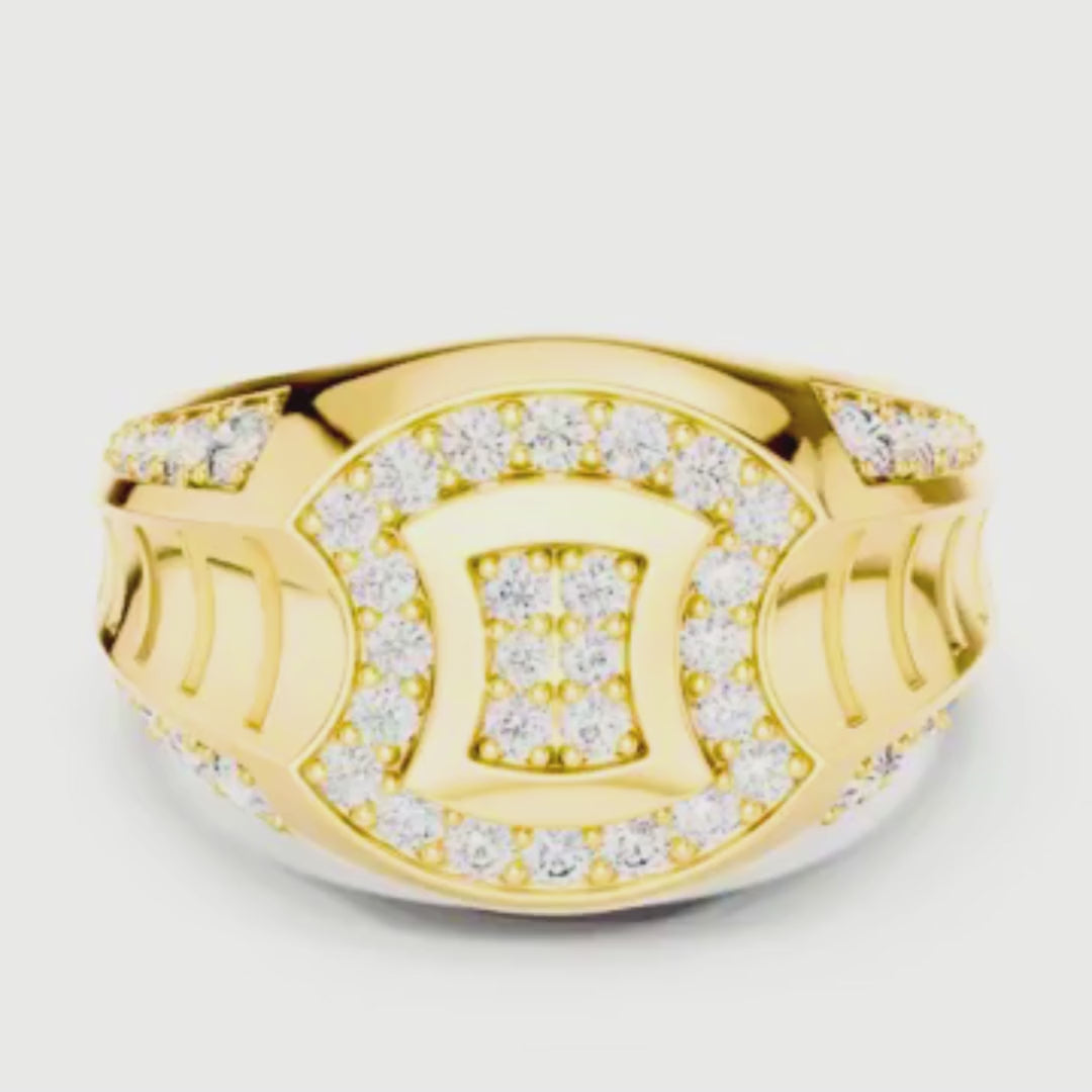 This statement ring from Ivevar Luxury embodies bold sophistication and modern elegance. the ring features a striking square centerpiece framed by brilliant pave-set diamonds, flowing seamlessly into diamond-accented shoulders with architectural cut-out detailing. Every curve, setting, and polish reflects luxury craftsmanship, making it the perfect symbol of power, prestige, and refined taste for the modern gentleman.