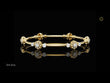 This elegant gold bangle bracelet showcases a refined floral design, featuring delicately crafted bloom motifs adorned with sparkling round diamonds. The polished gold band is accented with evenly spaced flower clusters and diamond-studded beads, creating a harmonious balance of brilliance and sophistication. Designed with a smooth, structured silhouette, this bracelet offers a timeless appeal that transitions effortlessly from everyday elegance to special occasions, making it a graceful addition to any fine jewelry collection.