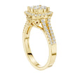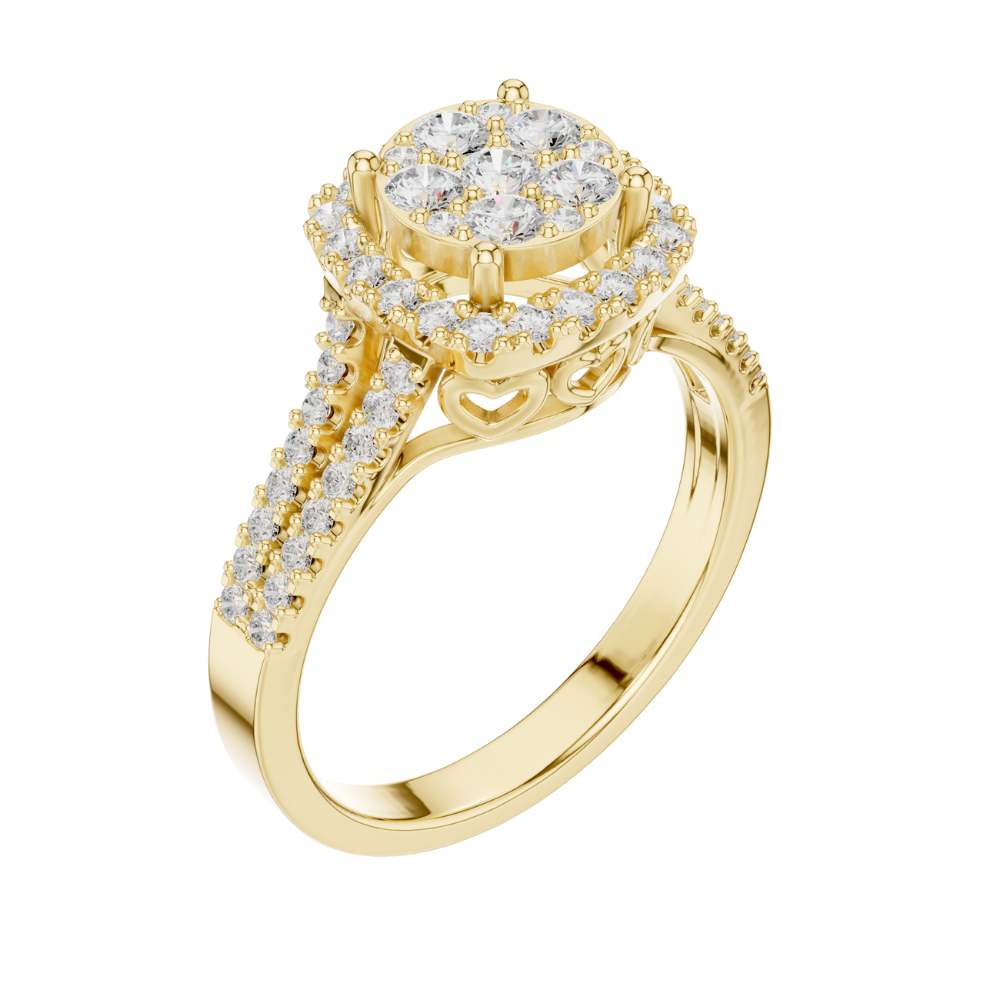 This stunning ring showcases a luxurious cluster of brilliant round diamonds set at the center, framed by a sparkling halo that enhances its radiance from every angle. Crafted in polished gold, the design features a diamond-encrusted split shank that adds extra brilliance and depth, creating a glamorous and eye-catching silhouette. With its bold sparkle and refined detailing, this ring embodies timeless elegance, making it an unforgettable statement piece for special occasions or a breathtaking symbol of love by Ivevar.