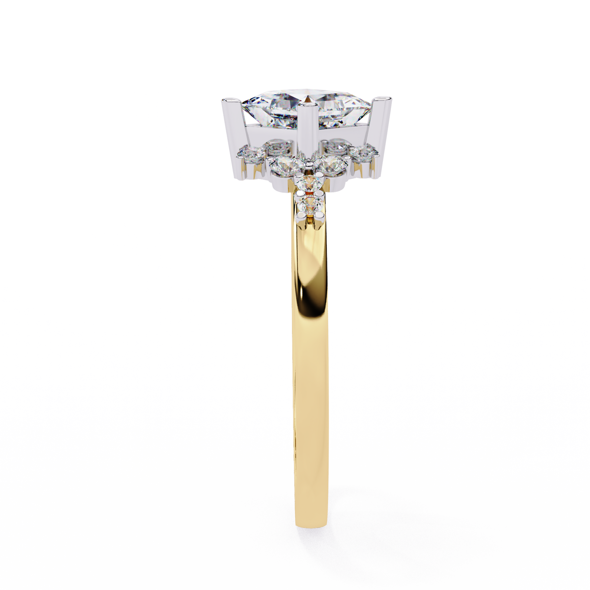 This breathtaking engagement ring from Ivevar Luxury features a radiant princess-cut center diamond framed by a beautifully arranged halo of floral inspired side stones, creating an elegant snowflake-like sparkle. The band is crafted in rich gold, offering a timeless contrast that enhances the brilliance of every facet. Designed for the woman who loves refined artistry, this piece embodies bold symmetry, excellent craftsmanship, and a sophisticated vintage charm—perfect for proposals, anniversaries, or unforgettable luxury gifting.