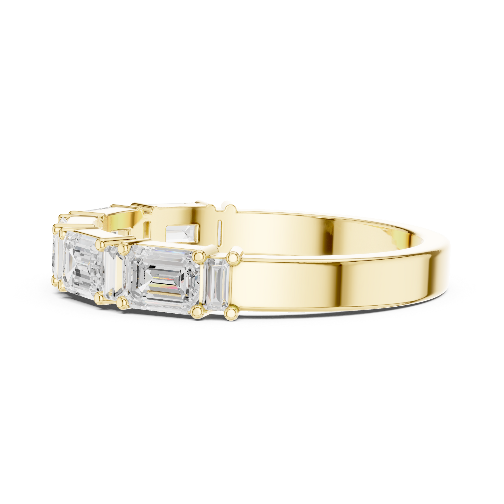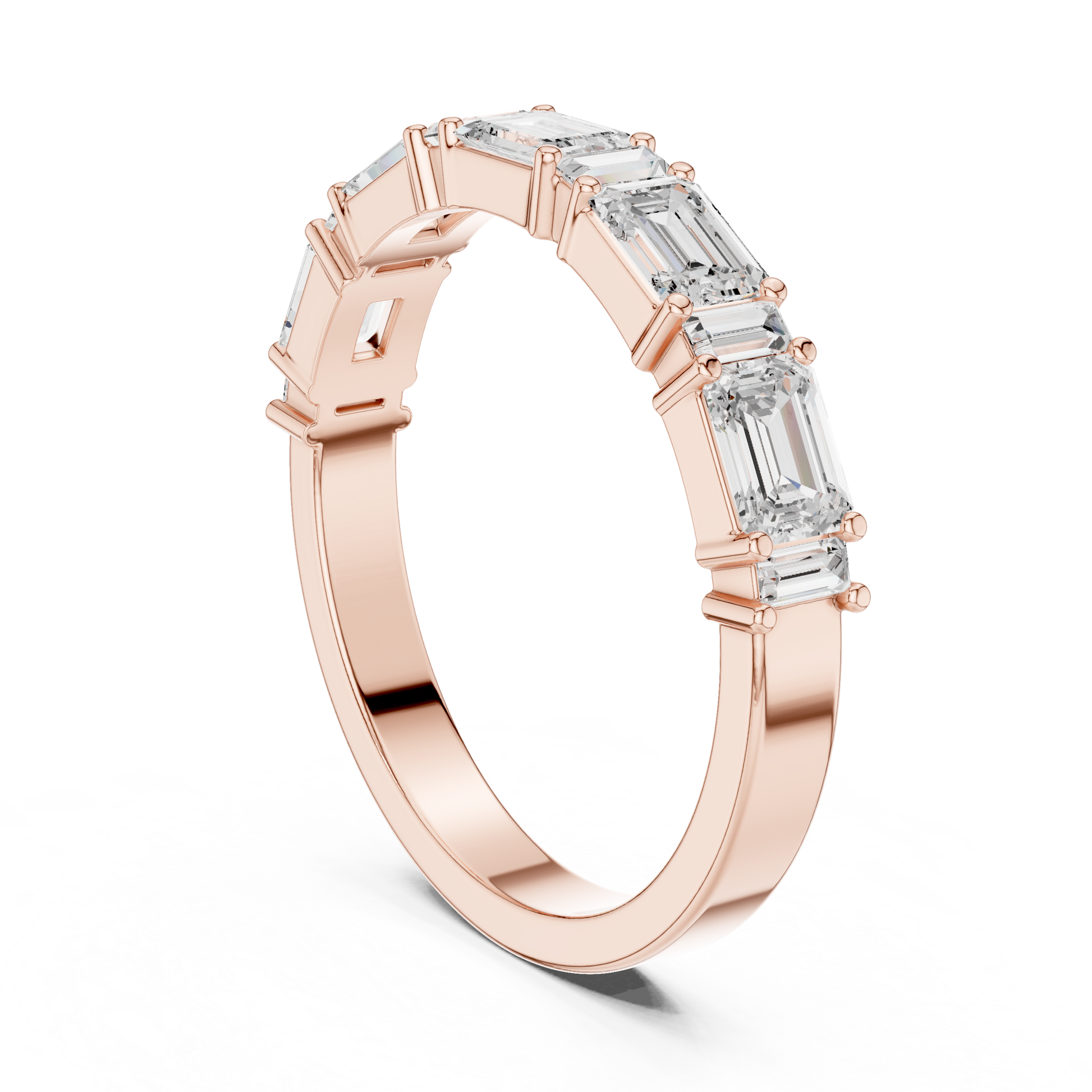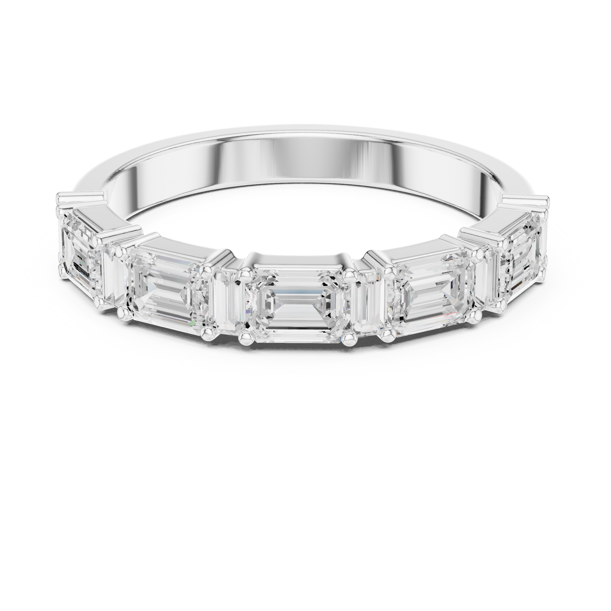 This elegant band showcases a row of beautifully matched emerald-cut diamonds, each prong-set in rich gold to enhance their clean lines and mirror-like brilliance. The half-eternity design offers both comfort and striking visual impact, making it an ideal choice for a wedding band, anniversary gift, or luxurious stacking piece. With its modern geometric profile and timeless sophistication, this ring is a standout addition to any fine jewelry collection Ivevar Luxury.