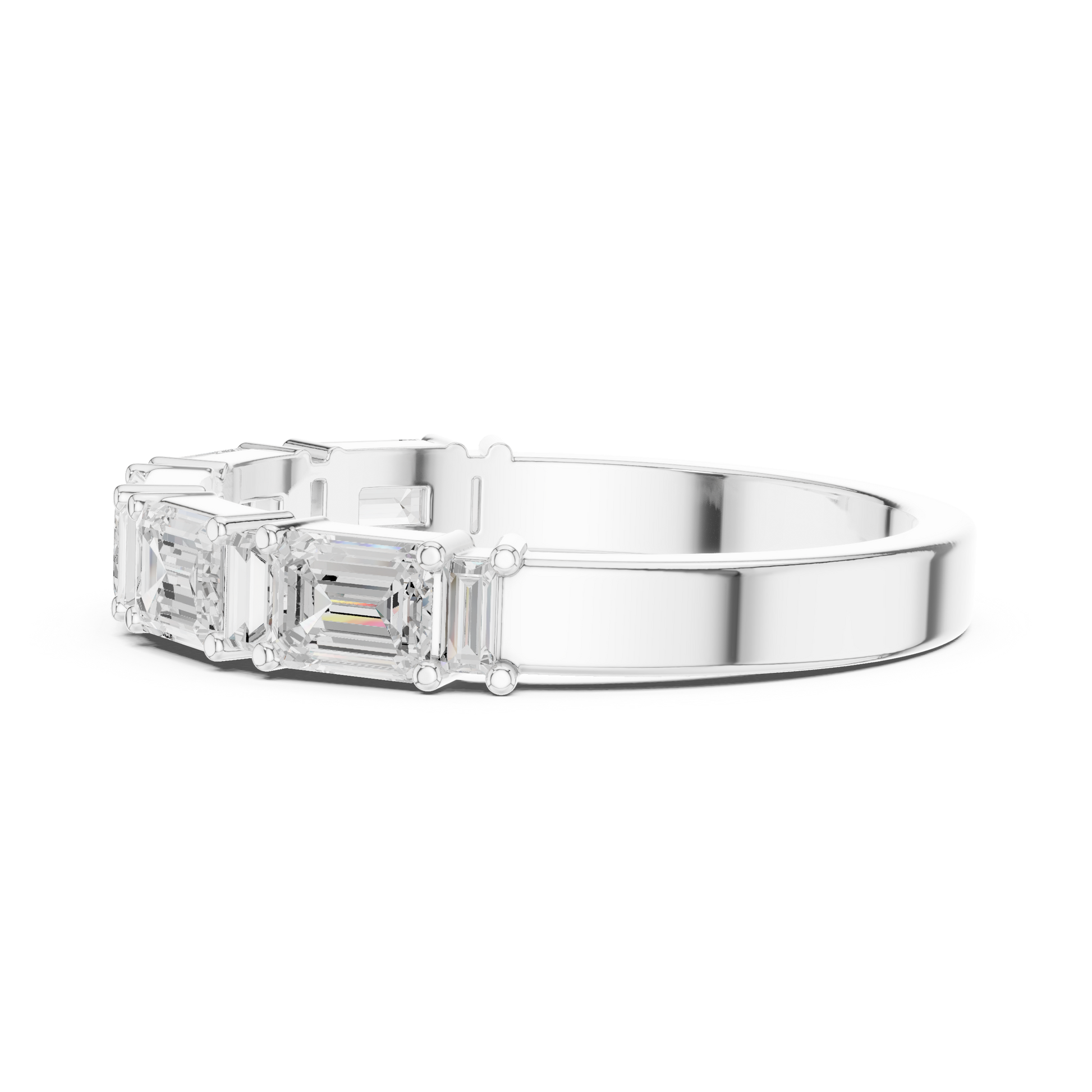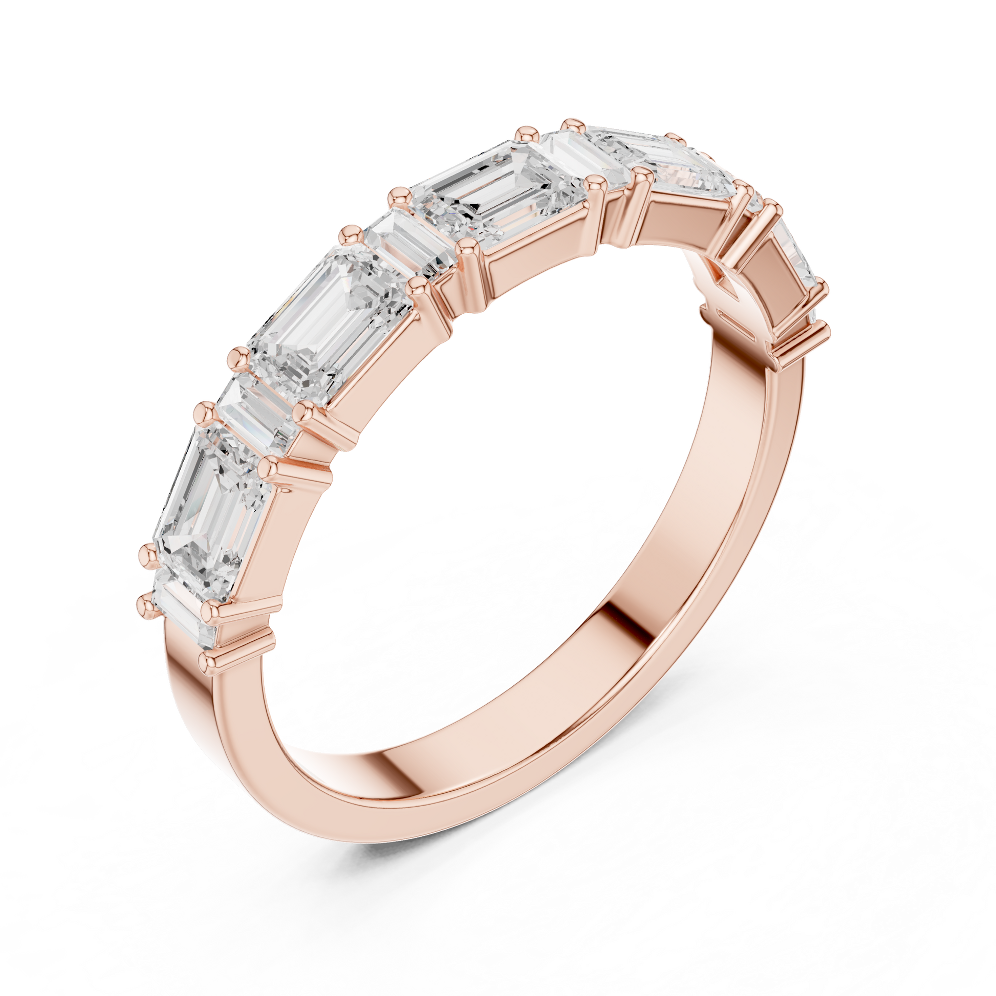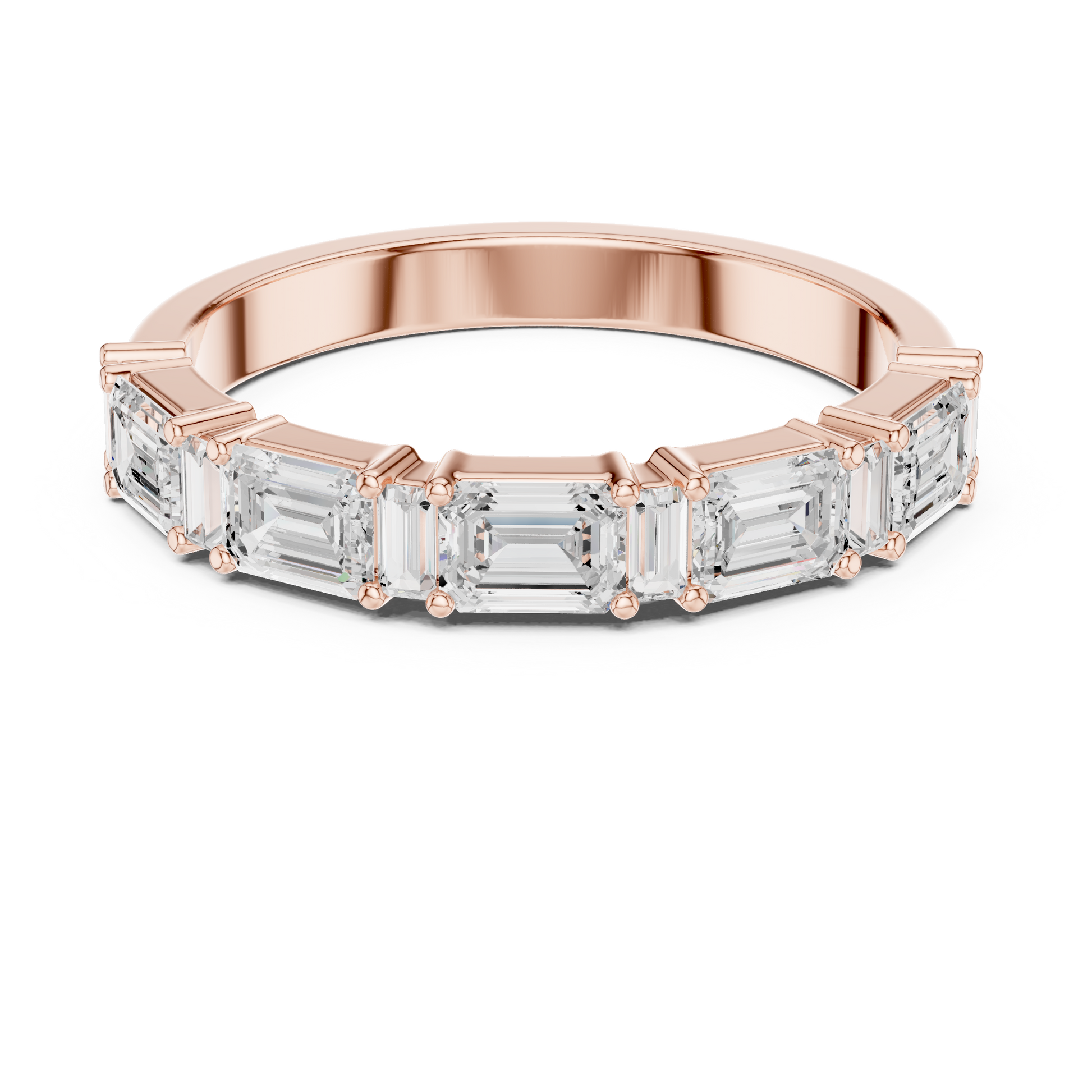 This elegant band showcases a row of beautifully matched emerald-cut diamonds, each prong-set in rich gold to enhance their clean lines and mirror-like brilliance. The half-eternity design offers both comfort and striking visual impact, making it an ideal choice for a wedding band, anniversary gift, or luxurious stacking piece. With its modern geometric profile and timeless sophistication, this ring is a standout addition to any fine jewelry collection Ivevar Luxury.