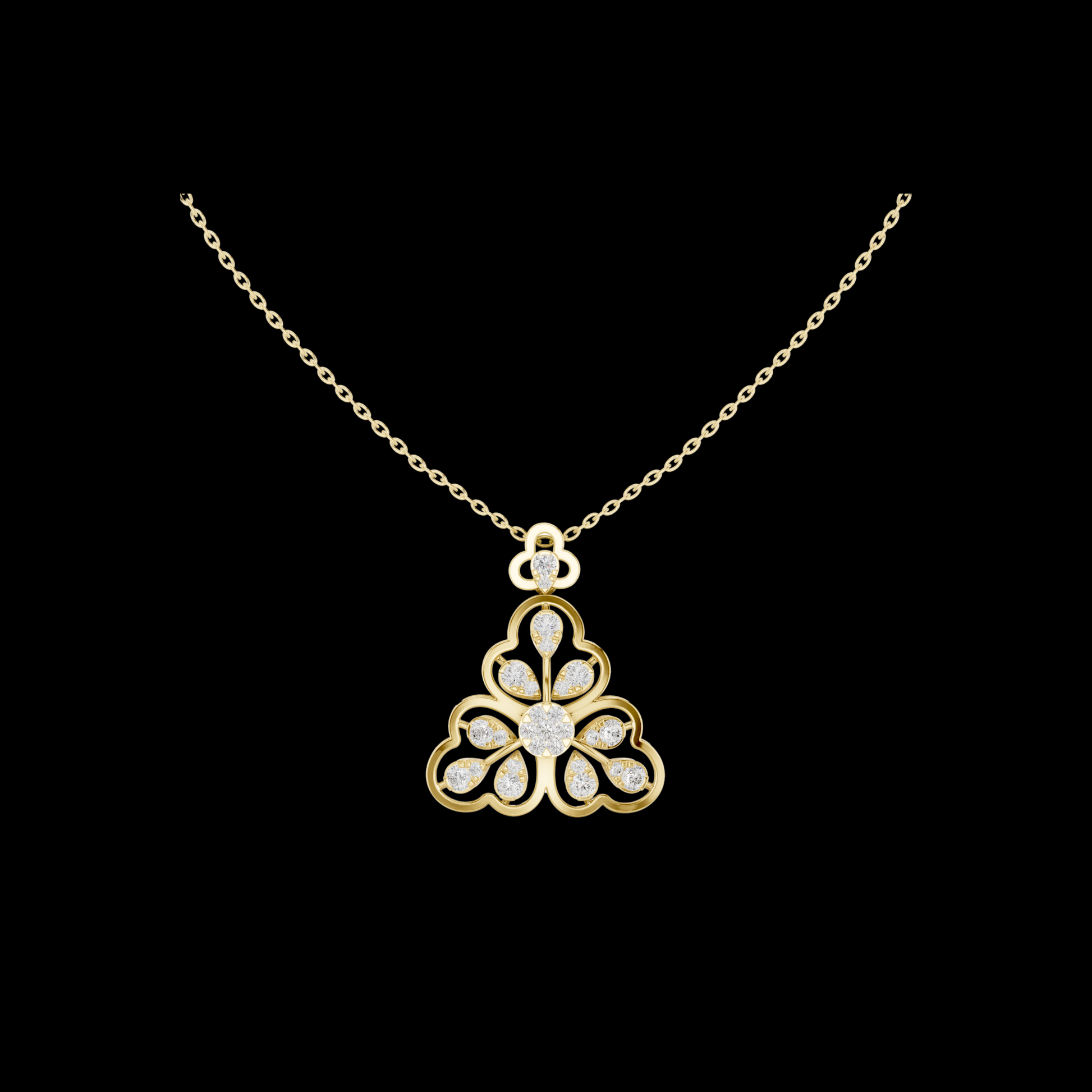 Discover timeless elegance with this exquisite floral diamond pendant crafted in radiant gold for a refined and graceful look. The flower-inspired design features shimmering round-cut diamonds arranged in a delicate openwork pattern, creating depth, brilliance, and movement. Suspended from a fine gold chain, this pendant offers the perfect balance of luxury and everyday wearability, making it ideal for special occasions or effortless daily elegance.