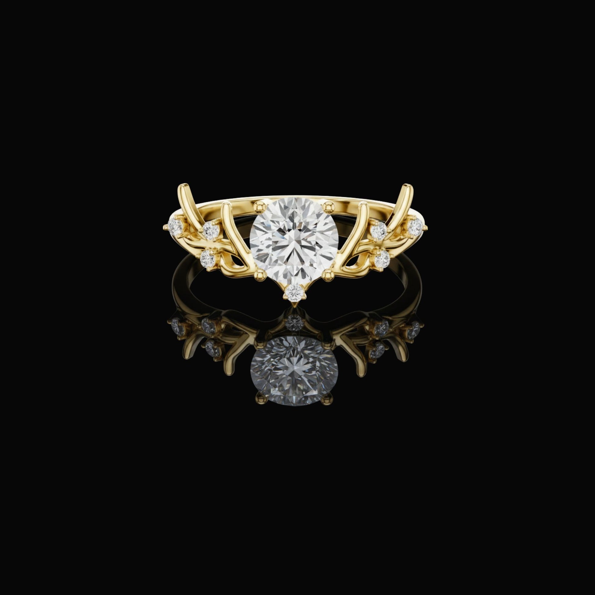 This Luxury Round Cut Diamond Ring is a breathtaking expression of timeless elegance and refined craftsmanship. Set in luminous gold, the brilliant round center diamond is elevated by an artistic prong design and enhanced with delicate side accent diamonds that add depth, sparkle, and balance. Designed for those who value classic beauty with a touch of modern luxury, this ring is perfect for engagements, weddings, or meaningful milestone celebrations. A powerful symbol of love, commitment, and everlasting brilliance, this masterpiece reflects the true essence of Ivevar Luxury.