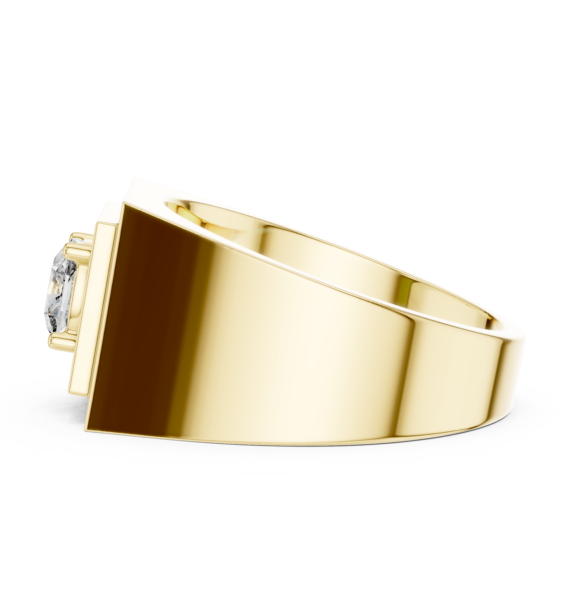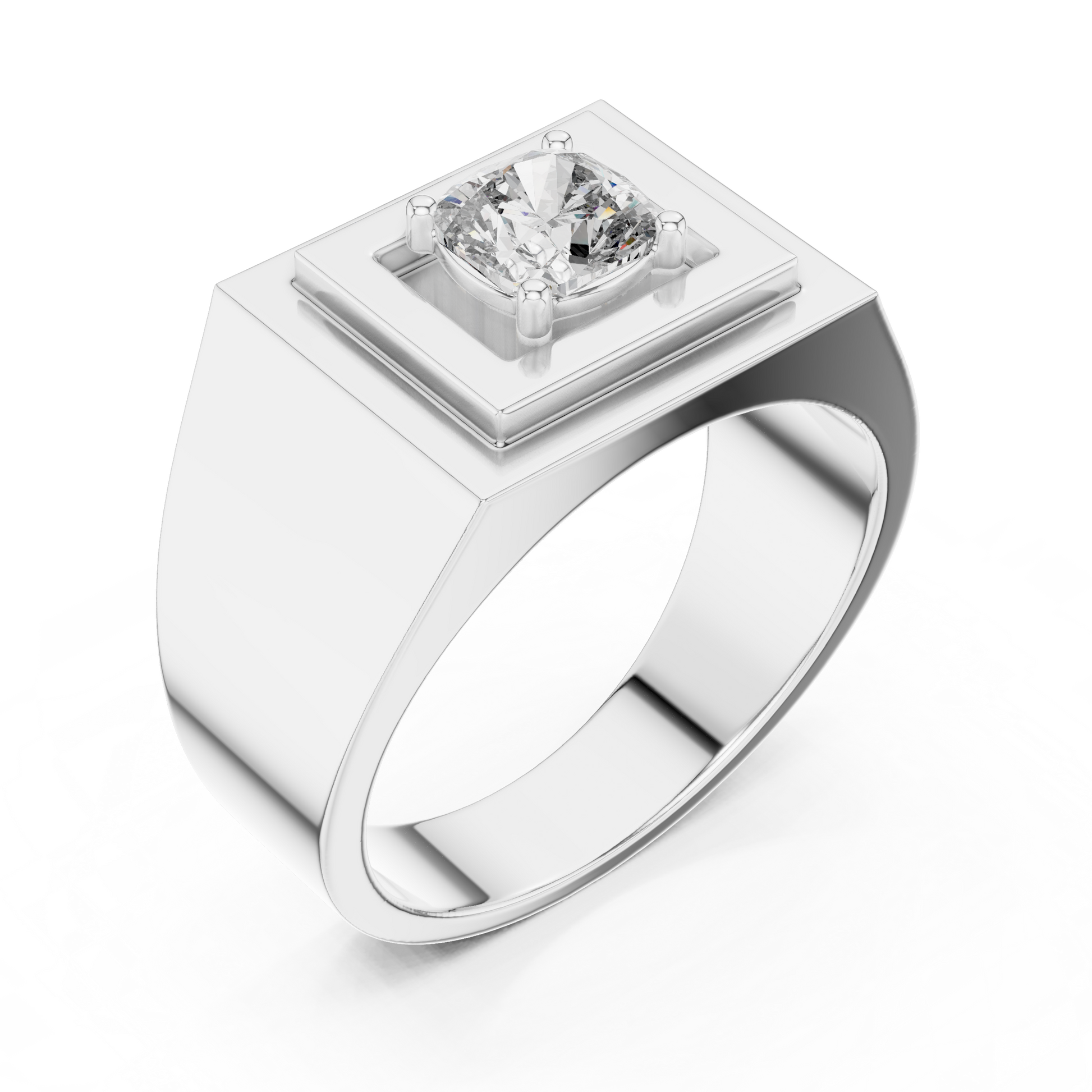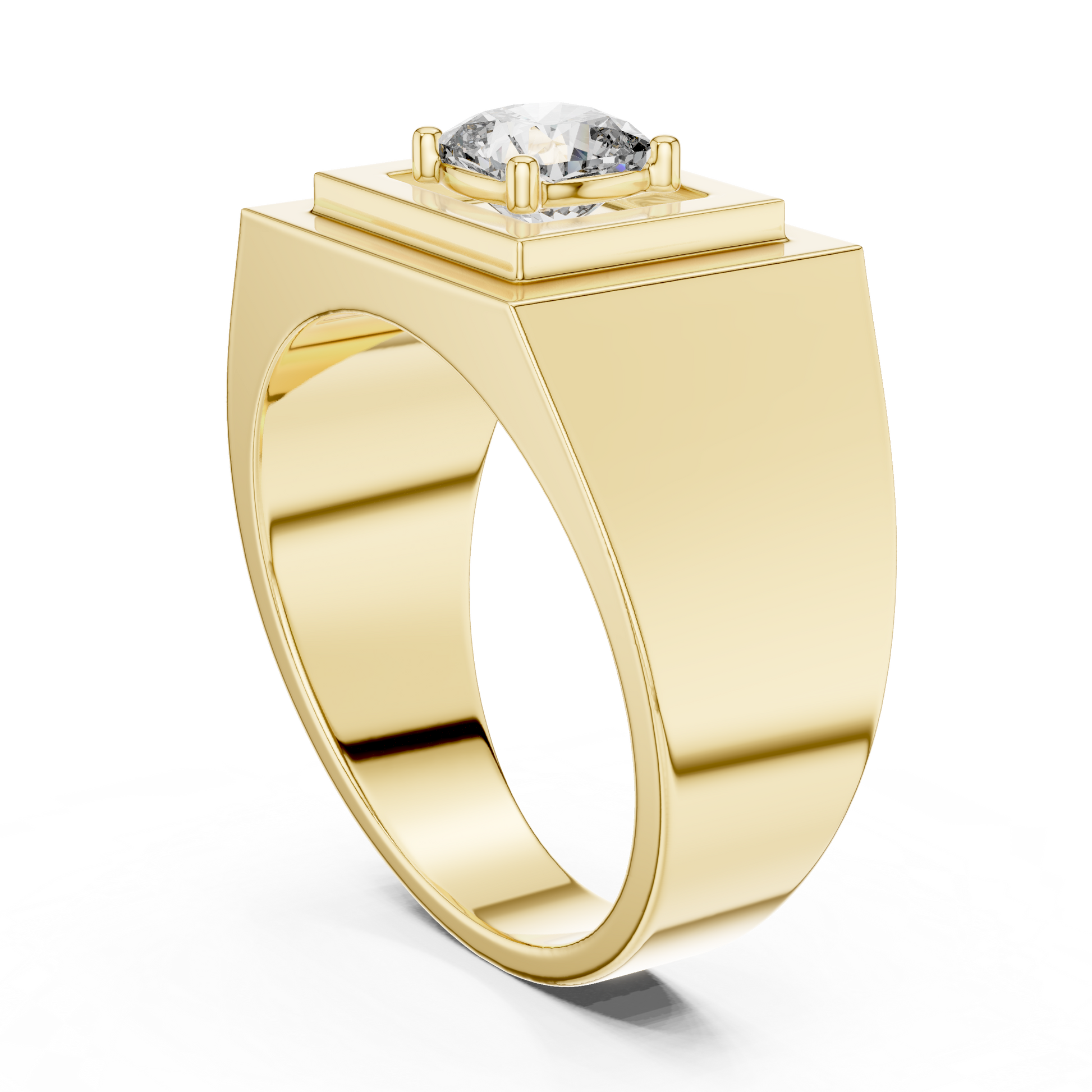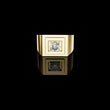 This striking ring features a brilliant Cushion diamond set within a strong square frame, creating a powerful contrast between soft sparkle and architectural form. Crafted in high-polish gold, the wide band and clean lines give this design a confident, modern presence. Perfect for those who appreciate bold luxury, this ring makes an unforgettable statement for everyday wear or special occasions.