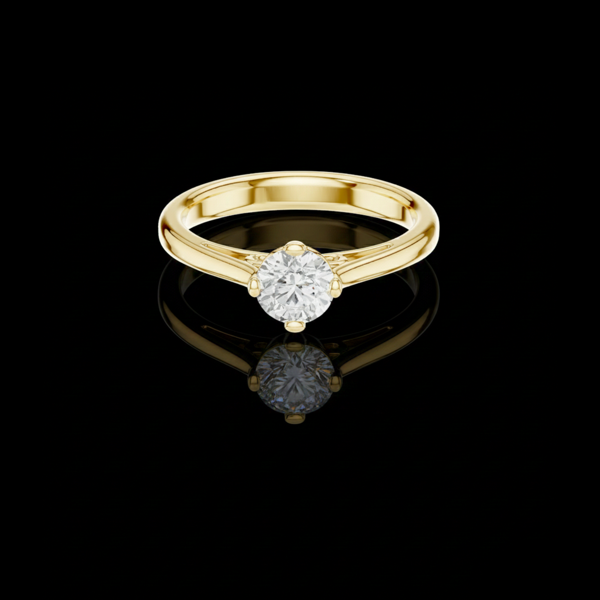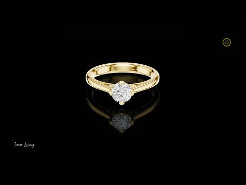 Discover refined elegance with this round brilliant solitaire from IVEVAR Luxury, crafted to highlight pure radiance. The design features a perfectly centered round stone secured in a four-prong crown that maximizes light and sparkle. Its polished gold band is smooth, lustrous, and shaped with a subtle taper for comfortable everyday wear. This piece blends minimalist beauty with a timeless silhouette, letting the diamond remain the undeniable focal point.