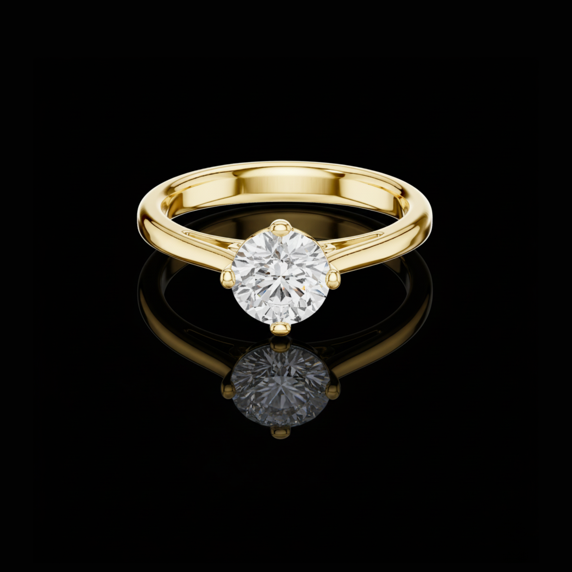 Experience refined simplicity with this round brilliant solitaire from IVEVAR Luxury, crafted to highlight pure elegance. The ring showcases a perfectly centered round diamond secured in a polished four-prong setting that maximizes light and sparkle. Its sleek gold band features a smooth, balanced profile that offers both comfort and a timeless aesthetic. Designed for those who appreciate clean lines and classic luxury, this piece makes a beautiful engagement ring or daily signature accessory.