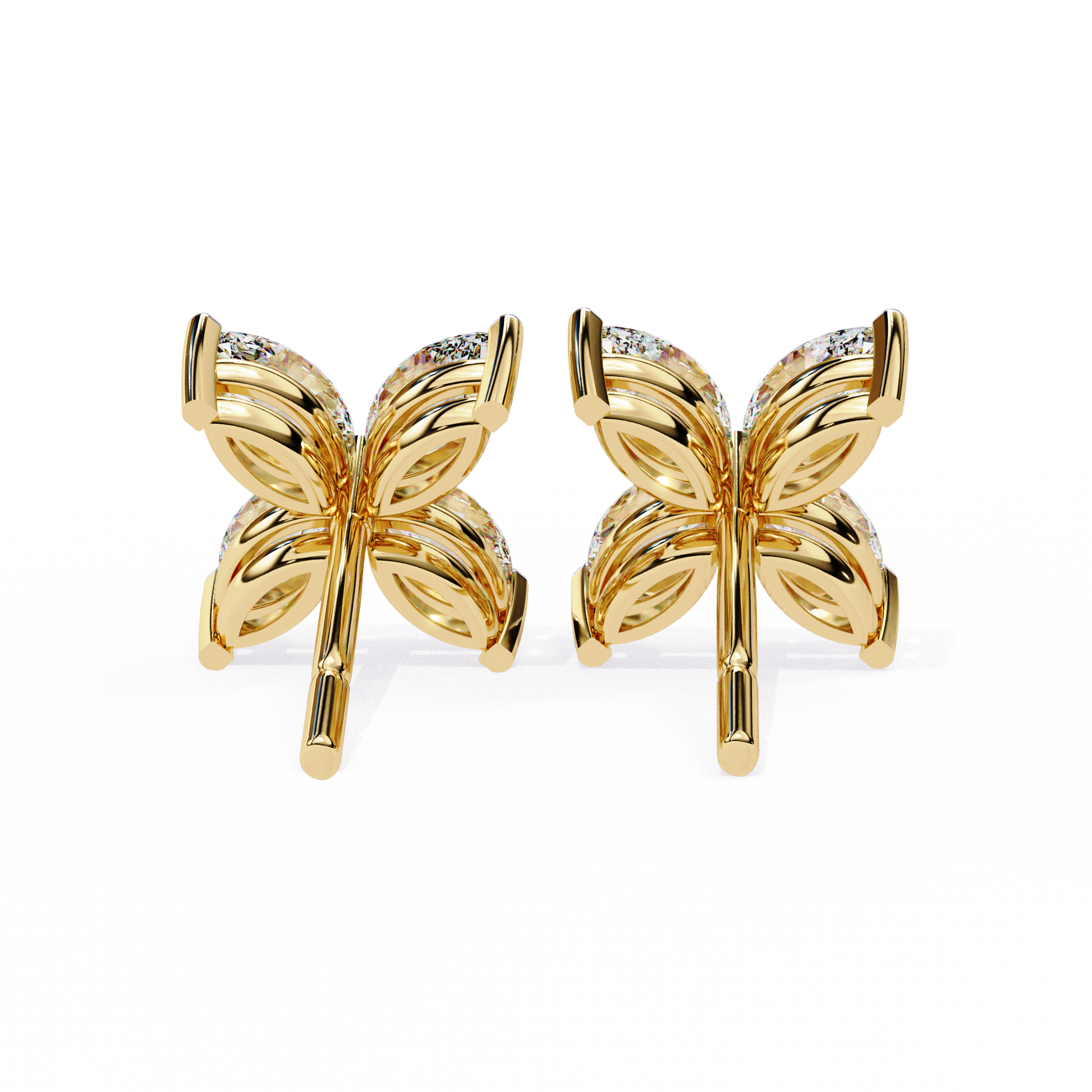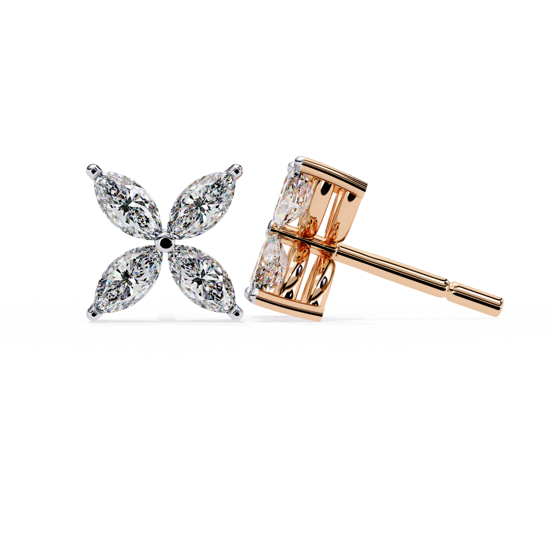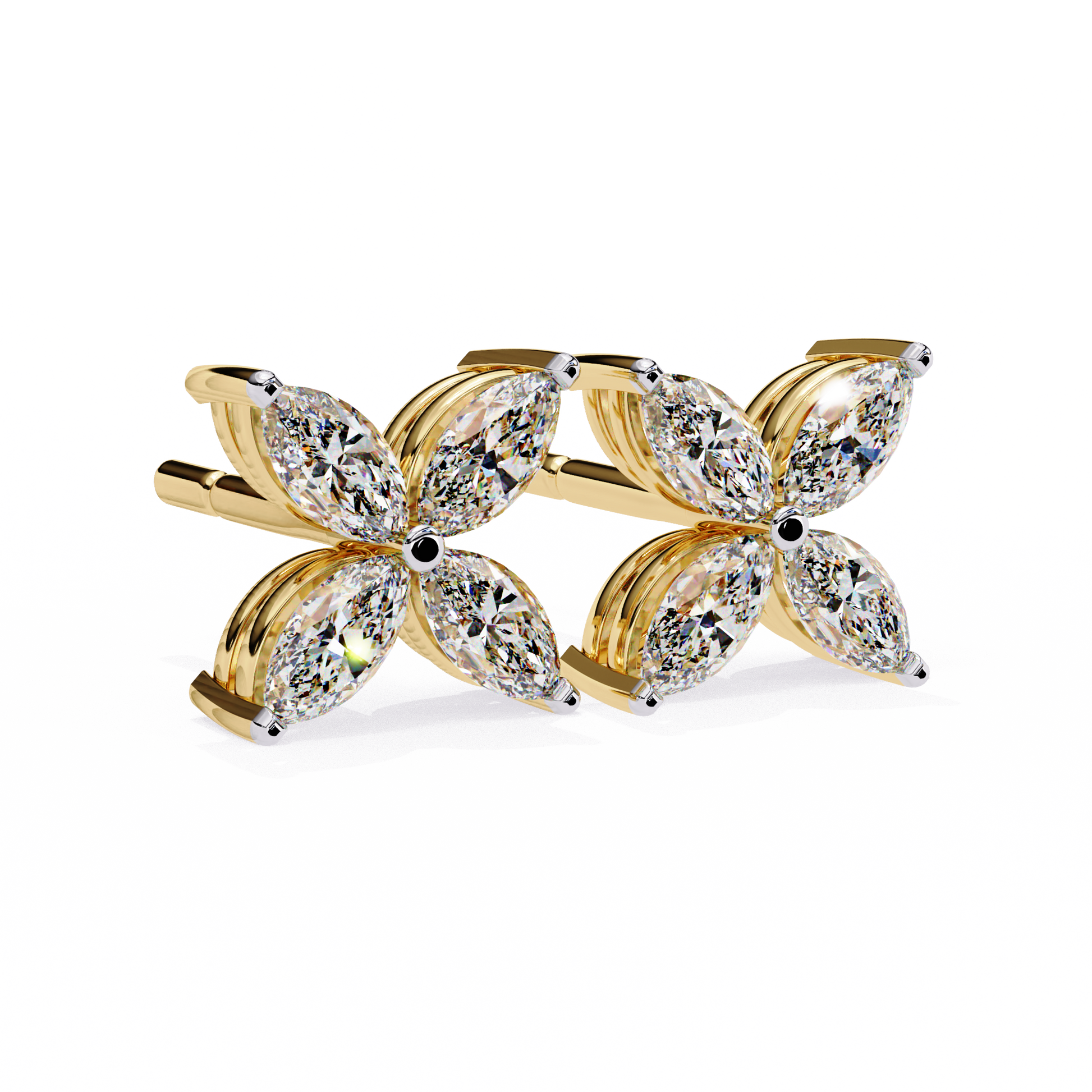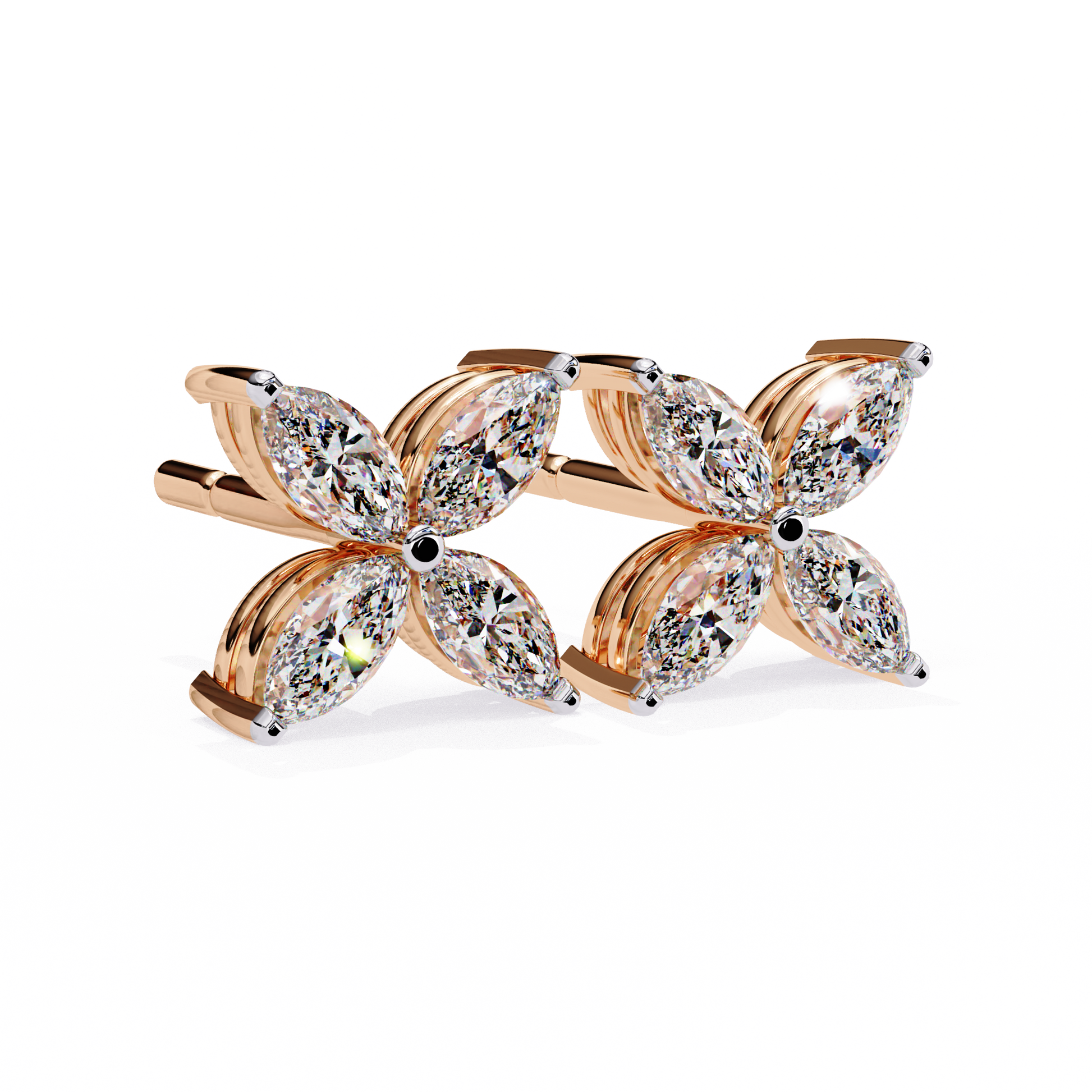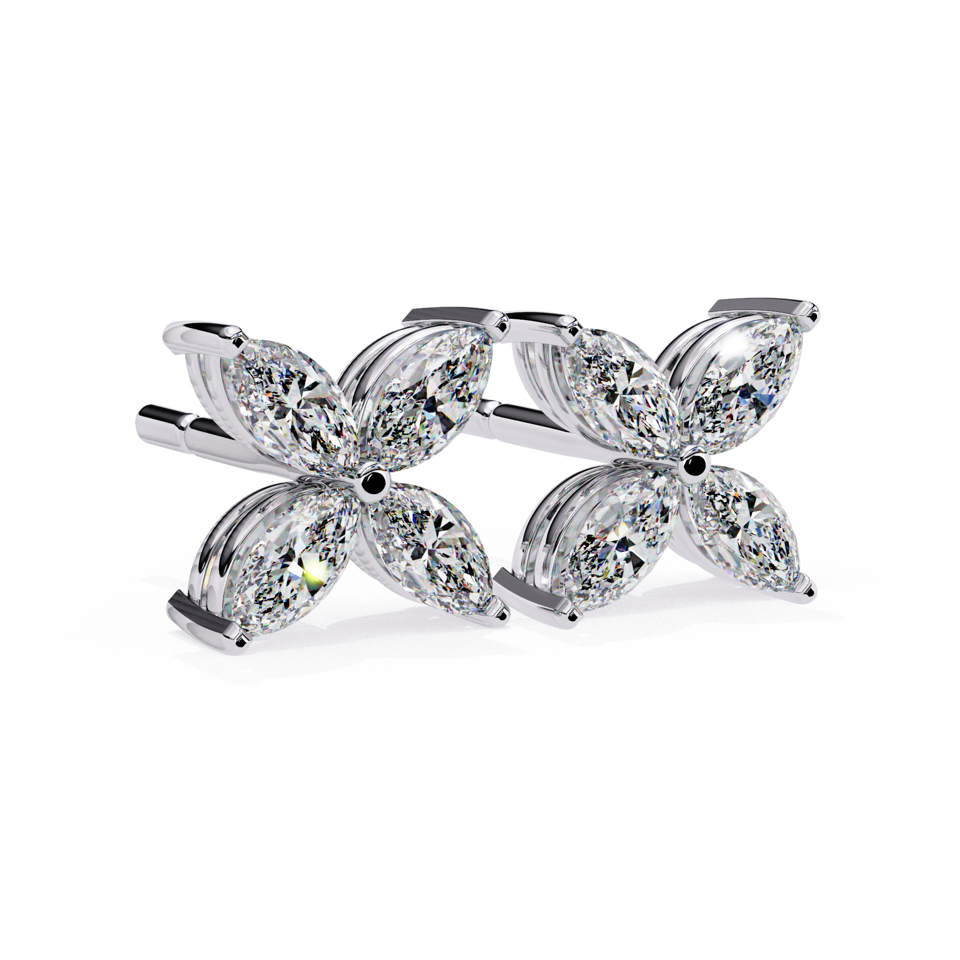 These earrings feature an elegant floral-inspired design crafted from four marquise-cut diamonds arranged in a radiant X-shaped motif, creating a sparkling, symmetrical silhouette. The stones catch the light beautifully, giving the earrings a delicate yet luxurious appearance, while the clean metal prong settings enhance their refined, modern aesthetic. Perfect for both special occasions and elevated everyday wear, they balance timeless sophistication with a contemporary sparkle by Ivevar.