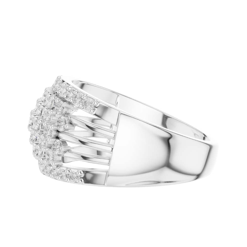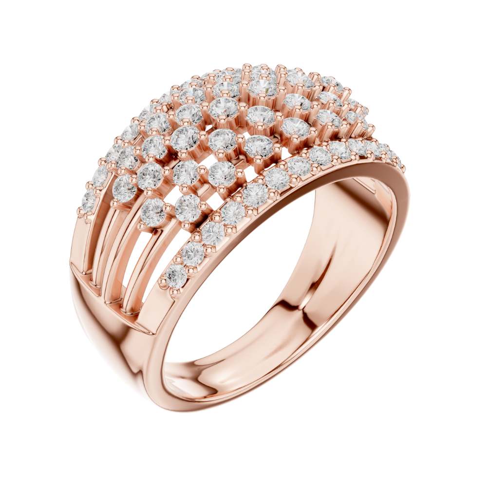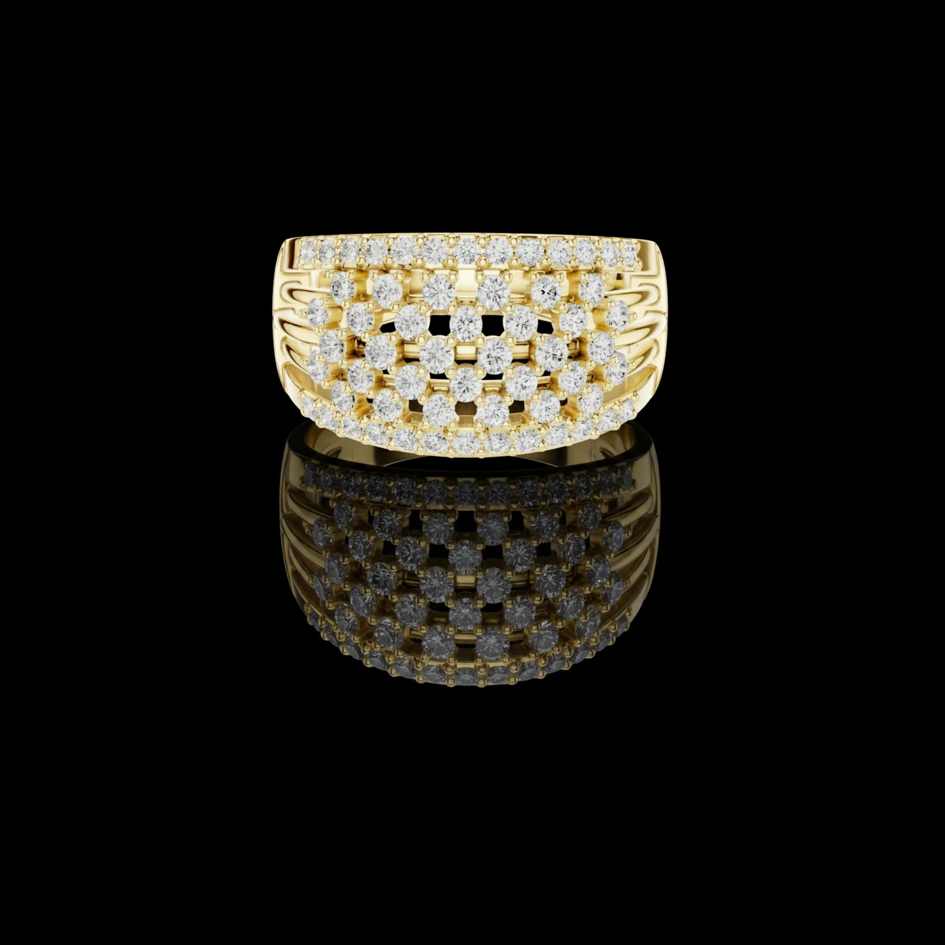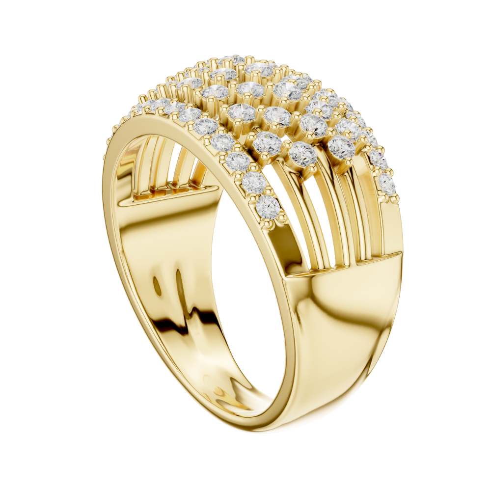 This stunning multi-row diamond ring showcases a brilliant cascade of round-cut diamonds set in rich gold, creating a luxurious display of sparkle from every angle. Its tiered, openwork design adds depth and dimension, allowing light to pass through and enhance each stone’s radiance. Bold yet elegant, this ring balances intricate craftsmanship with timeless glamour, making it a standout piece perfect for special occasions or elevating everyday style by Ivevar.