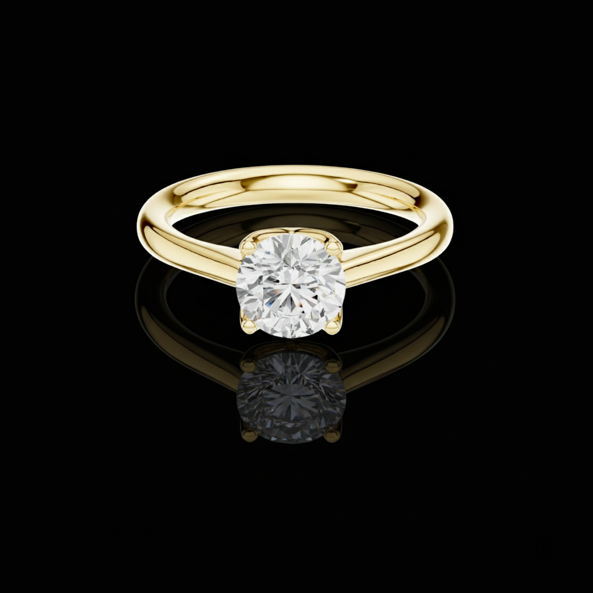 Introducing an exquisite creation from Ivevar Luxury, crafted to celebrate those who value refined simplicity and radiant beauty. This elegant ring features a round-style center stone, highlighted by a clean four-prong setting that enhances its natural brilliance. The stone rests on a smooth, high-polished gold band, giving the entire piece a warm and luxurious glow. Designed with sleek curves and a timeless silhouette, this ring blends modern charm with classic elegance.