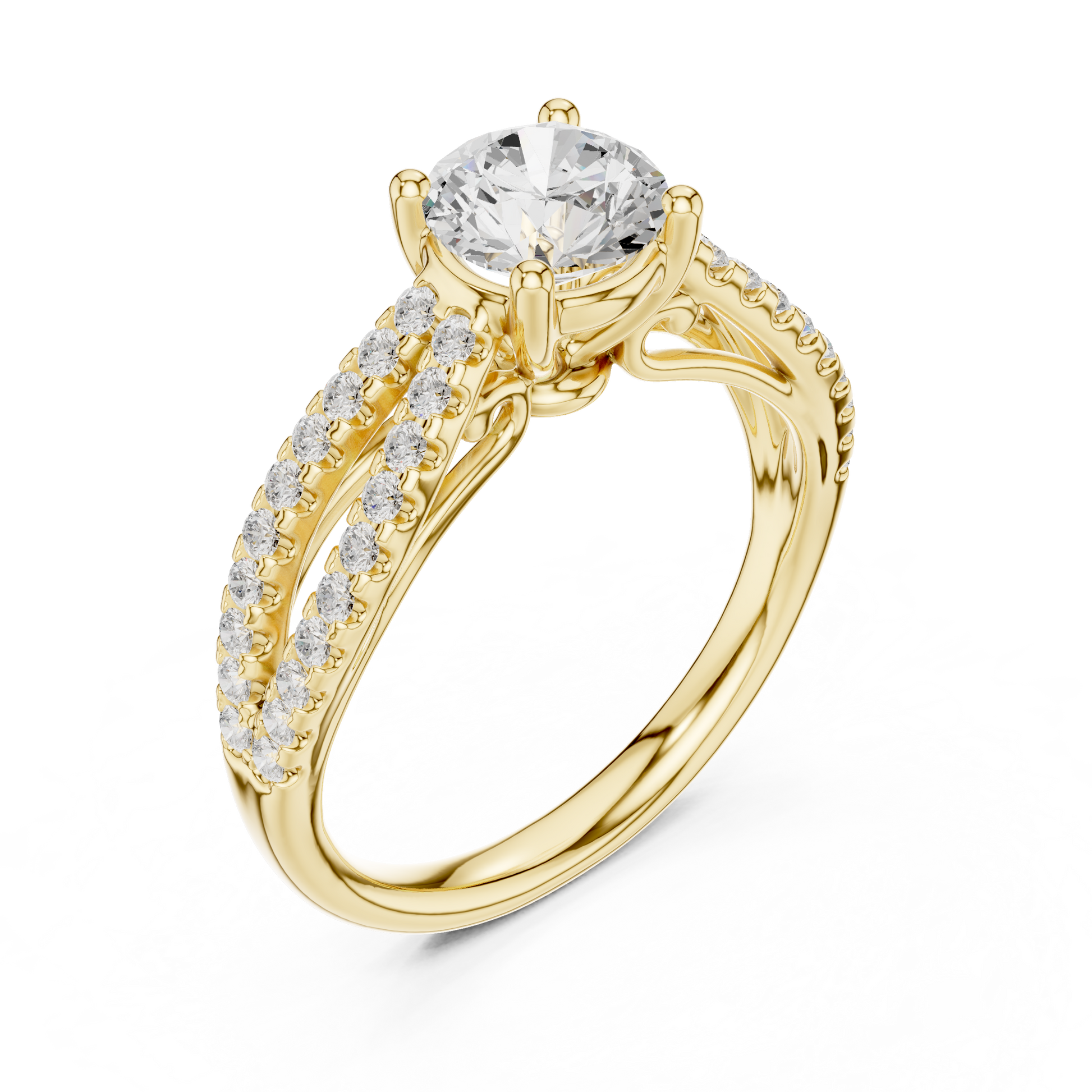 Discover the brilliance of Ivevar Luxury with this breathtaking engagement ring, featuring a radiant round-cut solitaire diamond that captures light from every angle. The elegant split shank design, adorned with two rows of pave-set diamonds, adds depth, sparkle, and modern sophistication to the classic gold band. Crafted with exquisite precision, this ring blends timeless beauty with luxurious craftsmanship, creating a perfect symbol of devotion.