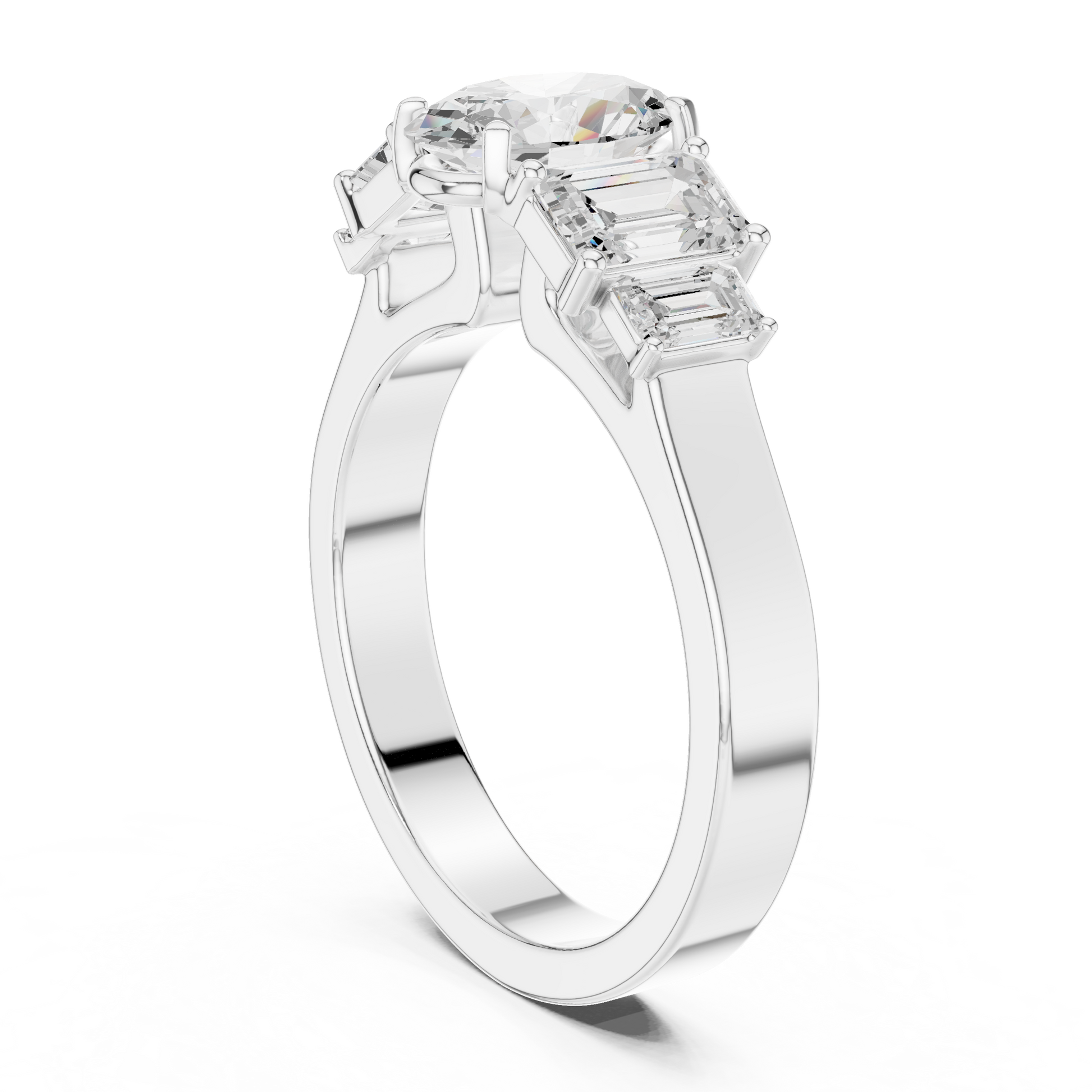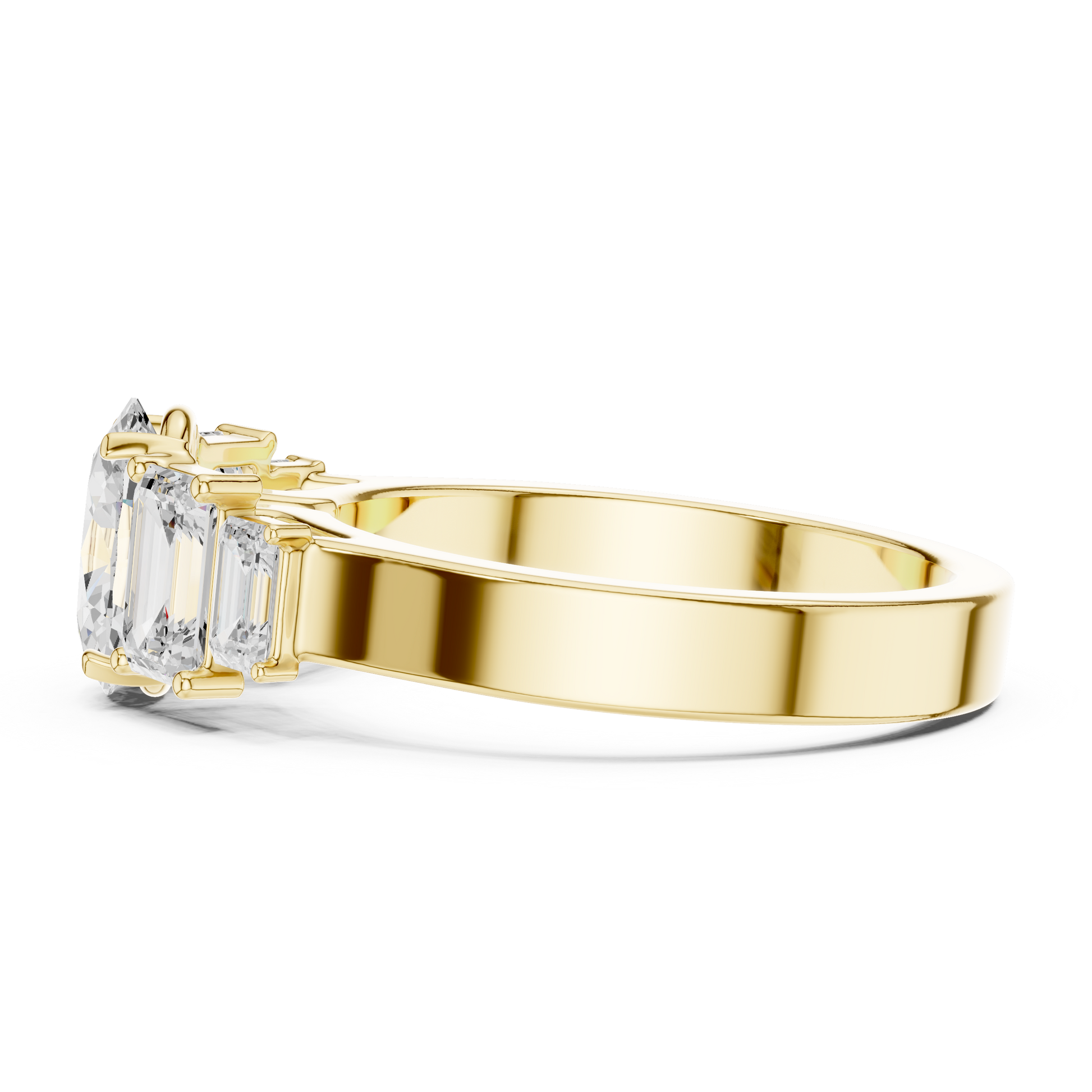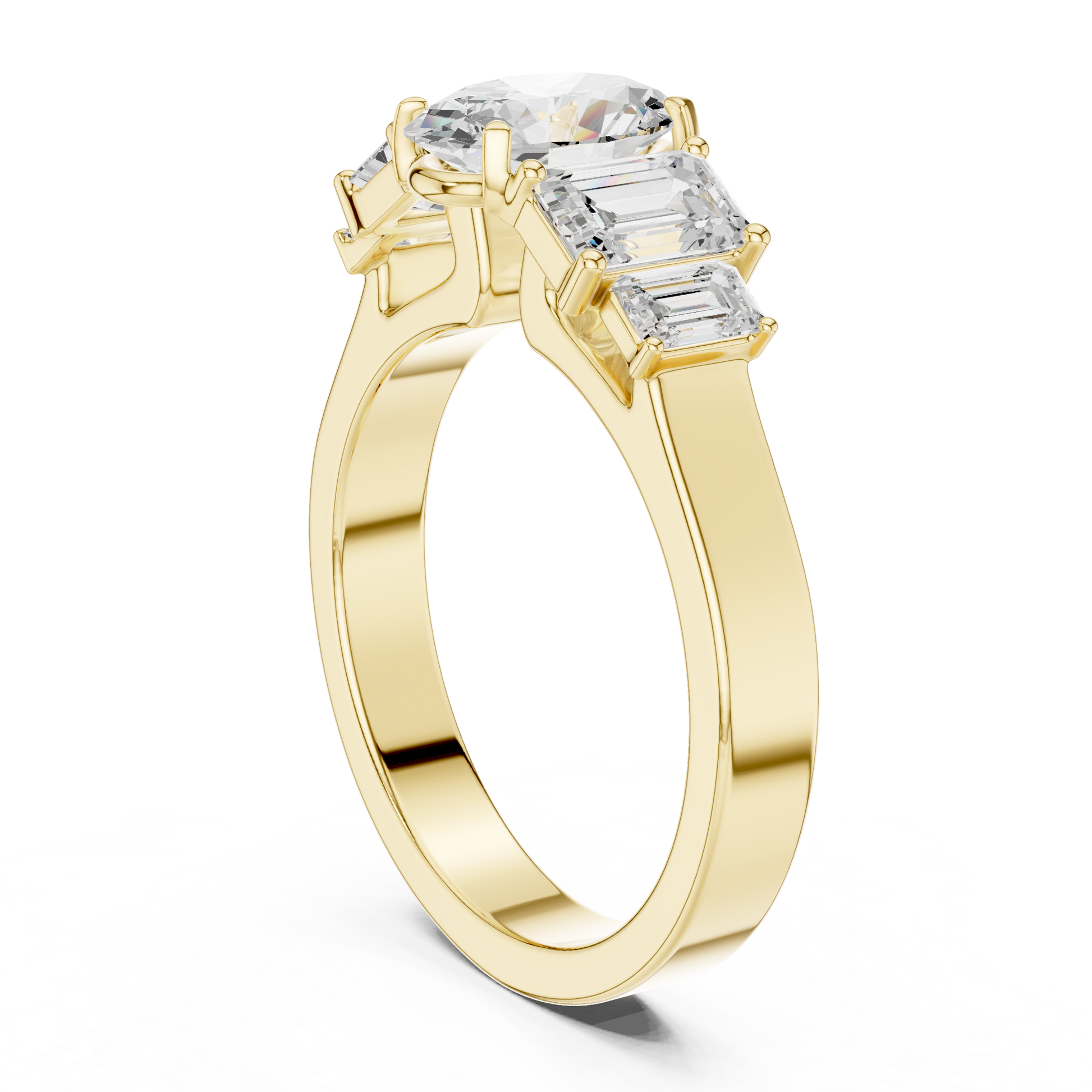 This luxurious ring highlights a brilliant Oval-Cut Center Diamond paired with four elegant Emerald-Cut Side Diamonds, creating a bold and radiant five-stone masterpiece. Set in premium Gold, the design balances modern symmetry with timeless sophistication. Perfect for those who desire maximum sparkle and a statement piece that stands out with every glance.