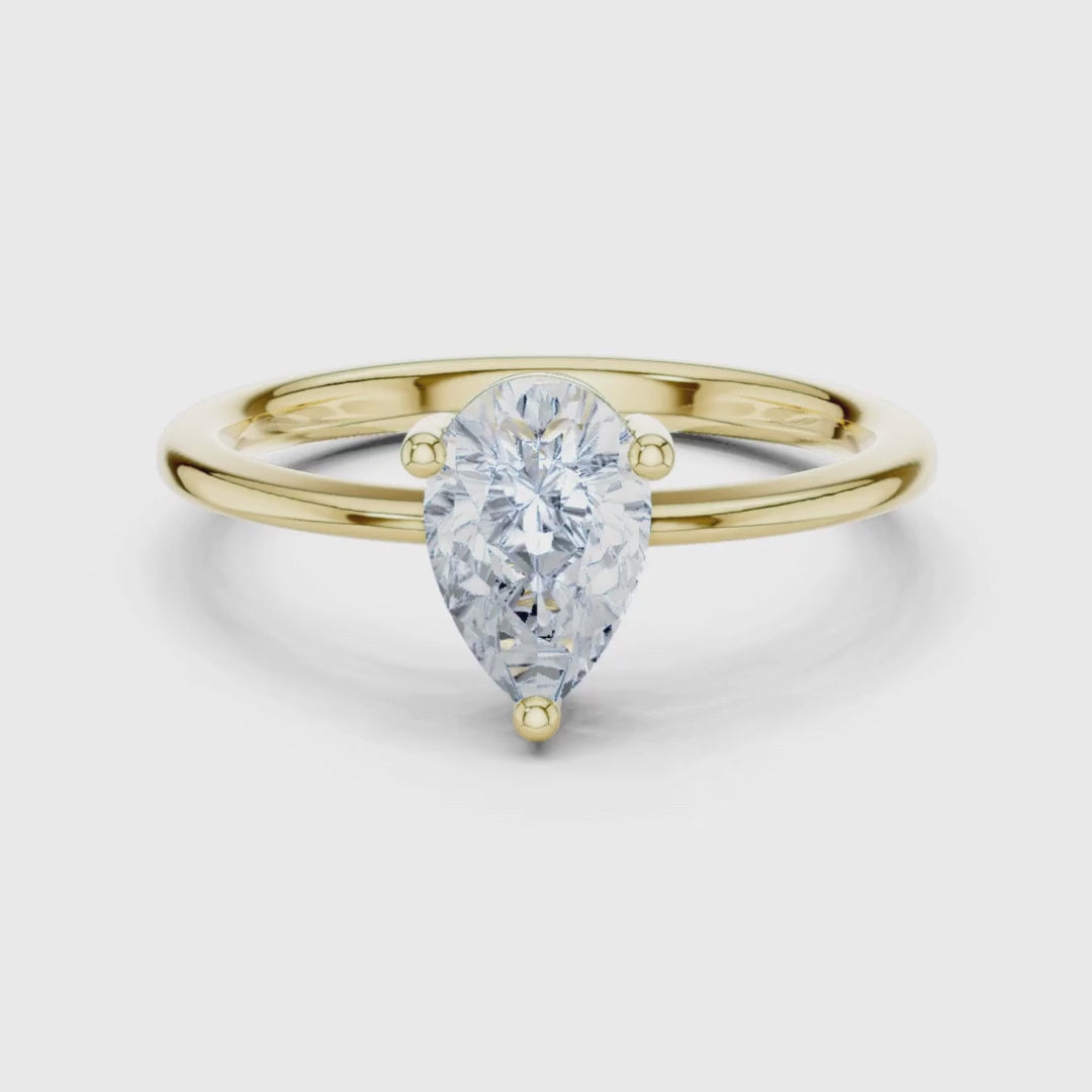 This stunning engagement ring features a brilliantly faceted pear-shaped diamond set in a minimalist three-prong solitaire design, allowing maximum light to enhance its sparkle. The warm gold band adds timeless sophistication, perfectly balancing modern elegance with classic charm. Ideal for someone who loves a refined yet eye-catching style, this ring makes a graceful statement of enduring love by Ivevar.