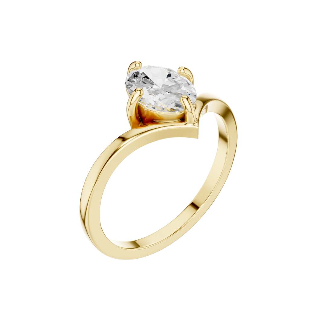 0.90 TCW Stylish Oval Cut Solitaire Lab Grown Diamond Ring in Classic Gold Setting