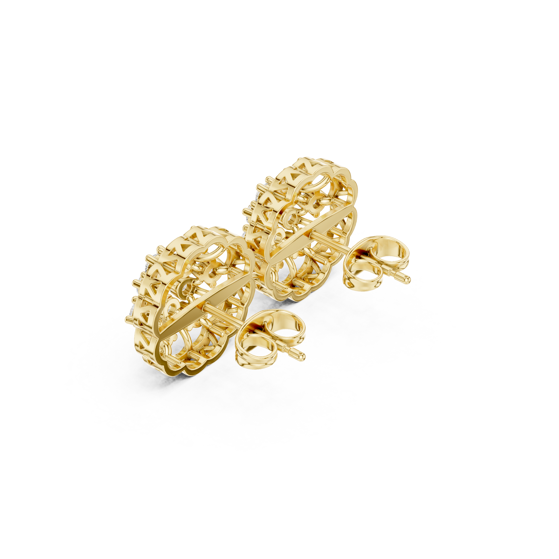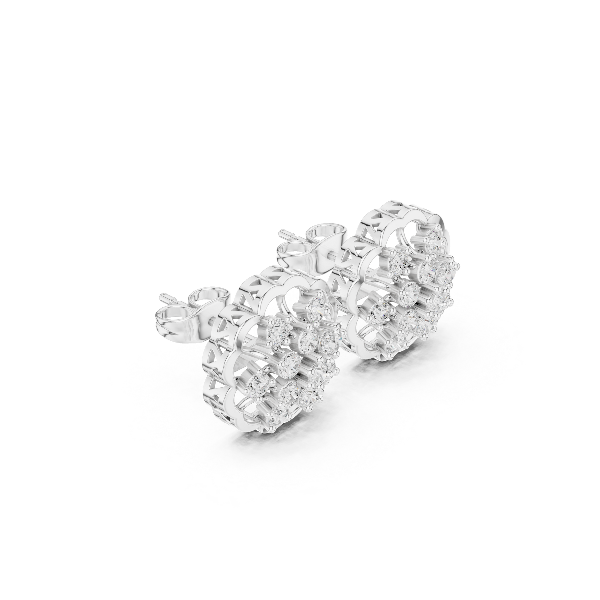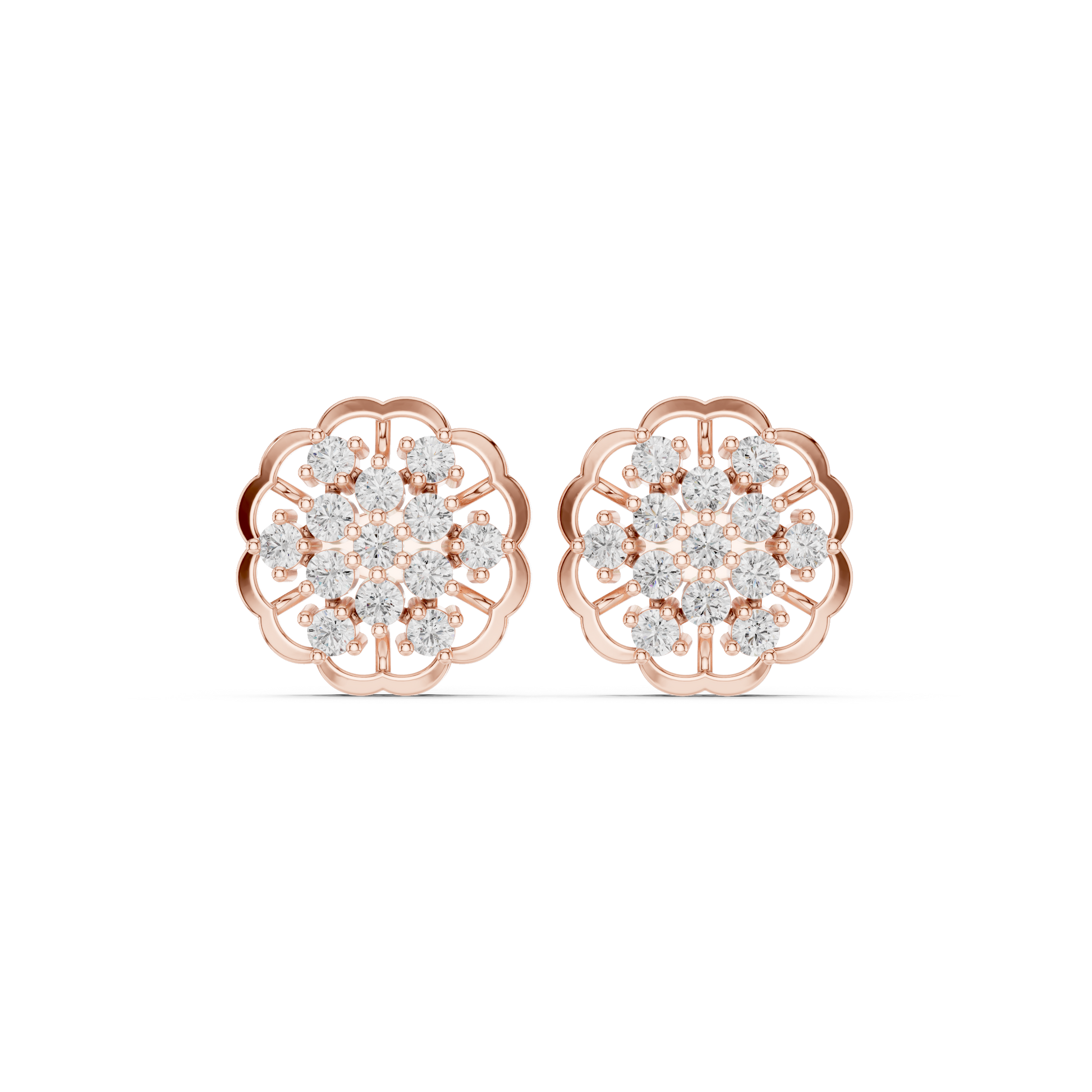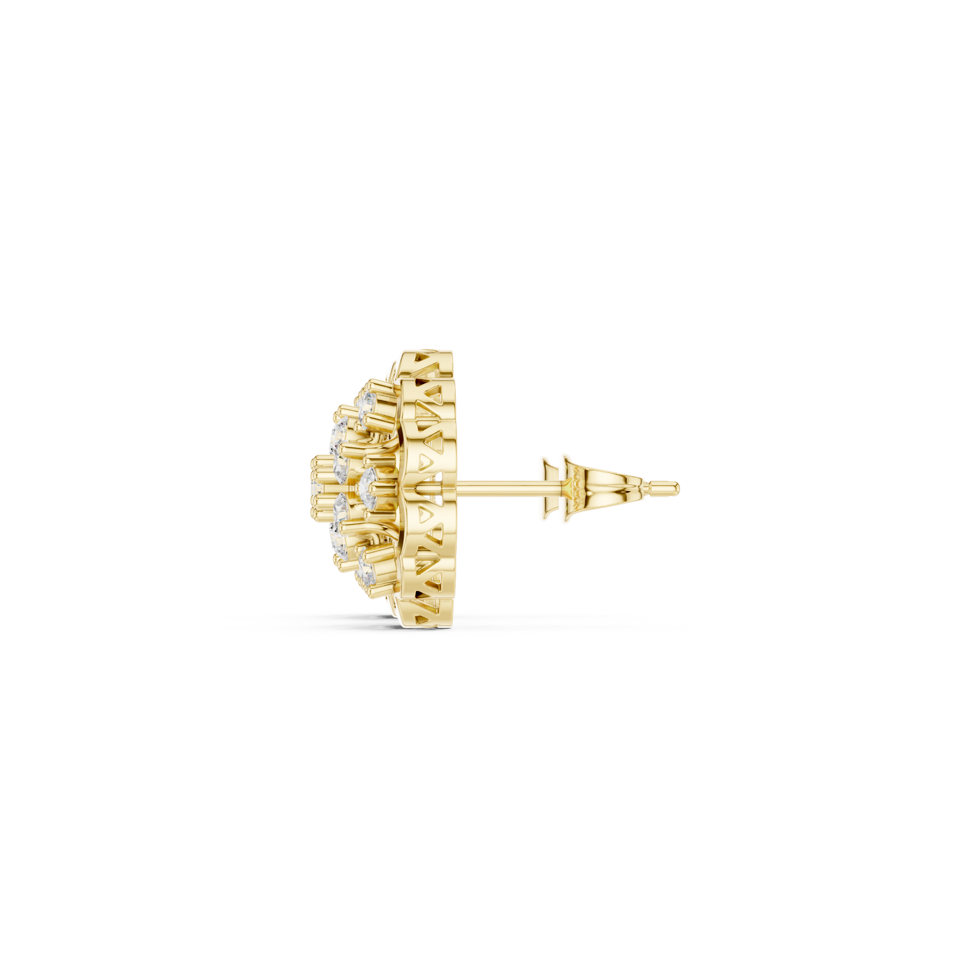 These floral cluster diamond stud earrings are beautifully crafted in polished gold, featuring an elegant open-petal silhouette that radiates timeless charm. Multiple round brilliant diamonds are arranged in a blooming flower formation, creating exceptional sparkle and depth from every angle. The delicate yet structured design offers a refined balance of femininity and luxury, making these earrings perfect for everyday elegance, special occasions, or bridal styling. A graceful expression of fine craftsmanship, these studs add a luminous touch to any jewelry collection.
