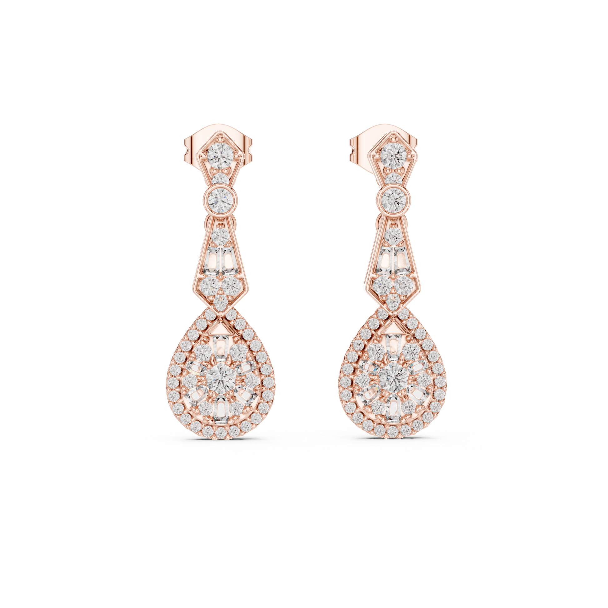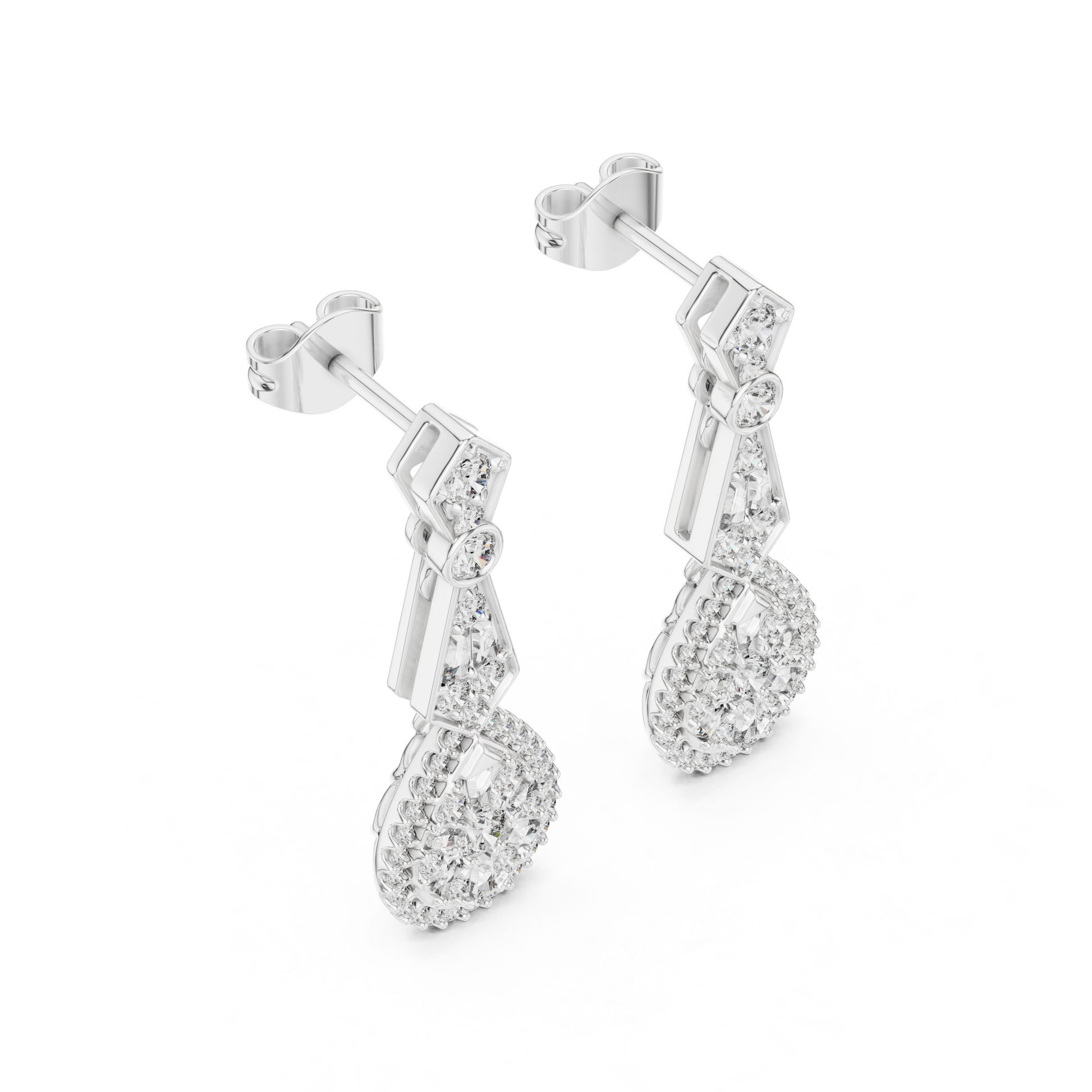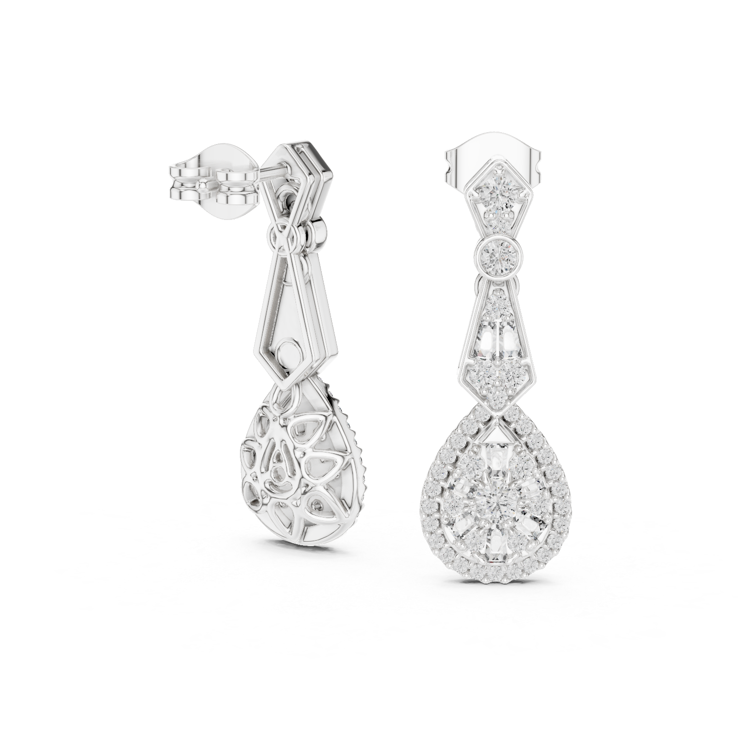 Indulge in refined elegance with these moissanite diamond halo drop earrings, beautifully crafted. The design features round & Baguette cut diamonds arranged in a radiant halo teardrop silhouette, delivering unmatched sparkle and depth. Perfect for weddings, evening events, and special occasions, these earrings embody premium craftsmanship, timeless beauty, and modern luxury.