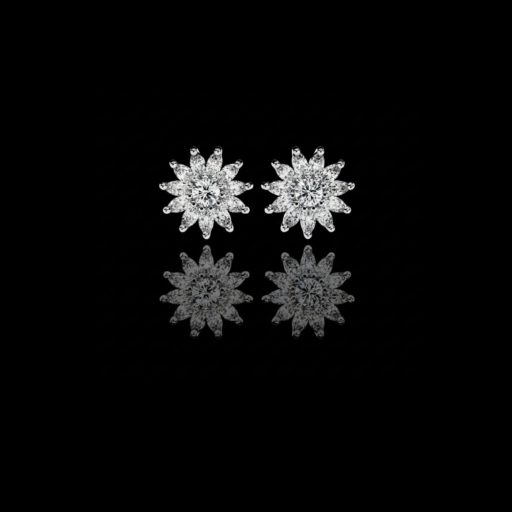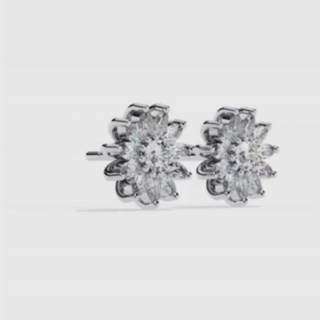 Radiant and timeless, the Floral Diamond Cluster Stud Earrings by Ivevar Luxury Jewels celebrate the harmony of nature’s beauty and exquisite craftsmanship. Each earring is masterfully handcrafted to form a breathtaking blossom silhouette, centered by a brilliant round-cut diamond surrounded by perfectly aligned marquise-cut petals that radiate with dazzling brilliance.
