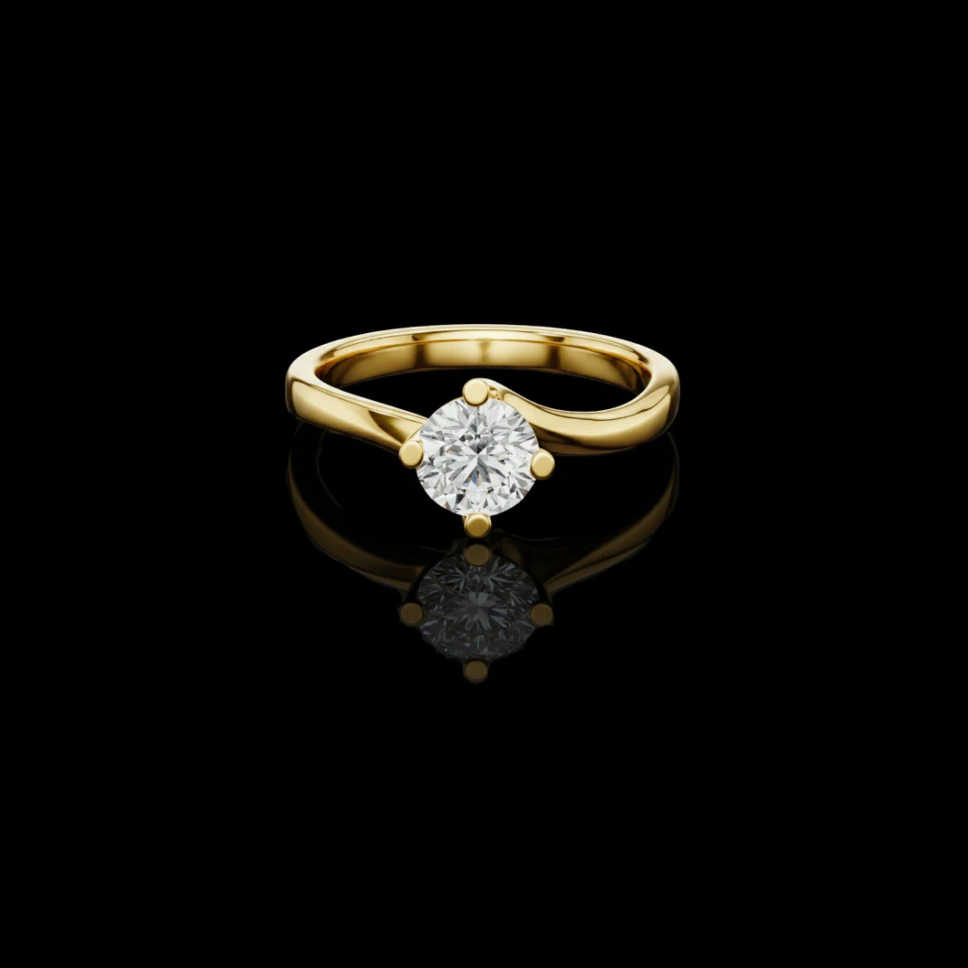 Embrace modern sophistication with this round-cut solitaire diamond ring featuring a unique swirl-design band in radiant gold. The gracefully curved setting highlights the diamond’s exceptional brilliance, adding a touch of artistic elegance to a timeless classic. Perfect for those who love refined luxury, contemporary style, and unforgettable sparkle.