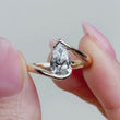 Designed to move with effortless grace, this striking ring showcases a luminous pear-cut diamond cradled within a fluid bypass band. The sculpted gold arms curve gently around the center stone, creating a modern silhouette that feels both artistic and refined. Open and airy, the setting allows light to flood the diamond, enhancing its brilliance while maintaining a clean, contemporary profile. Ideal for those who appreciate minimalism with a distinctive twist, this ring is a bold yet elegant statement of individuality.