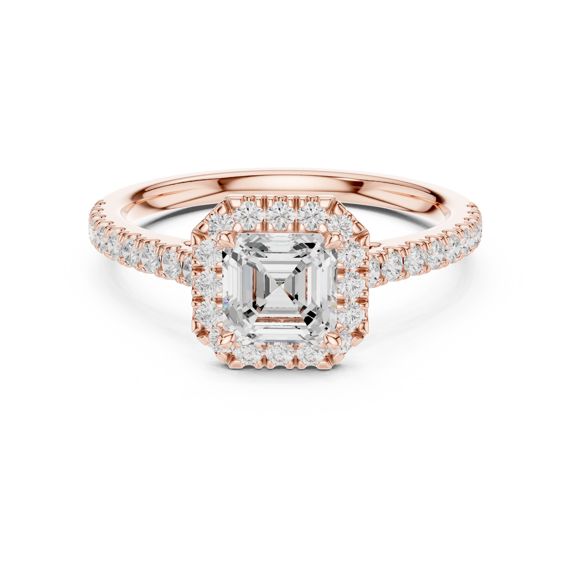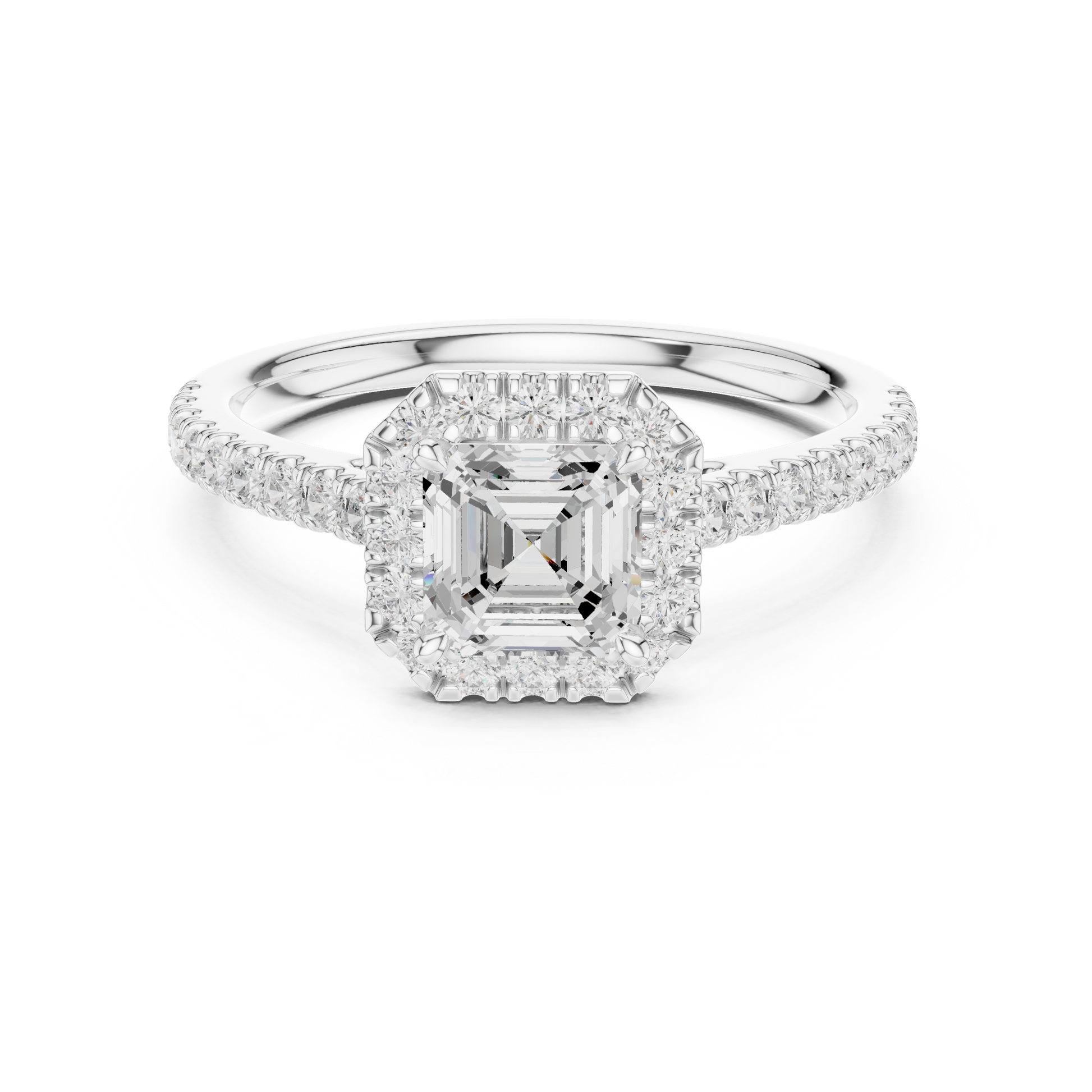 1.00 CT Beautiful Asscher Cut Lab Grown Diamond Halo Ring with Pave Set Diamond Band