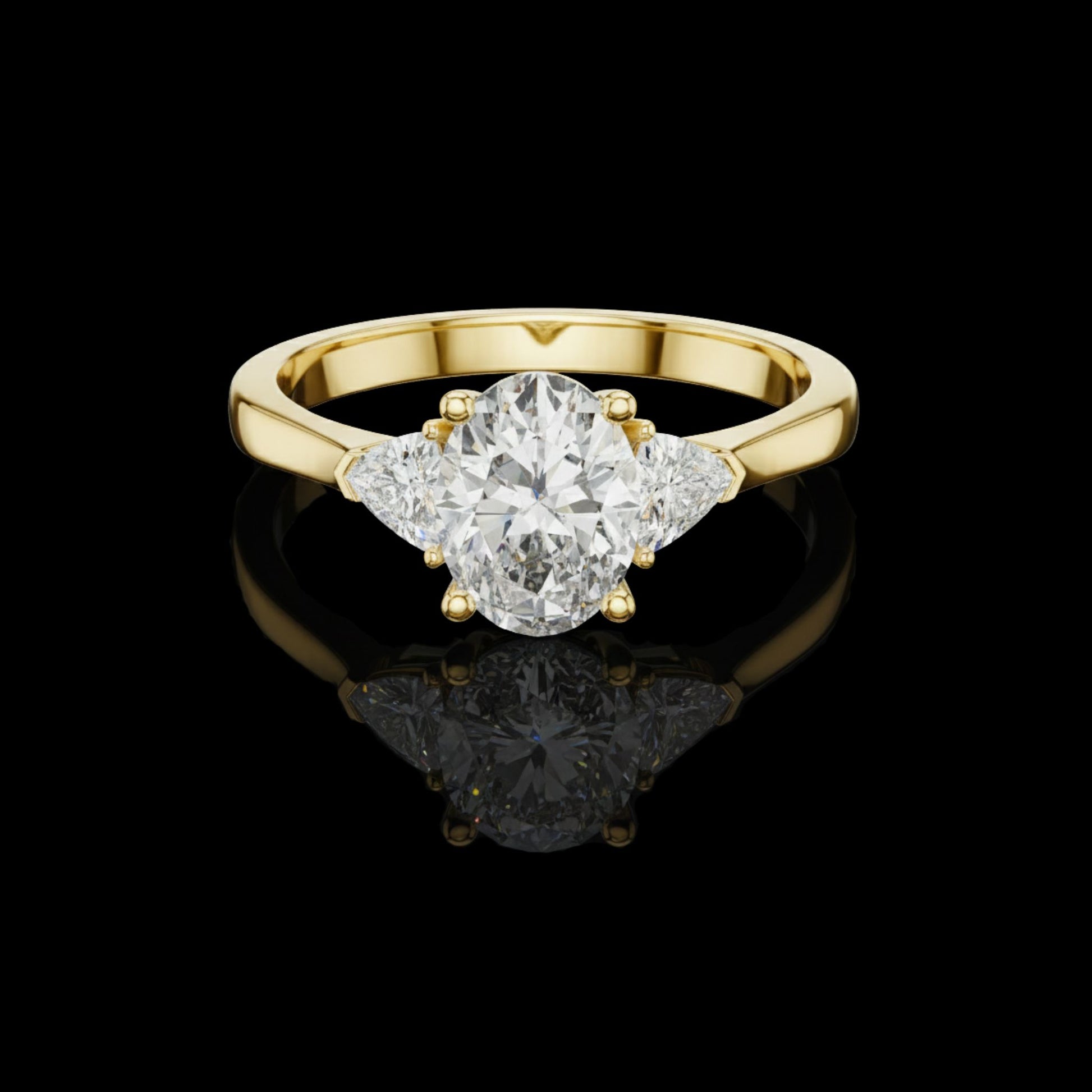 Make a timeless statement with this exquisite oval-cut diamond ring crafted in radiant gold. The brilliant center diamond shines with exceptional fire, clarity, and brilliance, while the sparkling trillion-cut side stones add a bold touch of modern elegance. This perfectly balanced three-stone design symbolizes love’s past, present, and future, making it an unforgettable choice for engagements, anniversaries, or anyone seeking a true luxury statement piece.