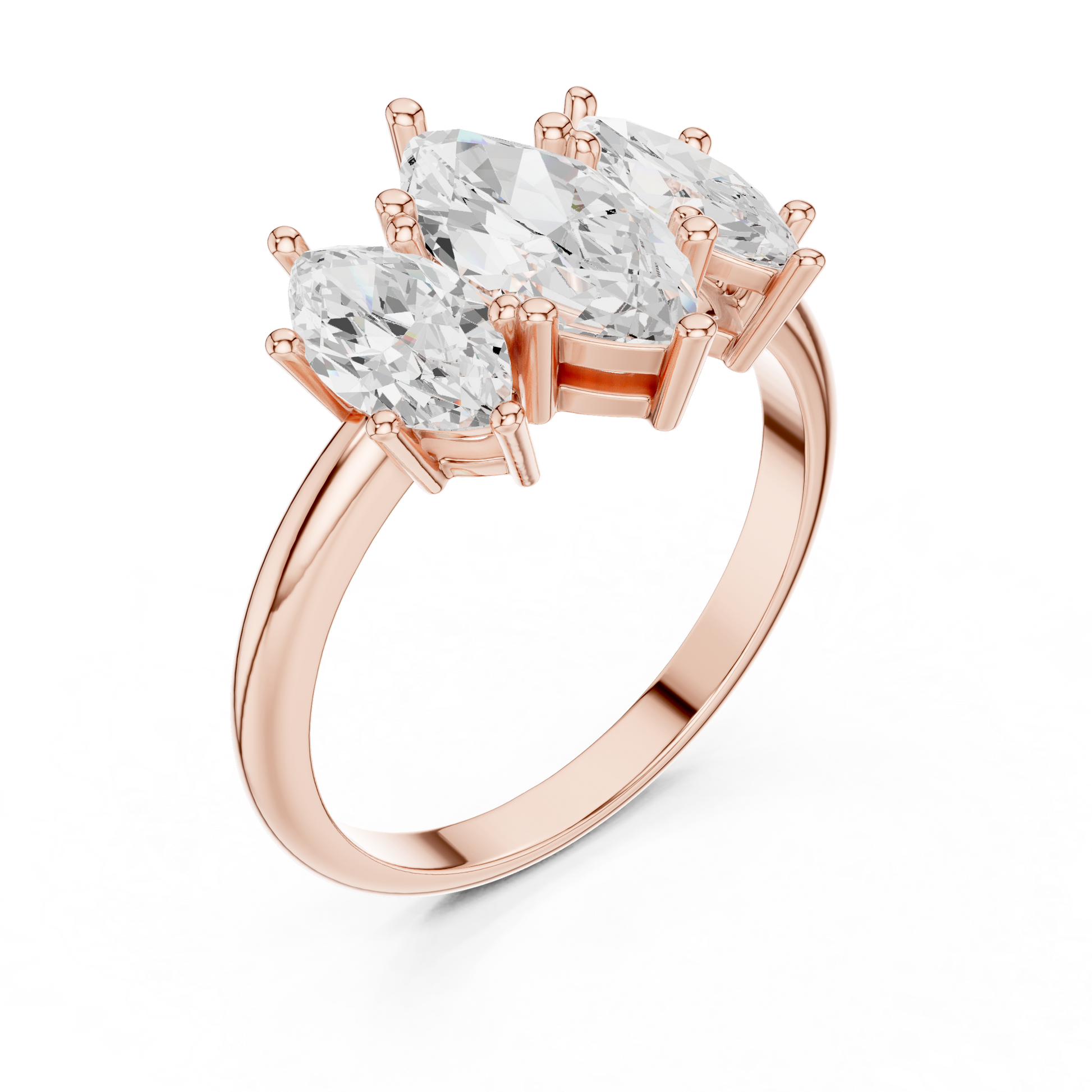 This stunning piece showcases Three Marquise-Cut Diamonds set side-by-side, creating a bold and elegant Statement Design that stands out effortlessly. Crafted in premium Gold, the ring delivers unmatched shine and a luxurious finish. Perfect for those who love unique brilliance with a high-end modern touch.