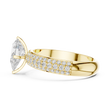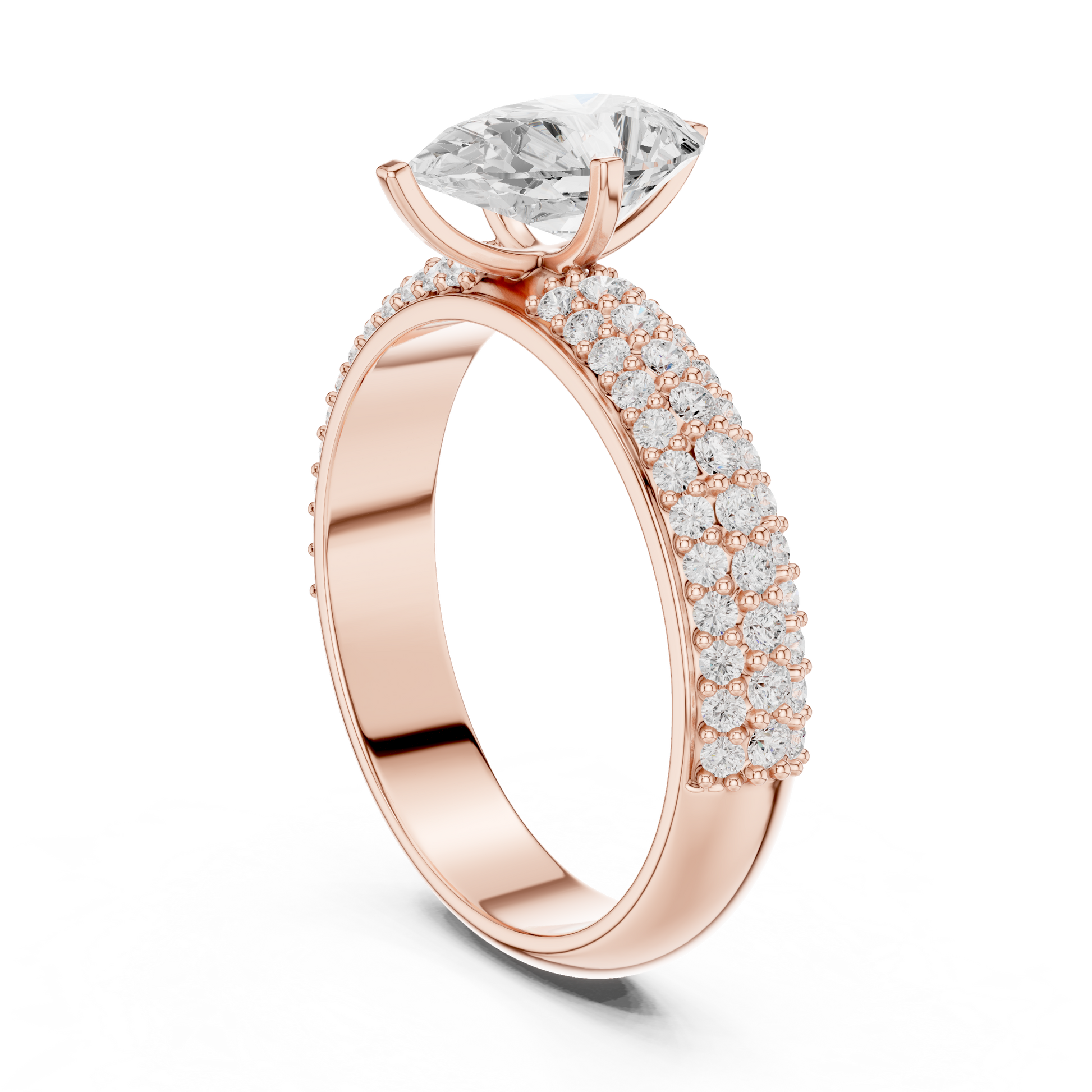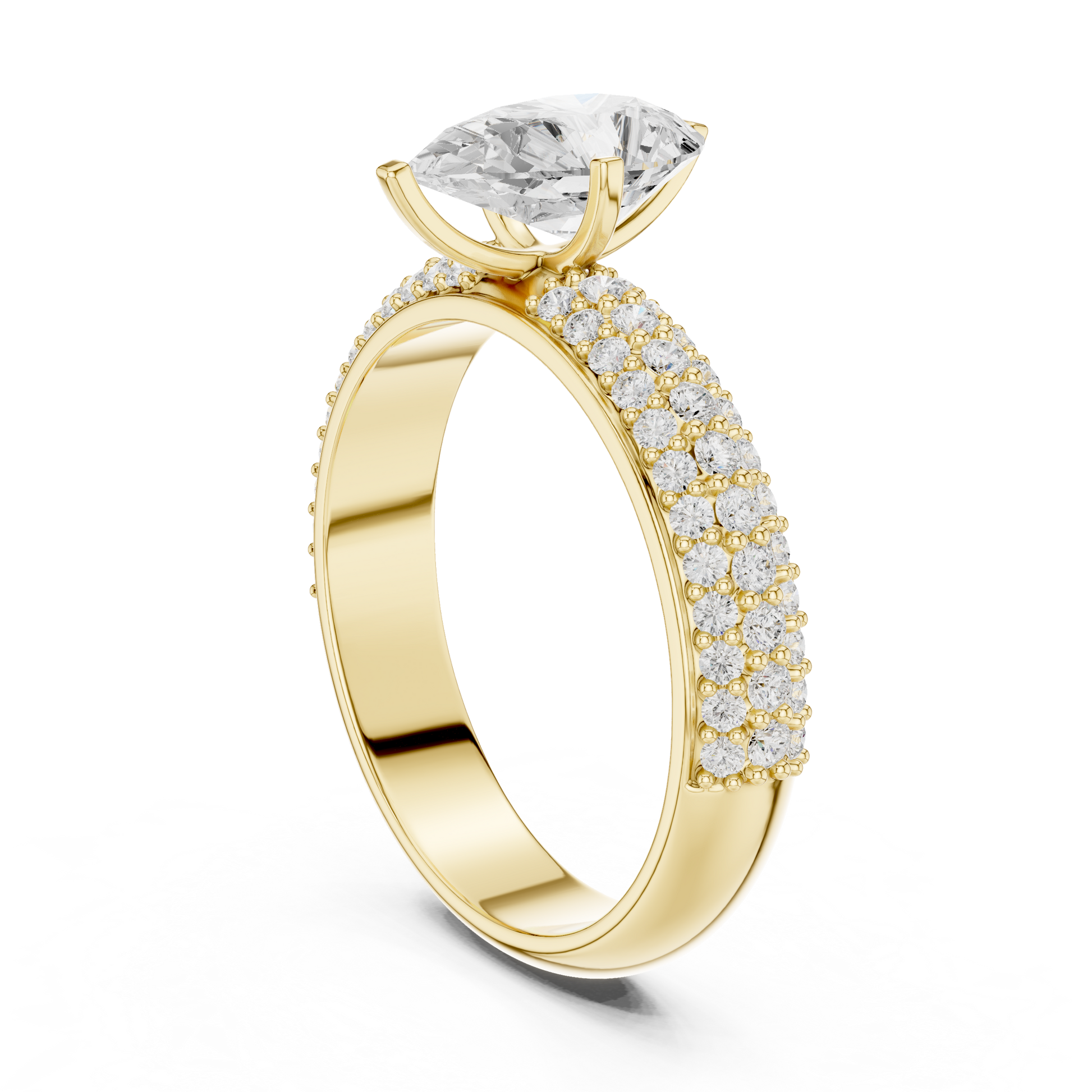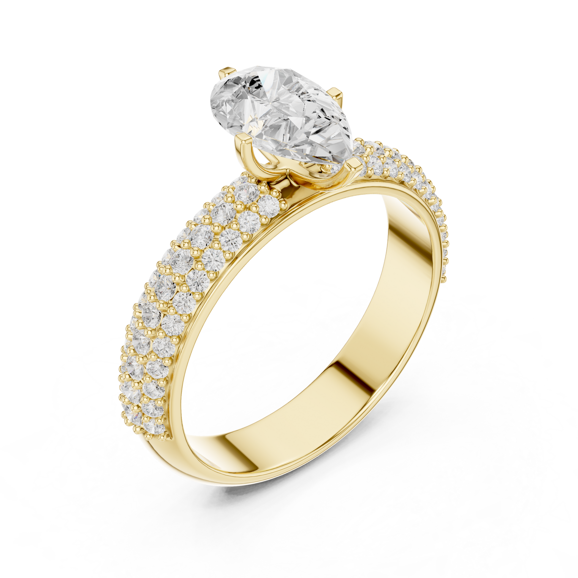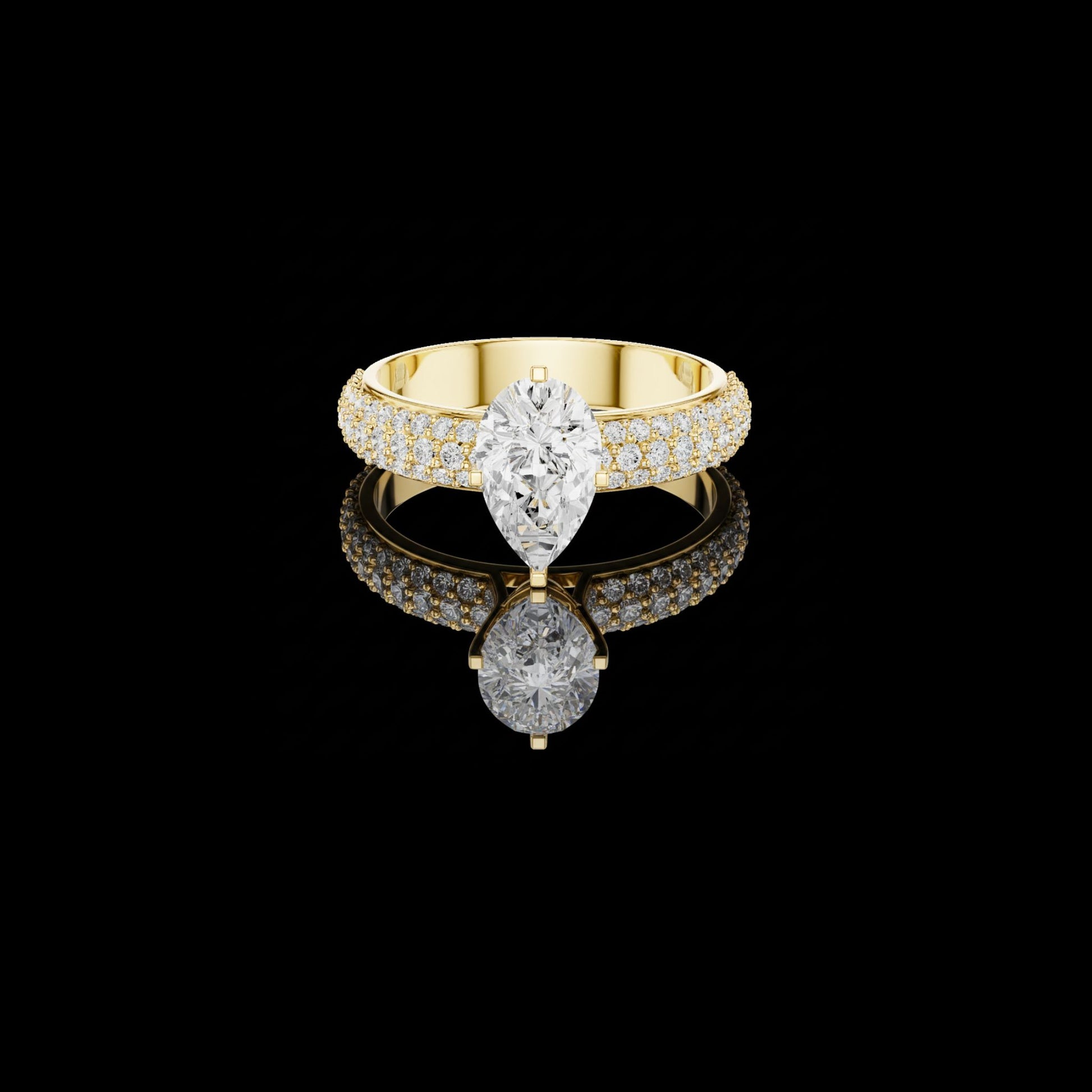 This stunning ring showcases a brilliant Pear-Cut Center Diamond set on a bold Triple-Row Diamond Band crafted in premium Gold. The pavé-set diamonds amplify the ring’s luxurious sparkle, creating a breathtaking piece that radiates elegance from every angle. Perfect for those who desire maximum brilliance and standout beauty.