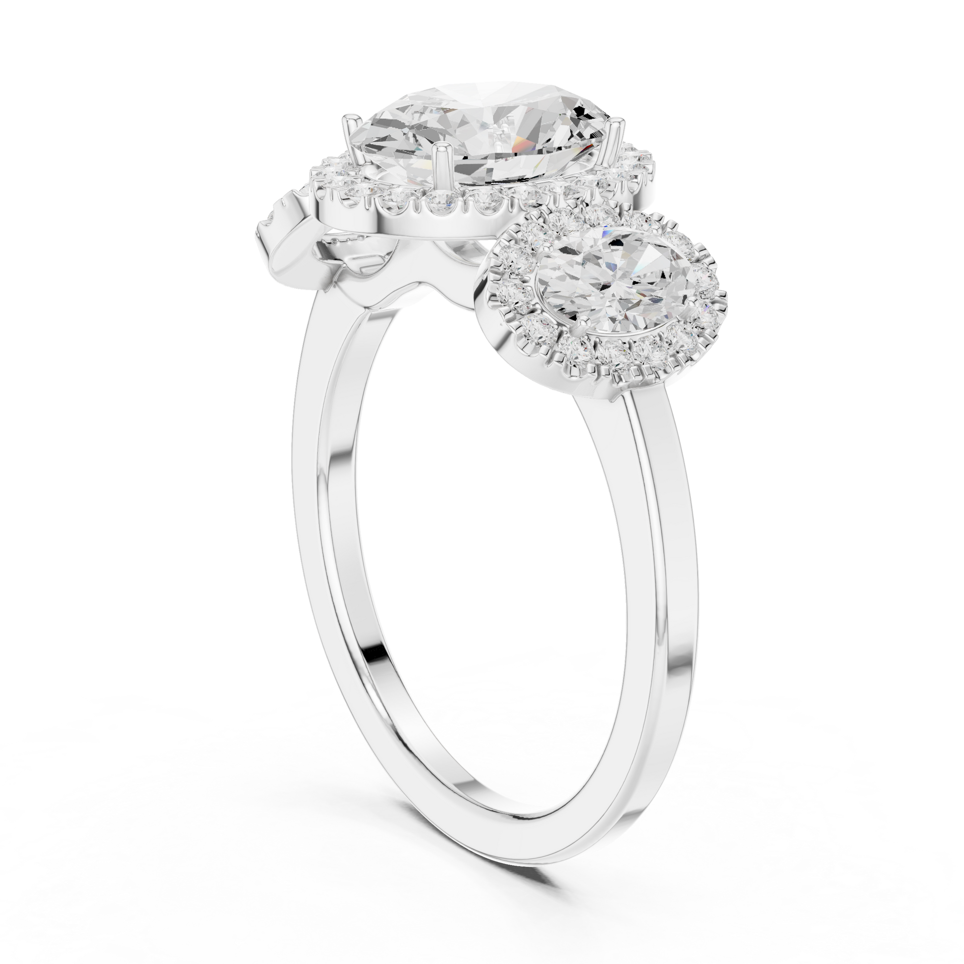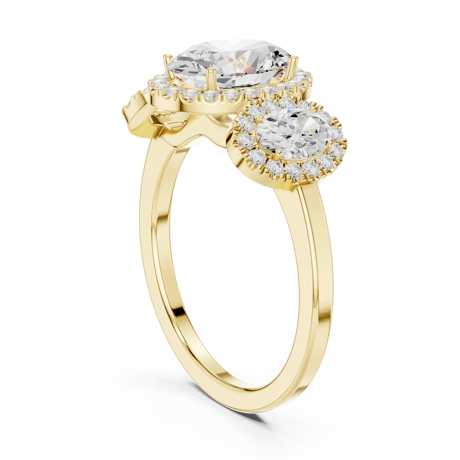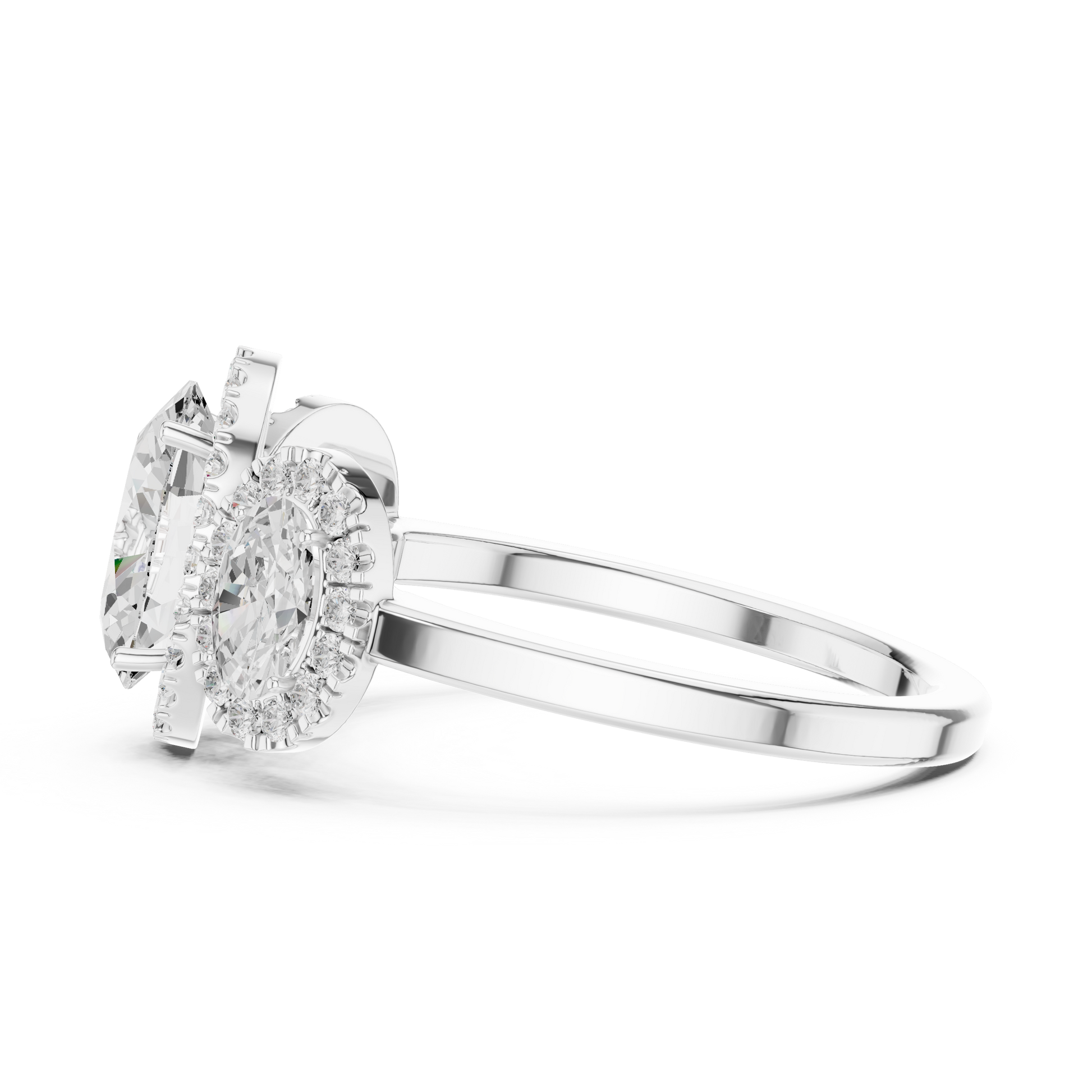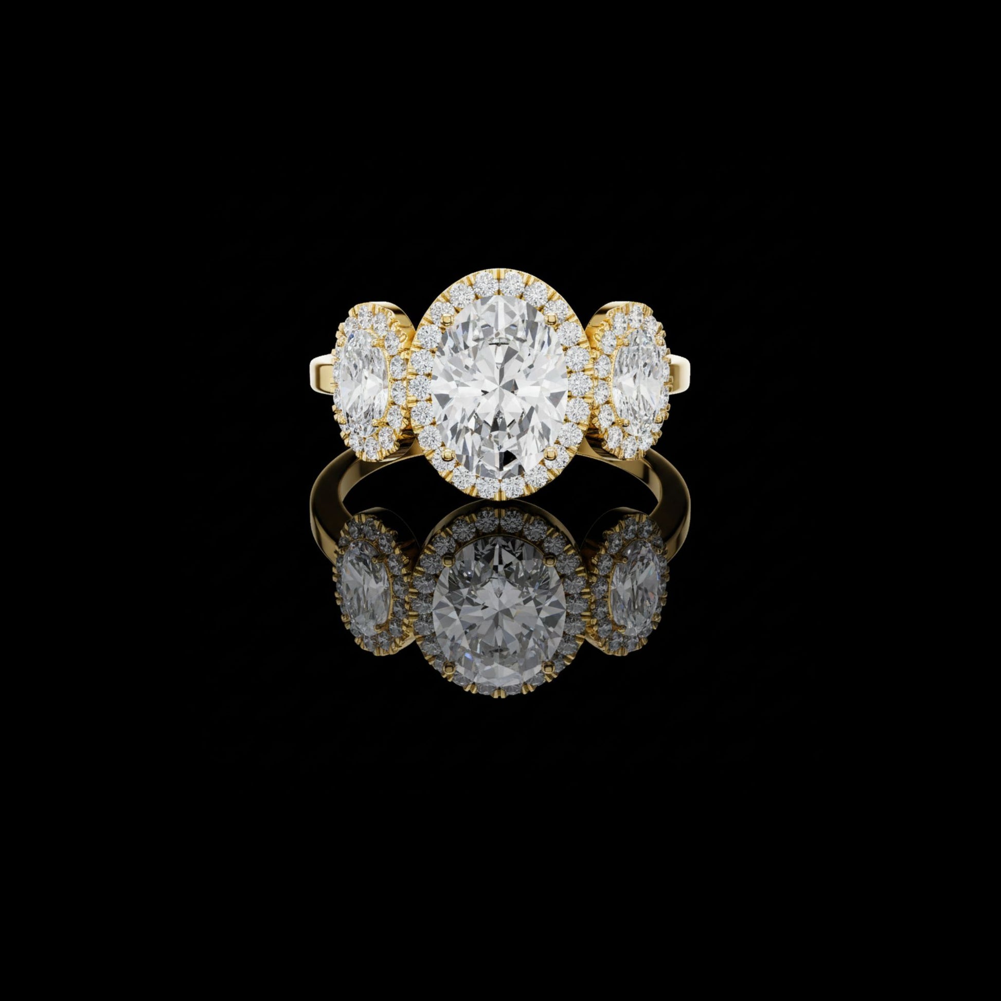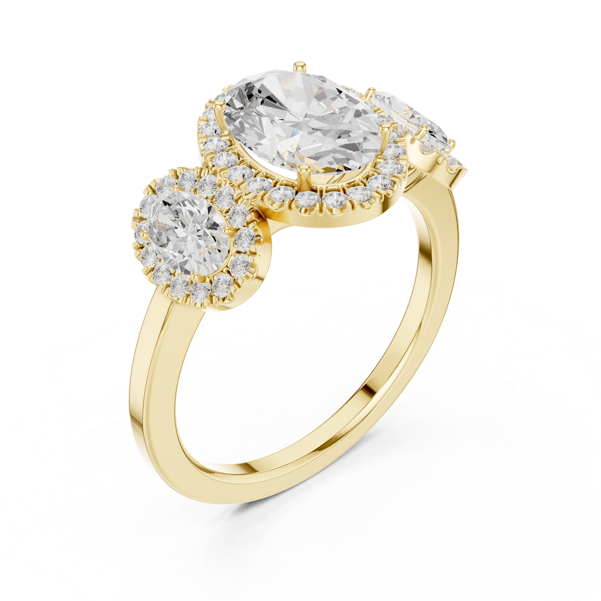 This breathtaking masterpiece features a brilliant Oval-Cut Center Diamond surrounded by a radiant Halo Setting, enhanced with two matching Side Oval Diamonds for a fuller, more luxurious presence. Set in premium Gold, this ring delivers unmatched sparkle and timeless elegance. A true statement piece for those who desire bold brilliance and unforgettable beauty.