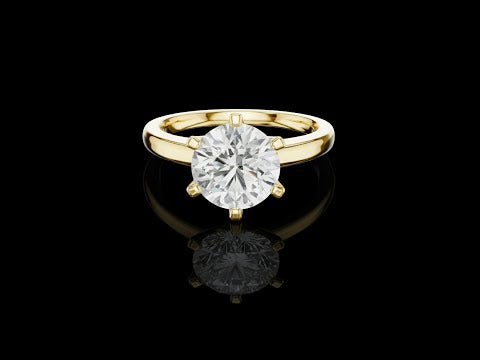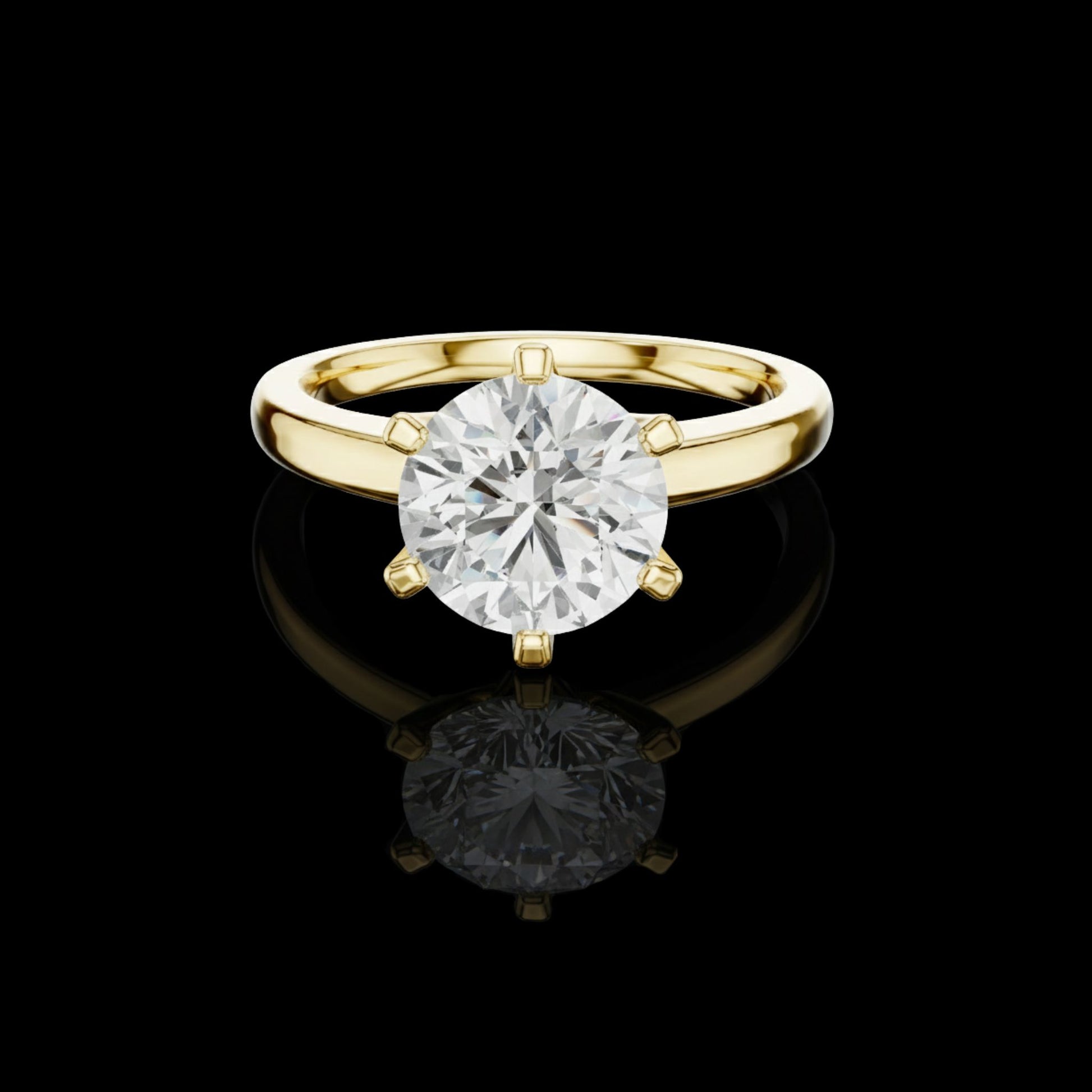 This timeless ring features a dazzling round brilliant cut diamond secured by six elegant prongs atop a polished yellow gold band. Its clean, sophisticated design highlights the gem’s natural fire and brilliance, creating a piece that radiates enduring elegance and charm. A perfect symbol of commitment, it embodies pure classic luxury and stands out with refined minimalist beauty.