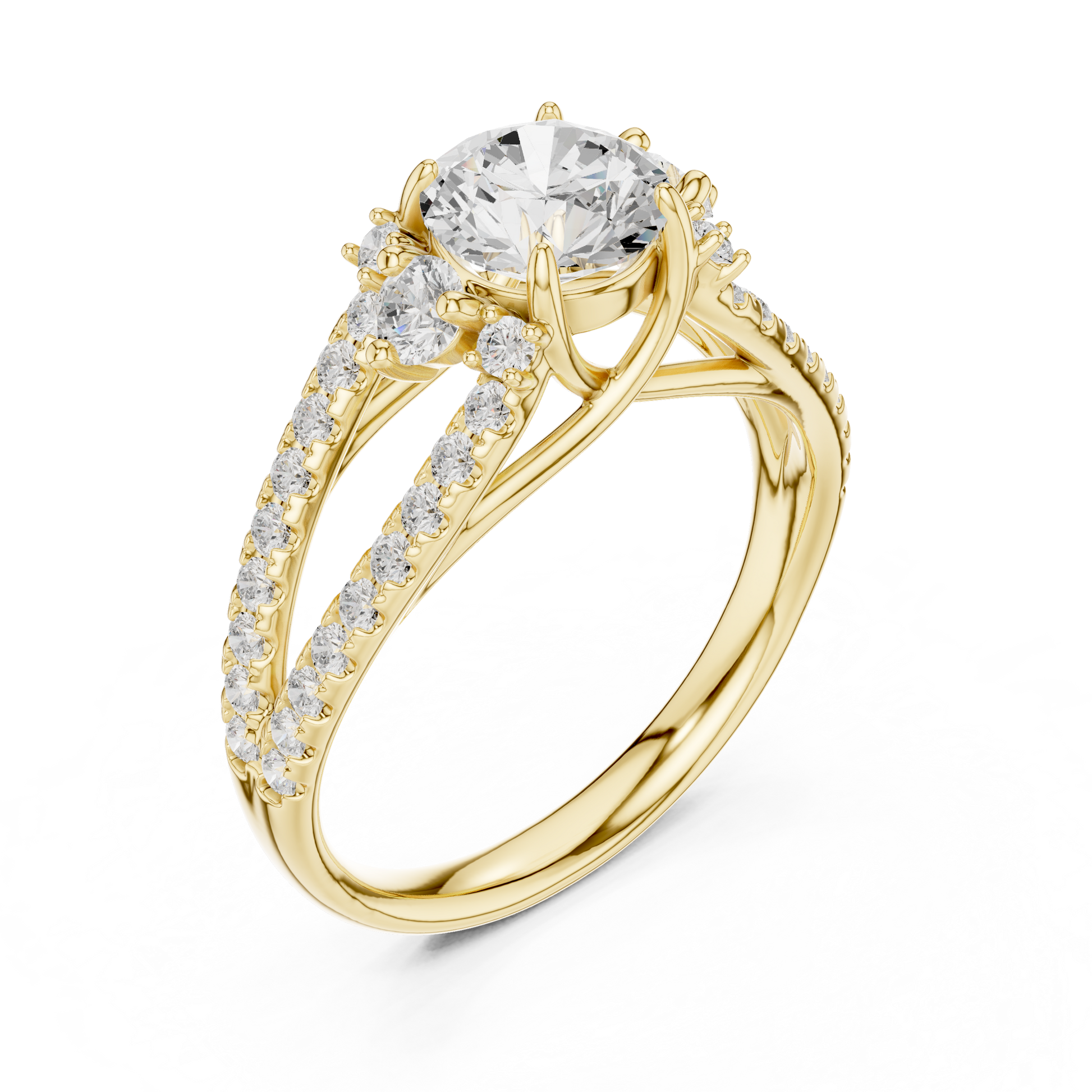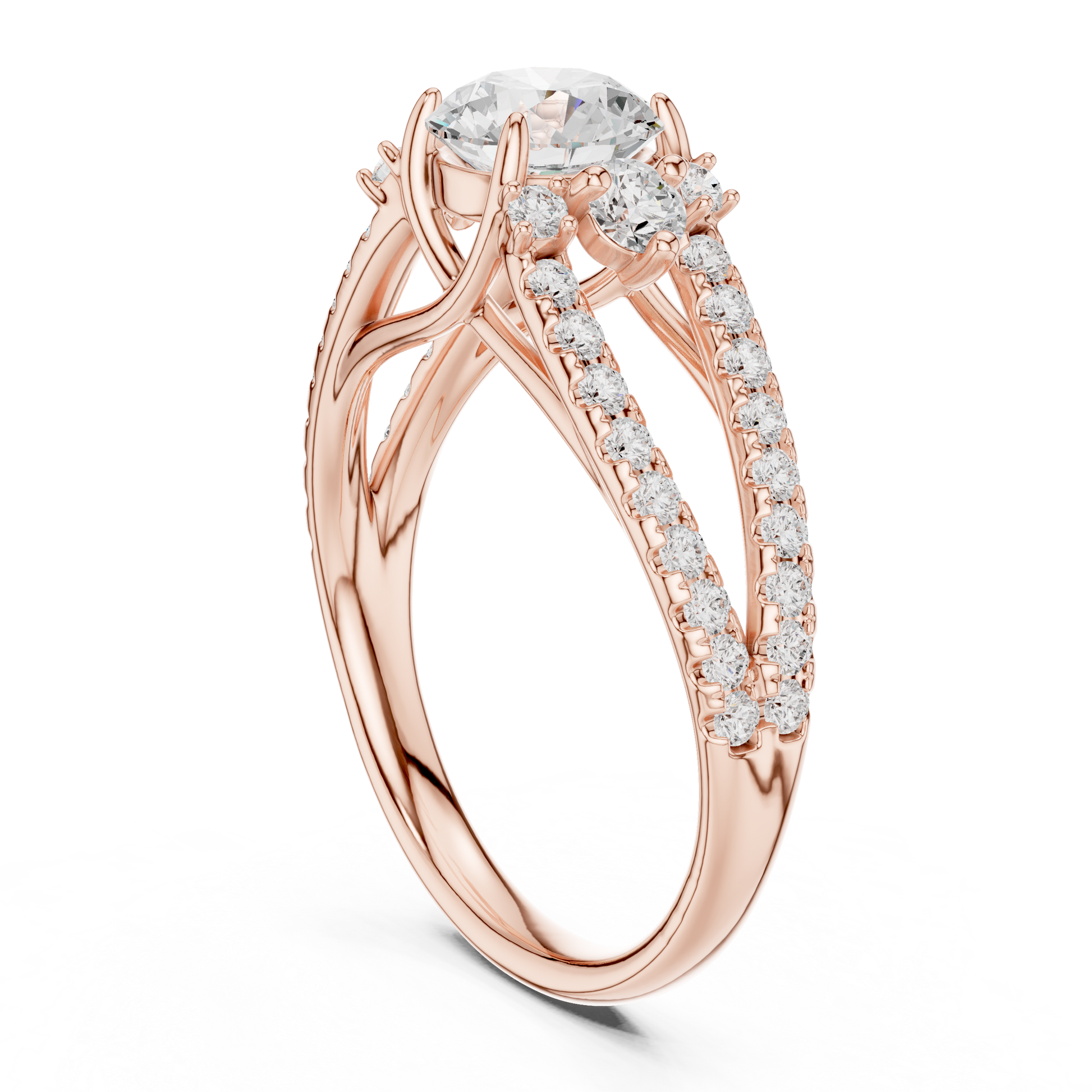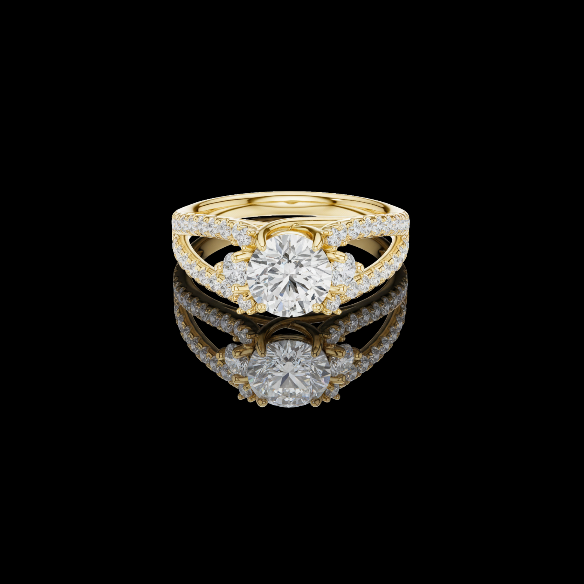 This breathtaking round brilliant diamond ring is designed to captivate from every angle. The centerpiece is a shimmering round-cut diamond, securely set in a graceful four-prong mount that enhances its fire and brilliance. The band features an intricate split-shank design, meticulously lined with pavé-set diamonds that add depth, dimension, and continuous sparkle. Crafted i, this ring blends timeless elegance with modern artistry—perfect for engagements, milestones, or anyone seeking a truly luxurious statement piece.