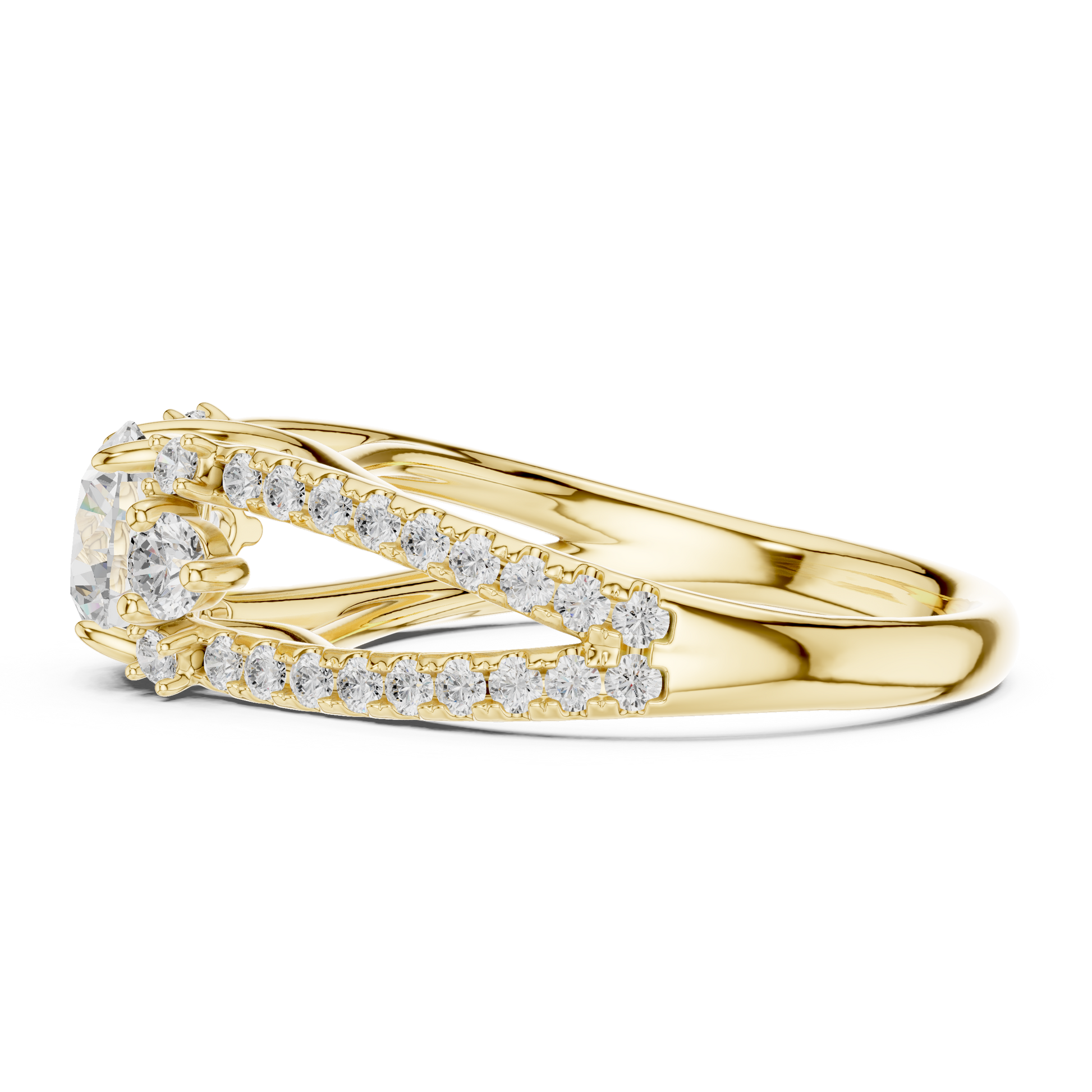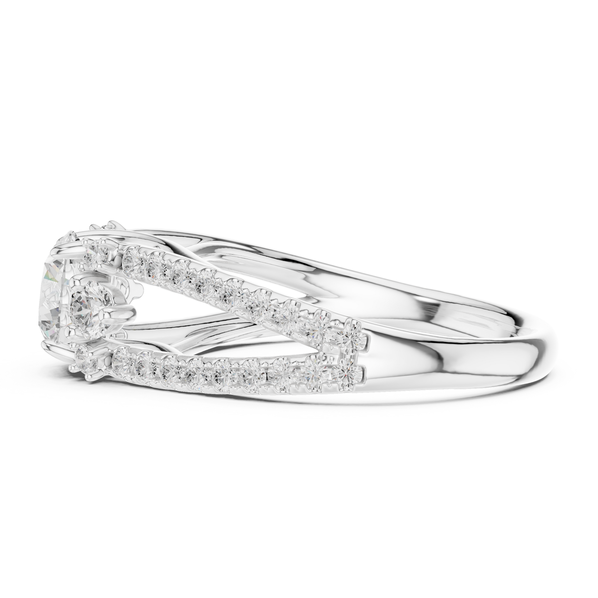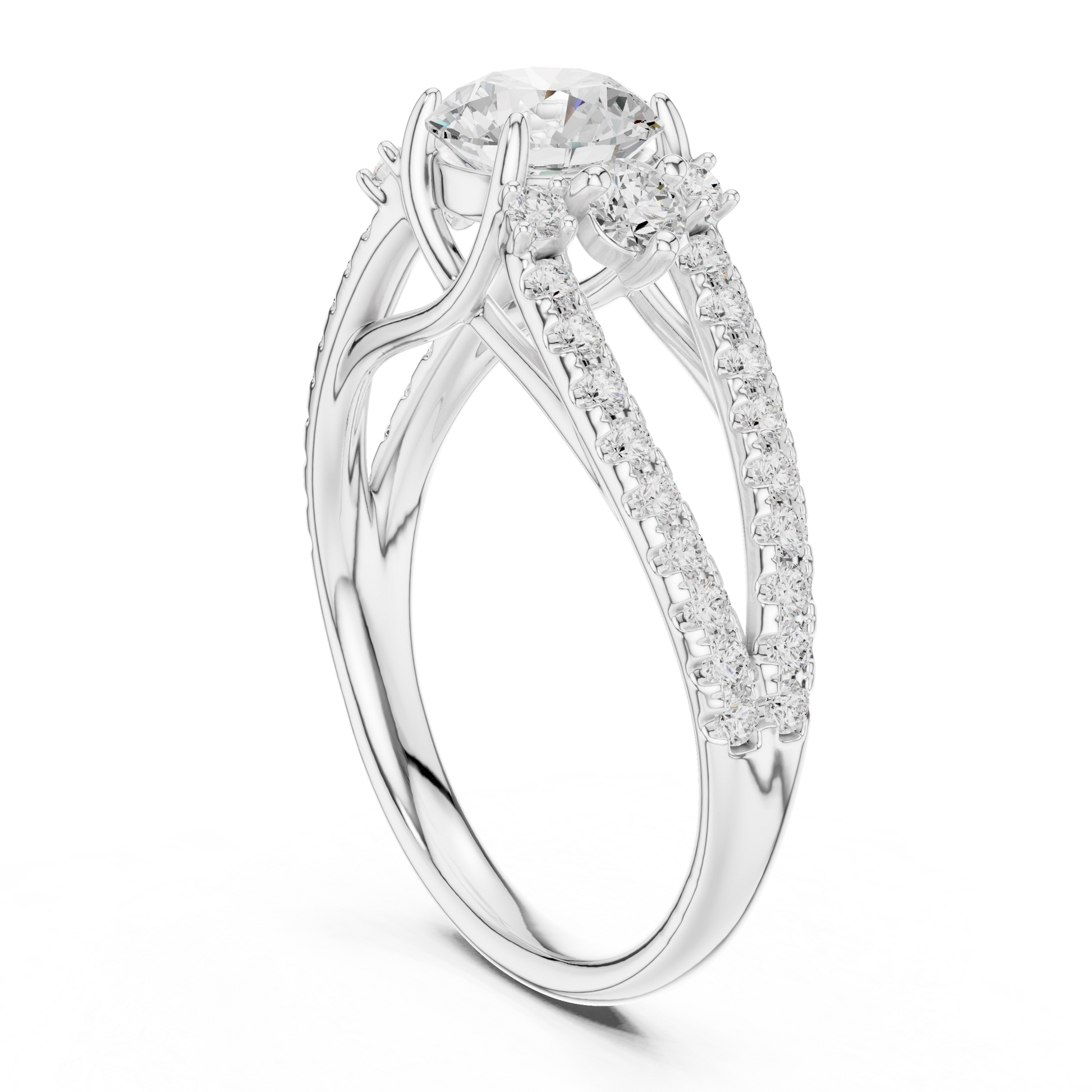This breathtaking round brilliant diamond ring is designed to captivate from every angle. The centerpiece is a shimmering round-cut diamond, securely set in a graceful four-prong mount that enhances its fire and brilliance. The band features an intricate split-shank design, meticulously lined with pavé-set diamonds that add depth, dimension, and continuous sparkle. Crafted i, this ring blends timeless elegance with modern artistry—perfect for engagements, milestones, or anyone seeking a truly luxurious statement piece.