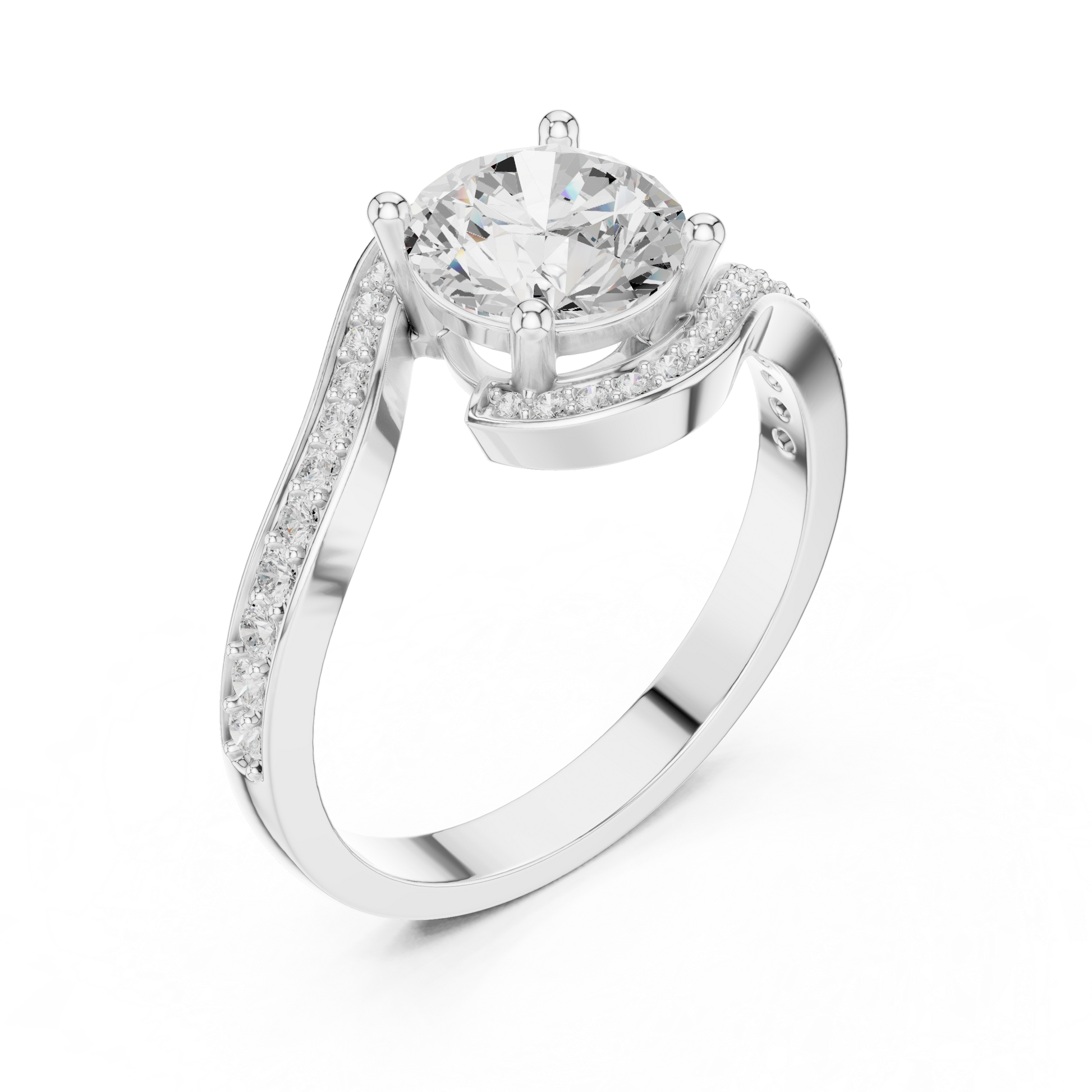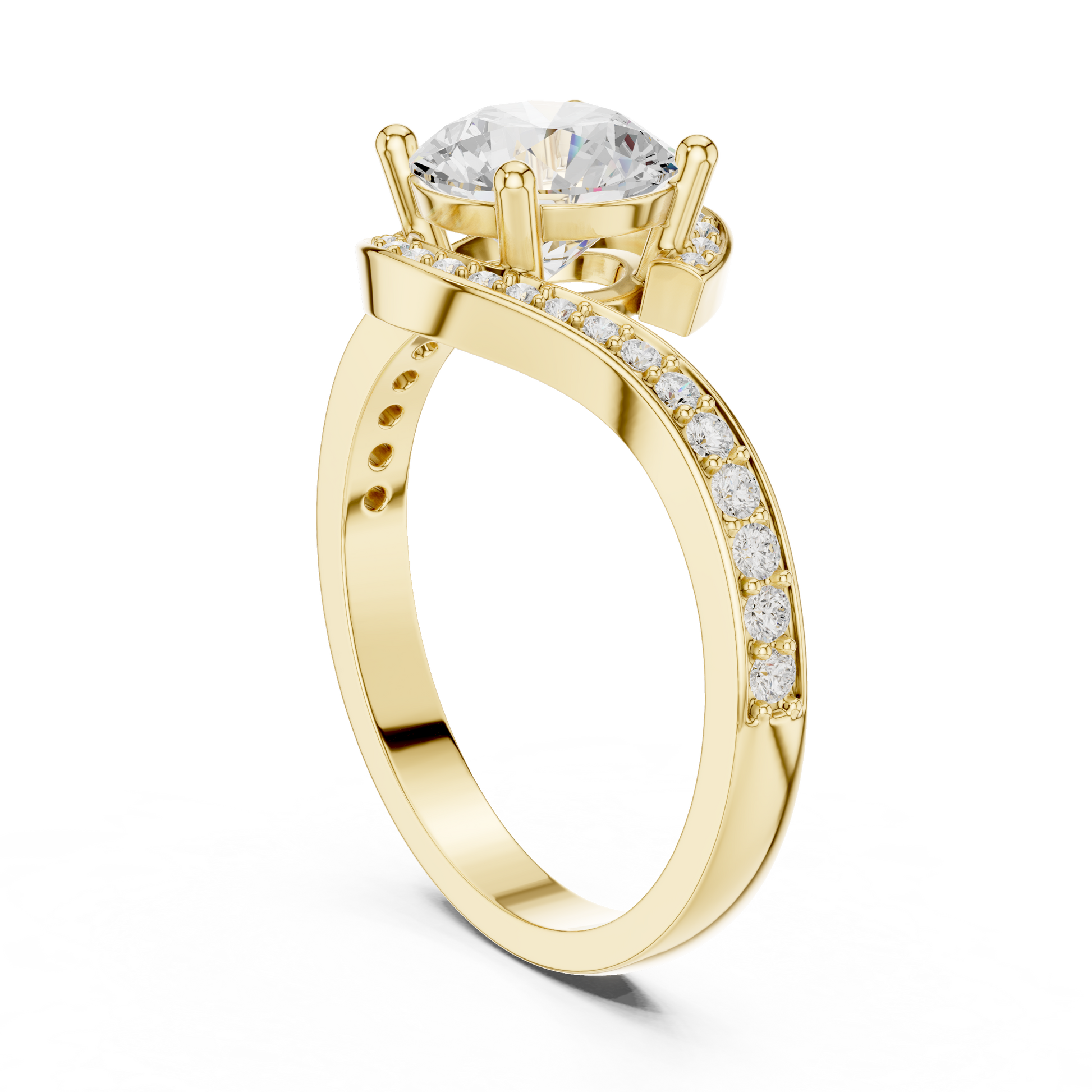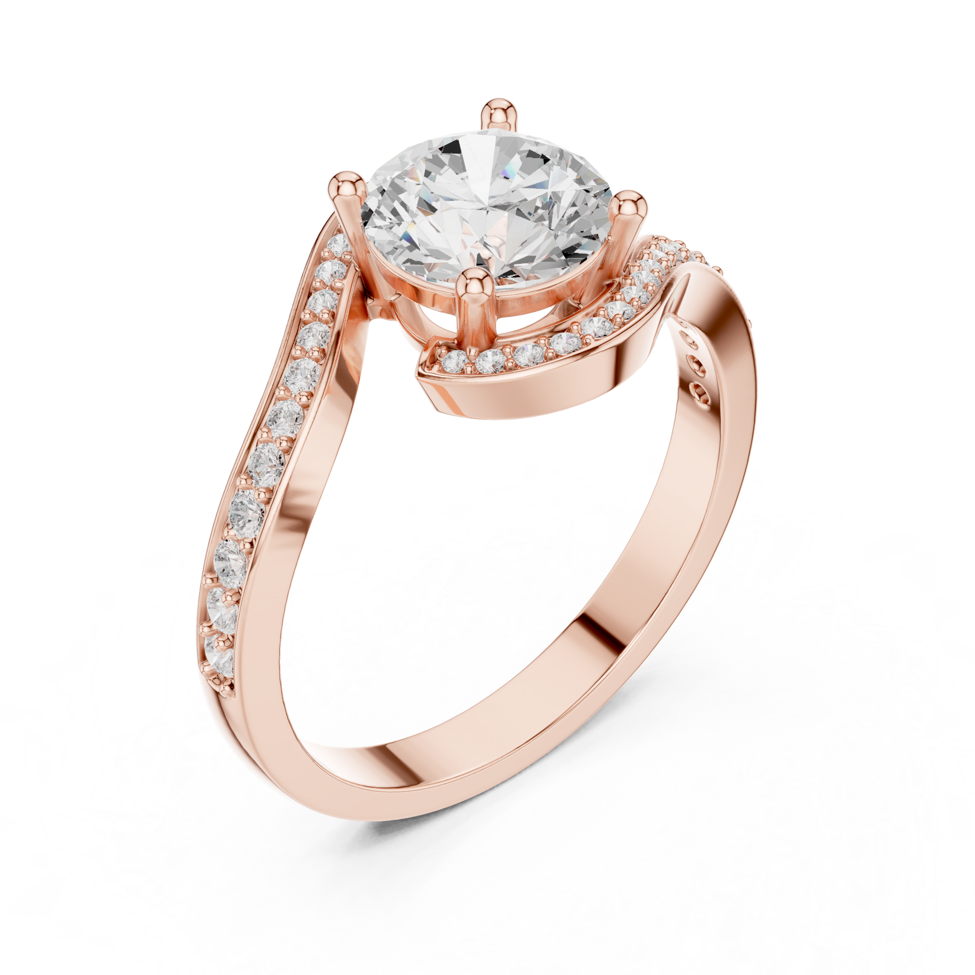 This stunning ring features a brilliant round-cut diamond embraced by an elegant swirl-inspired design crafted. The band is adorned with pave-set diamonds, adding extra sparkle and enhancing its fluid, romantic movement. The swirl pattern gracefully frames the center stone, highlighting its radiance, fire, and timeless brilliance. Perfect for those who adore luxury craftsmanship, artistic detailing, and a uniquely captivating silhouette that stands apart from traditional designs.