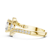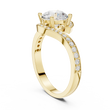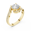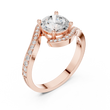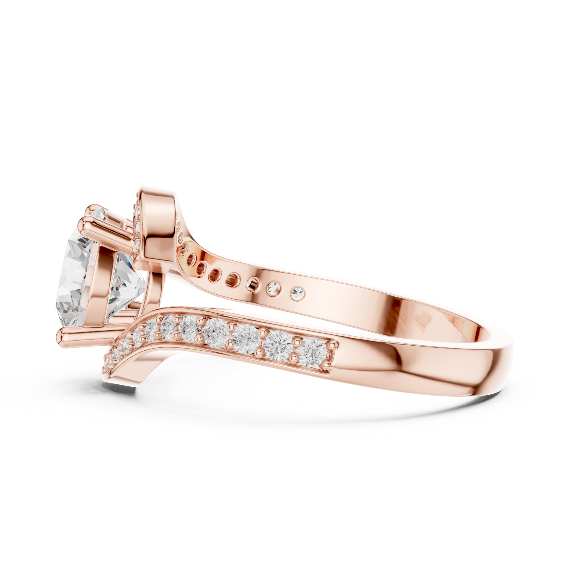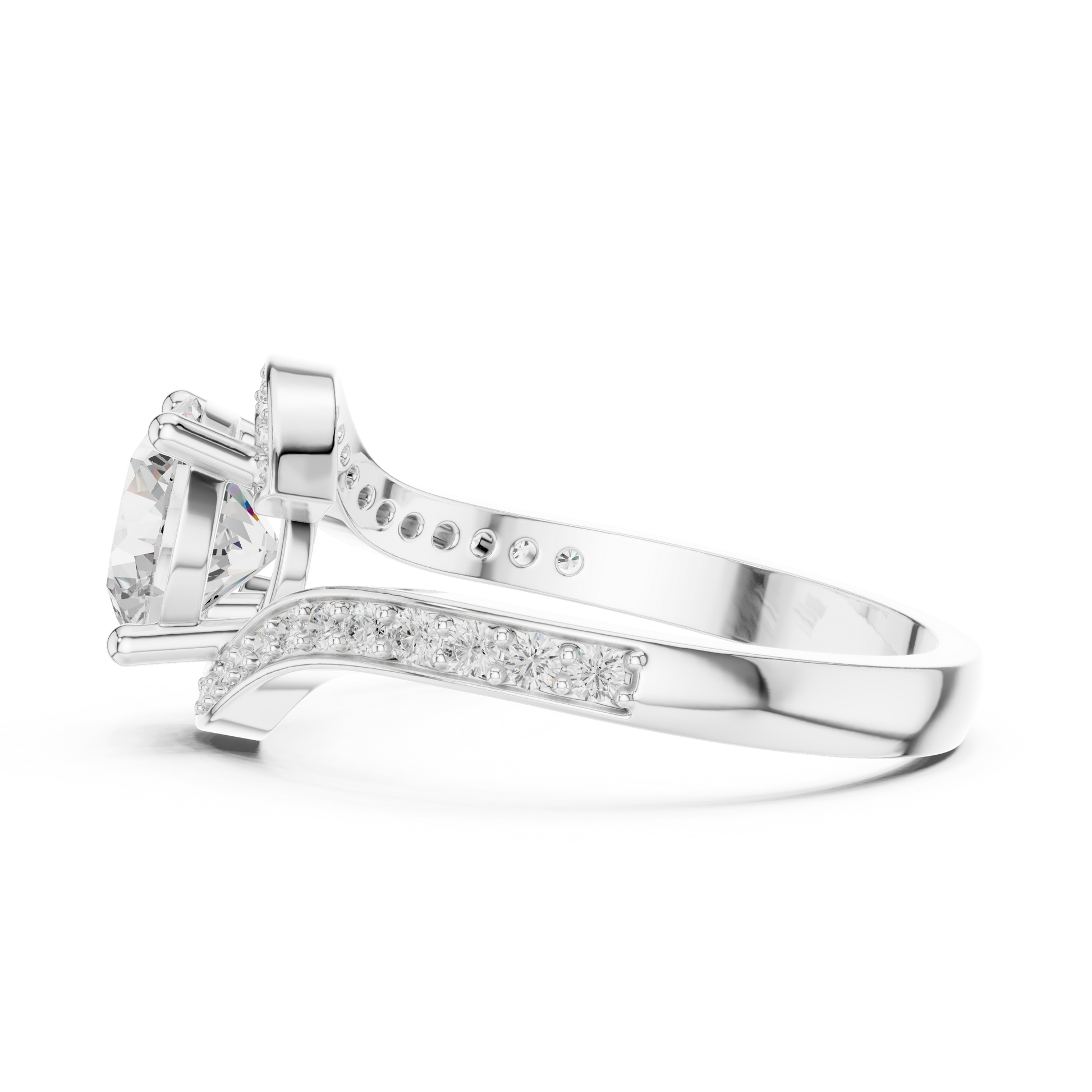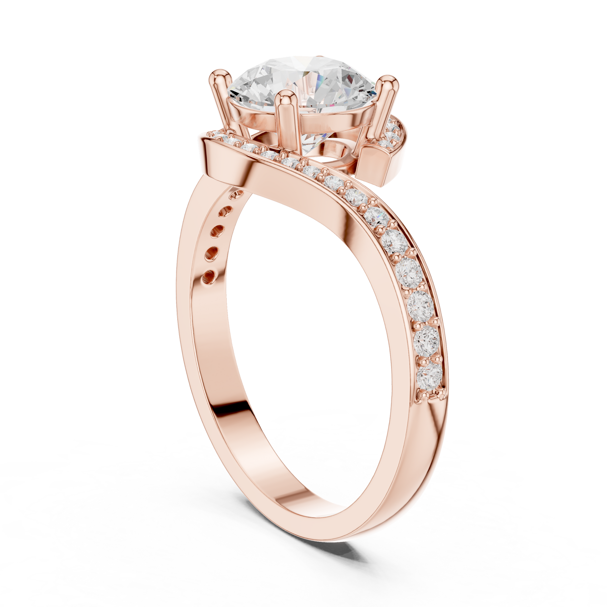 This stunning ring features a brilliant round-cut diamond embraced by an elegant swirl-inspired design crafted. The band is adorned with pave-set diamonds, adding extra sparkle and enhancing its fluid, romantic movement. The swirl pattern gracefully frames the center stone, highlighting its radiance, fire, and timeless brilliance. Perfect for those who adore luxury craftsmanship, artistic detailing, and a uniquely captivating silhouette that stands apart from traditional designs.