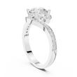 1.00 CT Swirl Design Ring Featuring a Brilliant Round Lab Grown Diamond with a Pave-Set Halo Accent