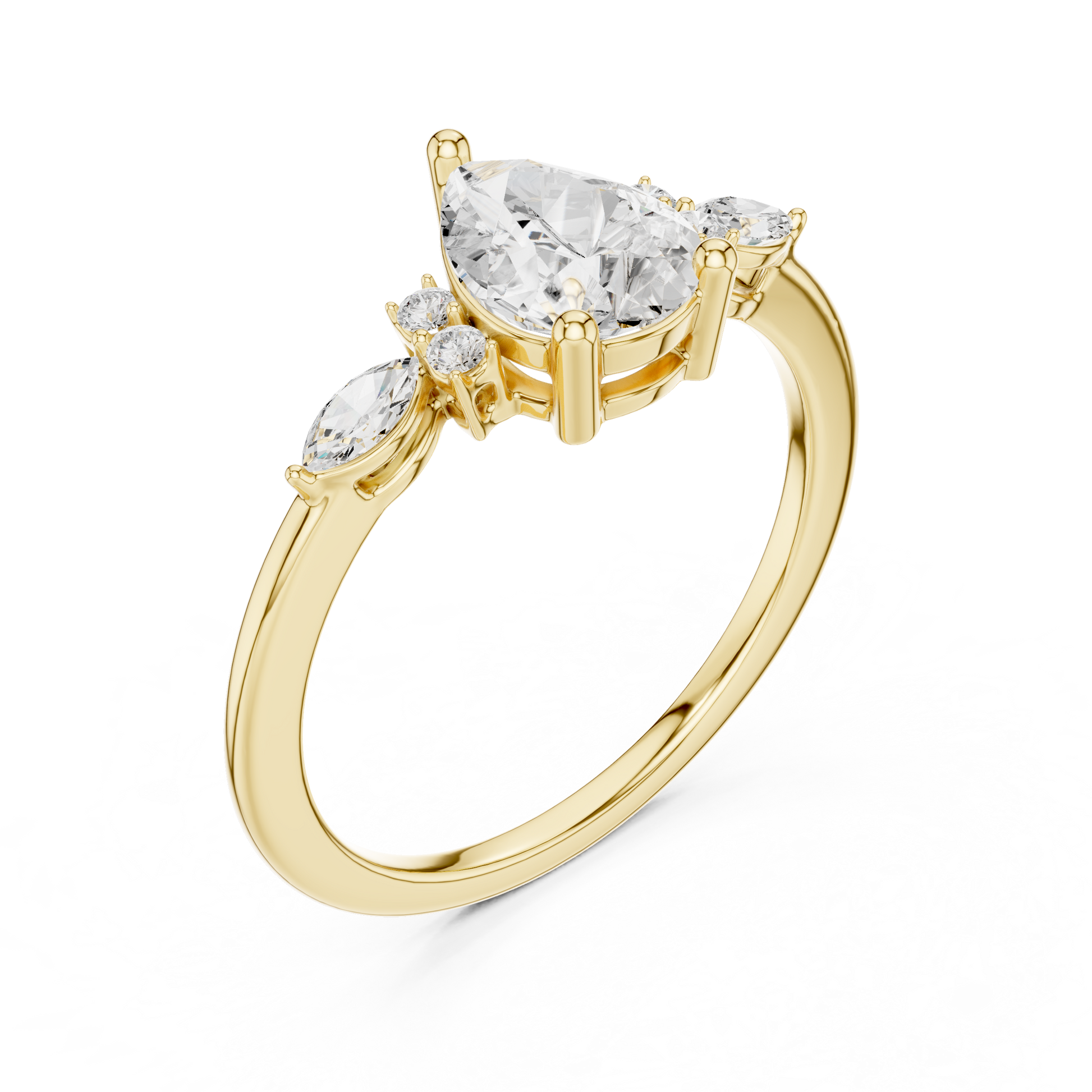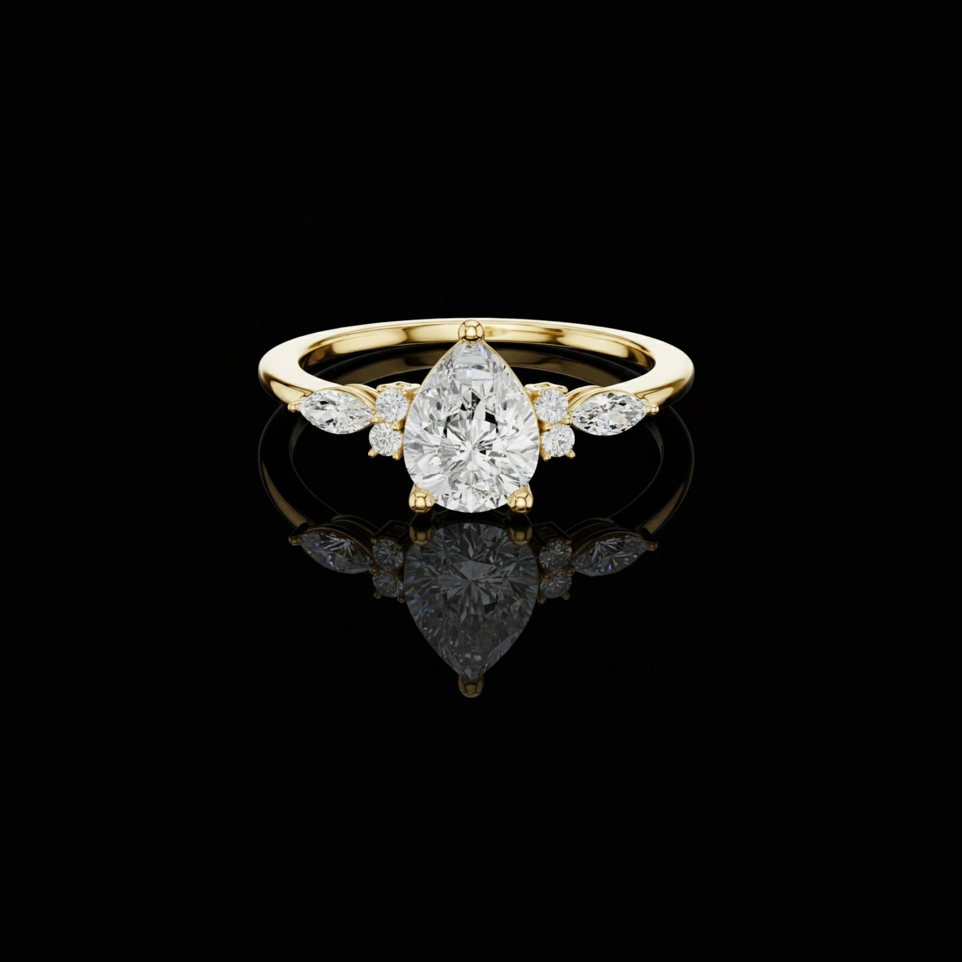 This Luxury Pear Cut Diamond Ring is a graceful expression of romance and timeless sophistication. Set in radiant gold, the brilliant pear-shaped center diamond is perfectly complemented by delicate side accent diamonds, creating a balanced silhouette that enhances its natural fire and brilliance. Designed for those who cherish elegant craftsmanship and classic bridal beauty, this ring is ideal for engagements, weddings, or unforgettable milestone moments. A stunning symbol of love, commitment, and enduring luxury, this piece reflects the refined artistry of Ivevar Luxury.