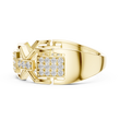 Make a powerful statement with this luxury gold diamond ring, designed for those who live bold and shine louder. Crafted with a strong architectural design, this ring features a fully iced diamond face surrounded by precision-cut diamond side panels, delivering unmatched brilliance from every angle.Perfect for hip-hop jewelry lovers, collectors, and anyone who wants a ring that commands attention.