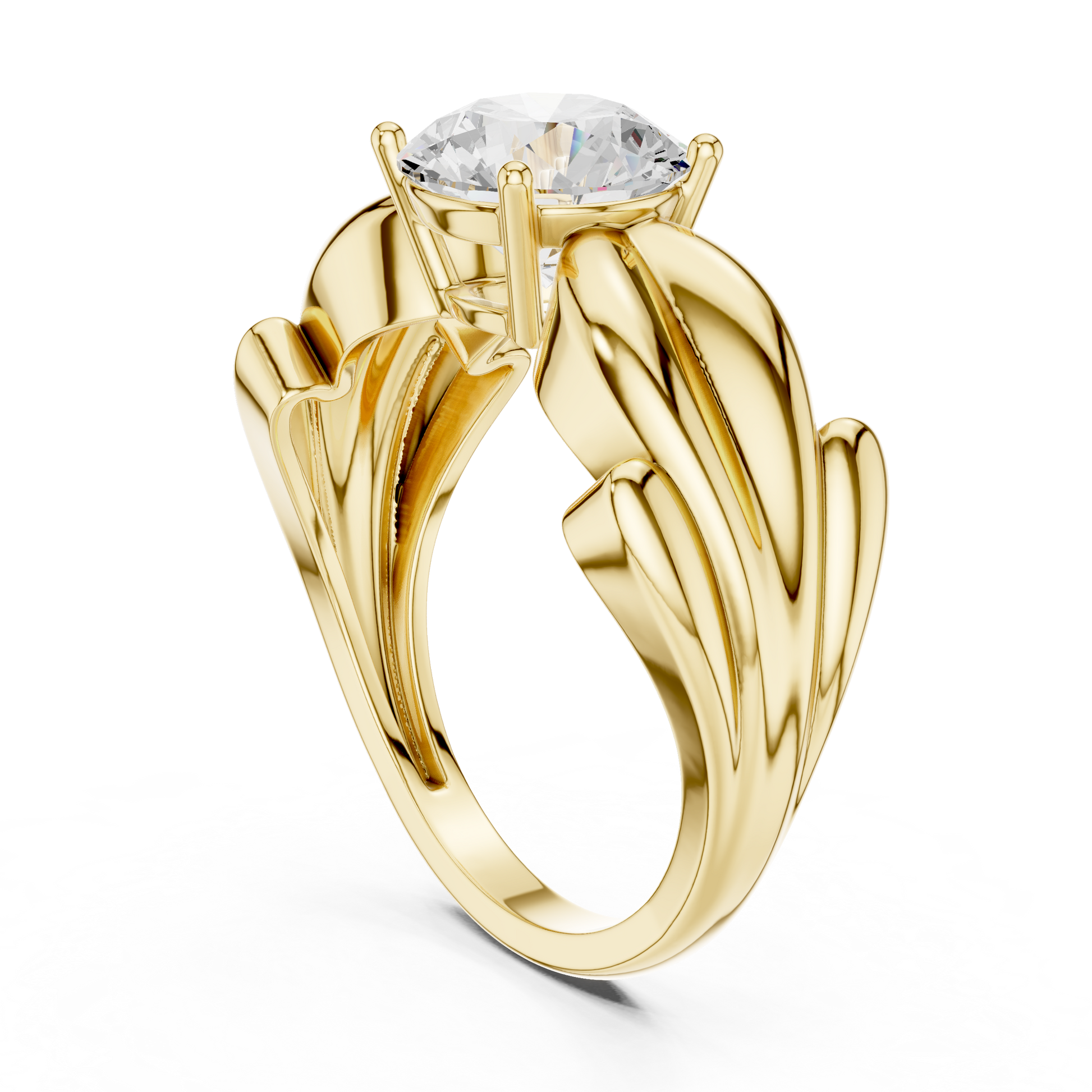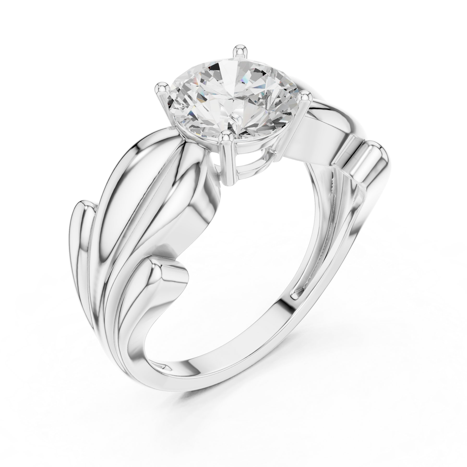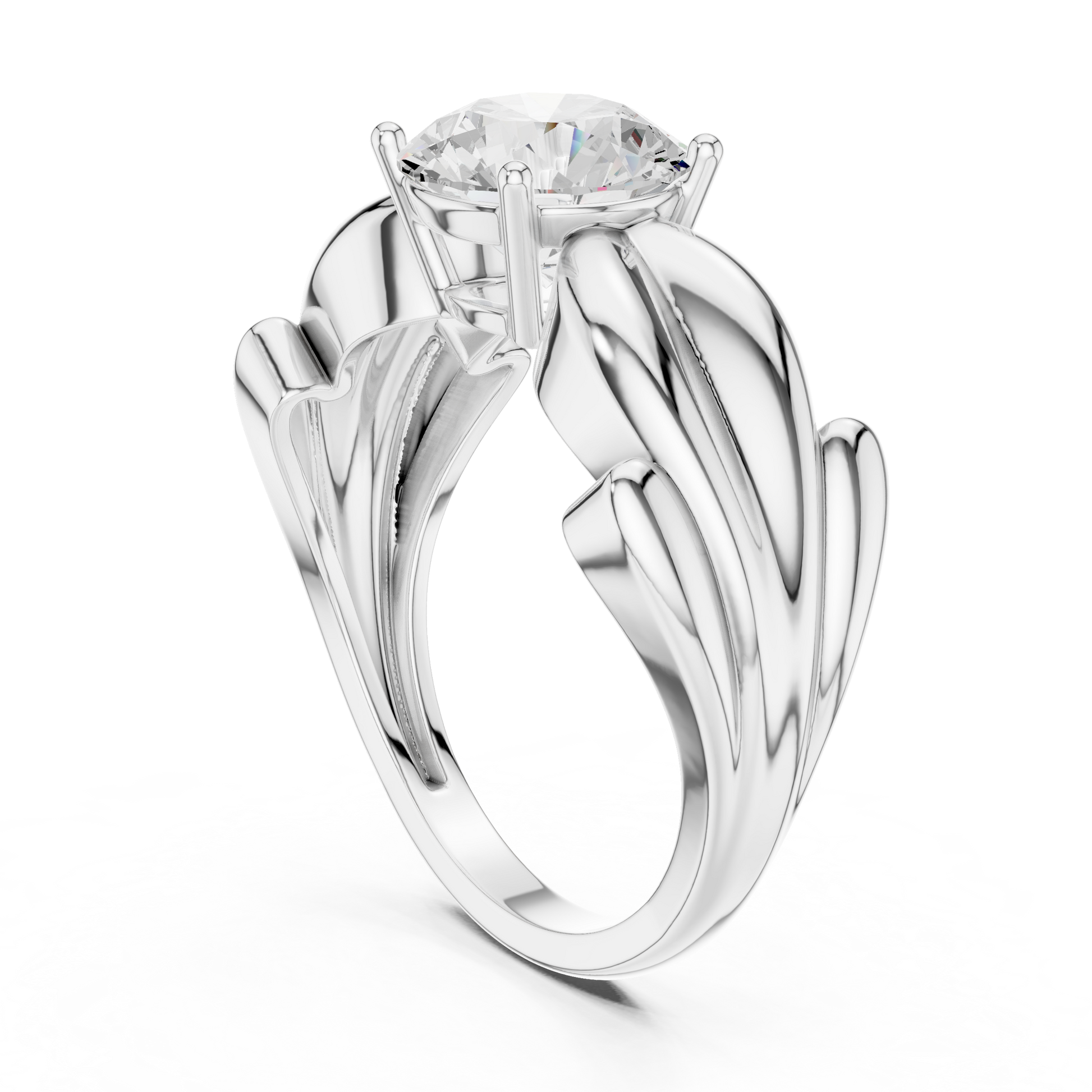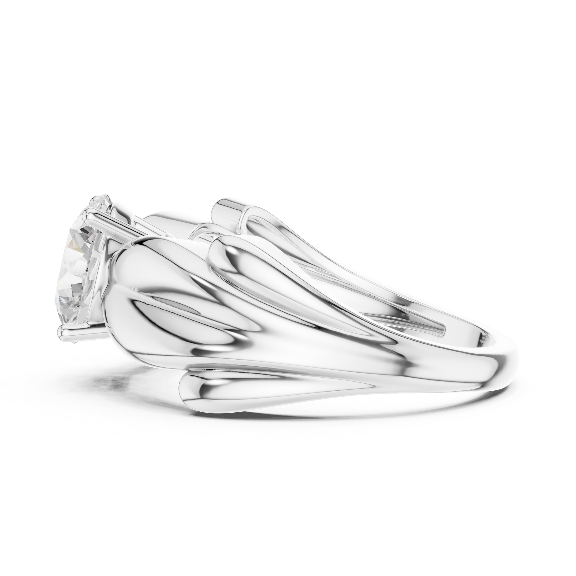 This refined solitaire diamond ring showcases a radiant round-cut diamond held securely within a bold yet graceful setting. The sculpted band curves inward, creating a soft embracing form that draws the eye toward the center stone while enhancing its brilliance.Designed to balance modern structure with classic sophistication, this ring is perfect for engagements, anniversaries, or heirloom-worthy gifting. Its clean lines and luxurious finish make it a statement of enduring commitment and refined craftsmanship.