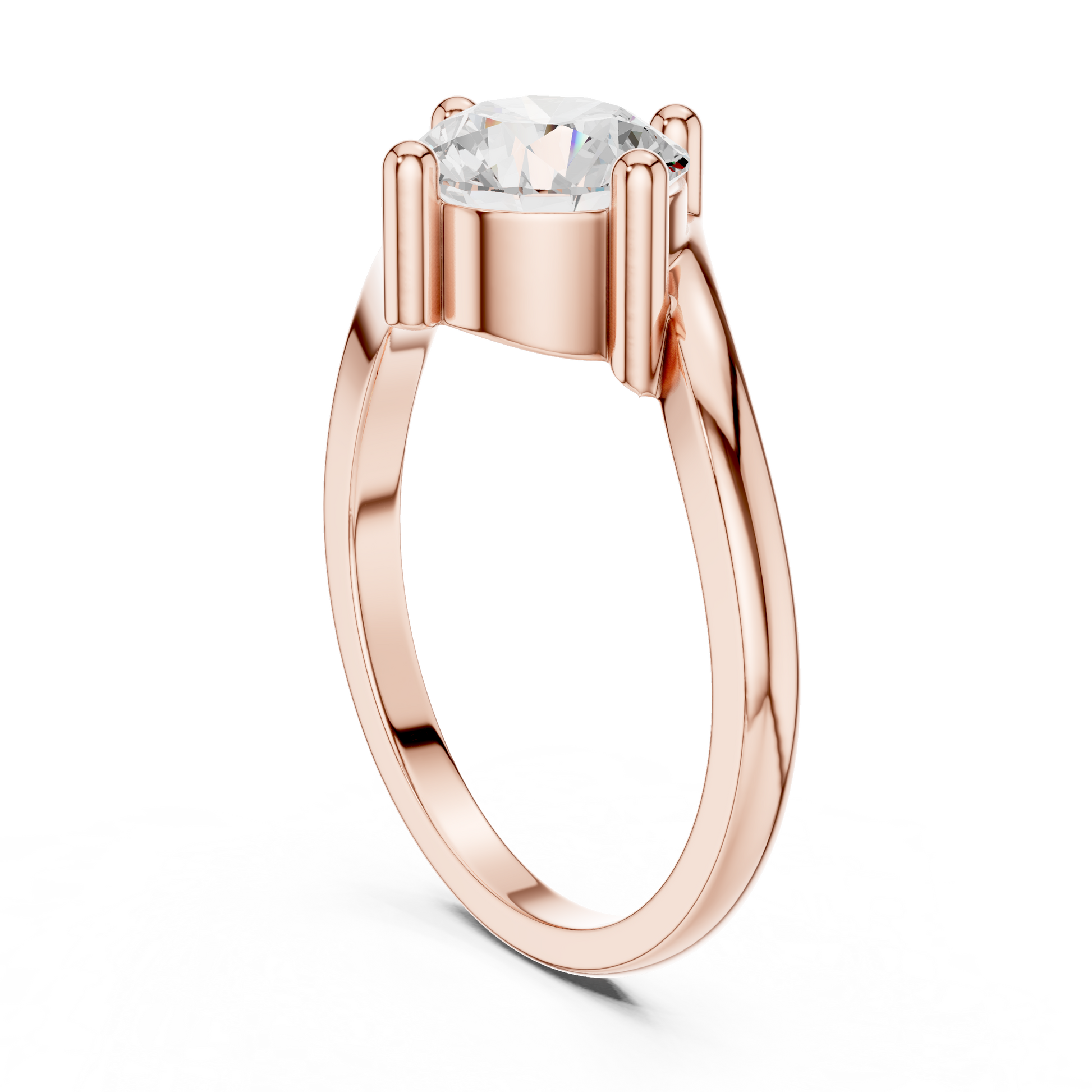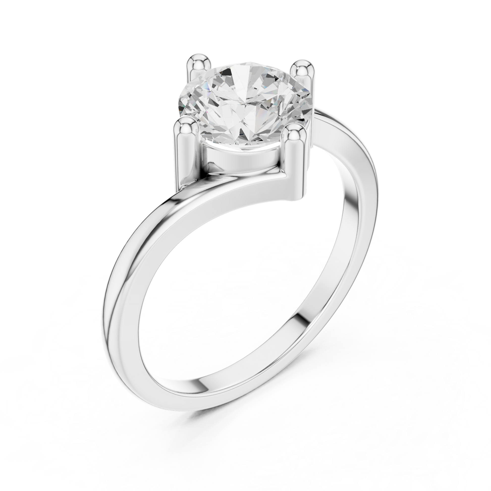 This stunning piece blends contemporary artistry with timeless elegance. Crafted in the ring features a beautifully twisted band that adds movement and sophistication. At its center lies a radiant round brilliant diamond, held securely by a sculpted four-prong setting designed to maximize light reflection and brilliance. Perfect for engagements, anniversaries, or luxury gifting, this ring offers a refined balance of modern design and classic craftsmanship, making it a captivating symbol of love and commitment.