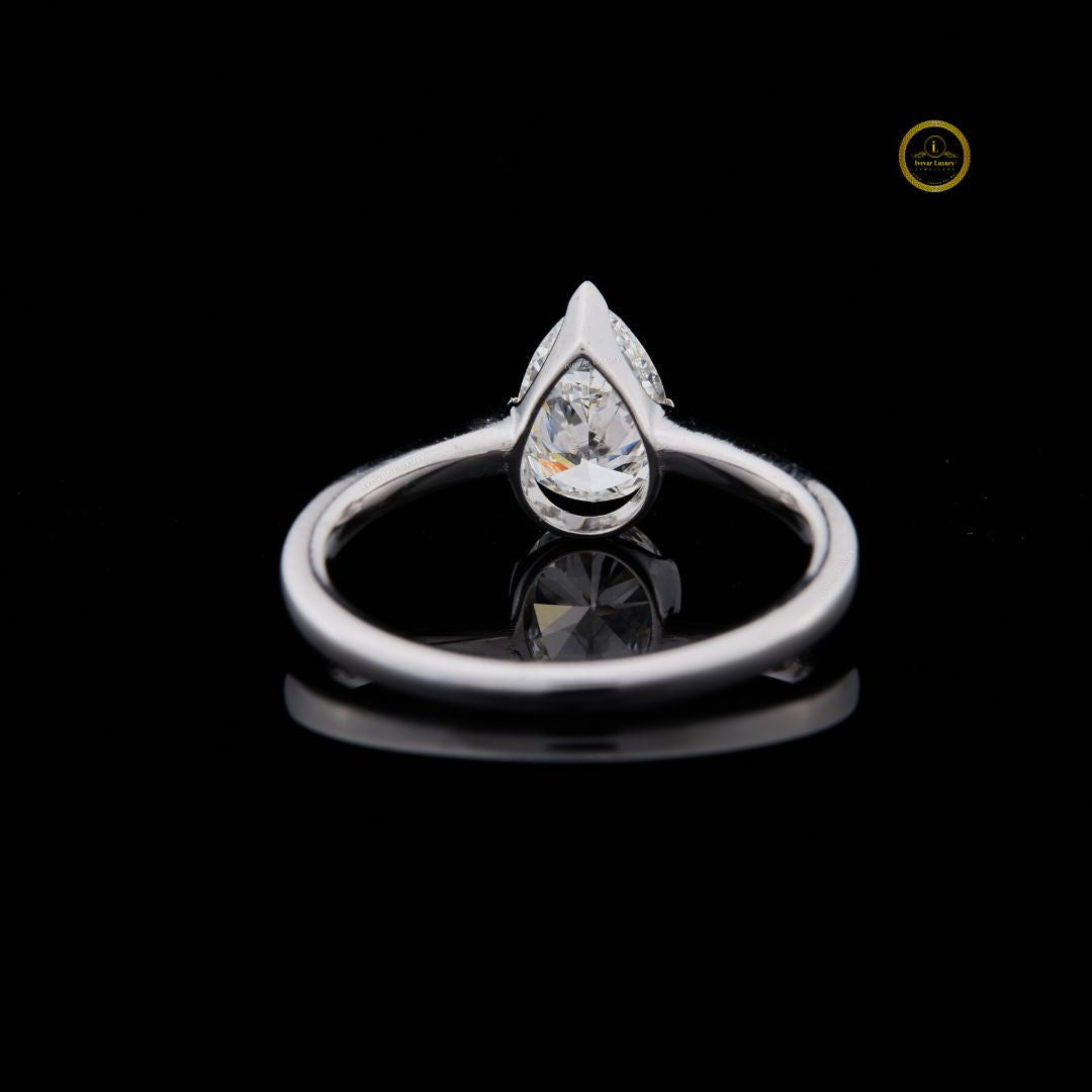 This elegant ring features a stunning pear-shaped diamond set in a sleek, polished band, creating a timeless and sophisticated look. The diamond’s brilliant facets catch the light beautifully, emphasizing its clarity and shape, while the minimalist band enhances the stone’s prominence without distraction. Perfect for those who appreciate refined luxury, this piece combines modern simplicity with classic elegance from Ivevar Luxury.