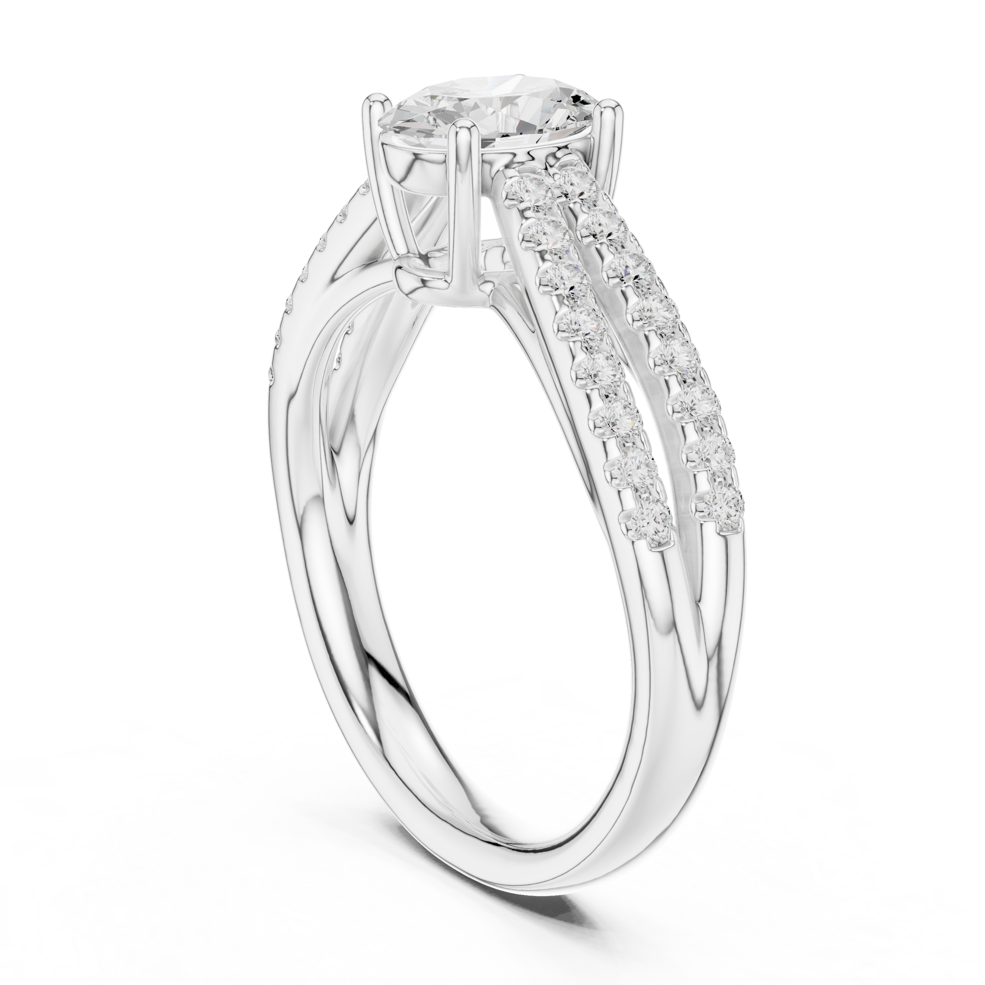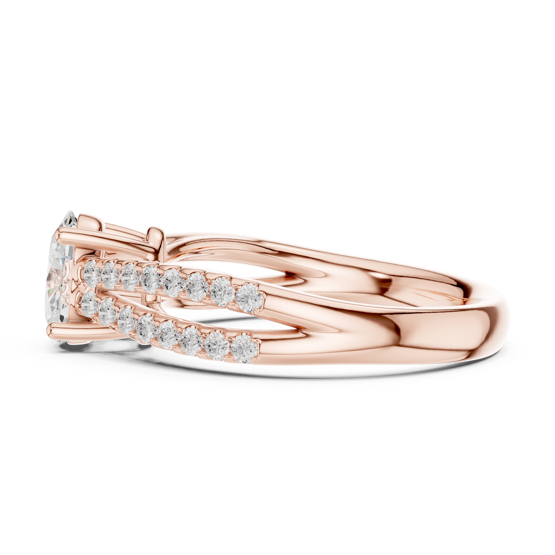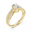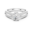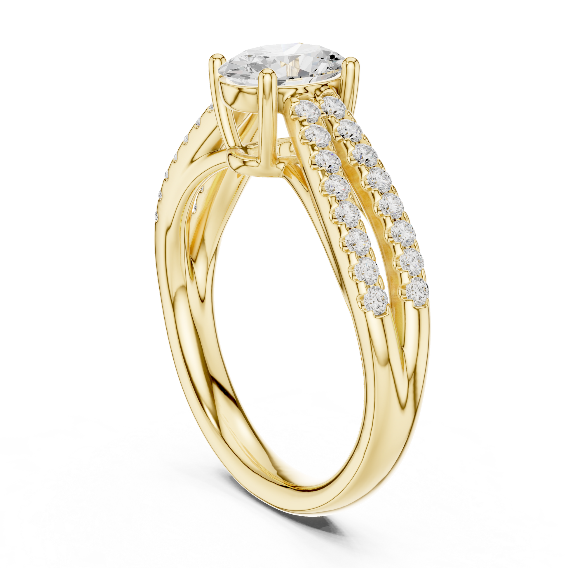 A masterpiece of refined brilliance, this oval cut engagement ring features a captivating oval-shaped center diamond set atop a graceful split-shank band adorned with pavé-set diamonds. Crafted in radiant gold, the design creates a harmonious balance of fluid curves and shimmering detail—highlighting the oval cut’s elongated silhouette while adding luxurious sparkle along the sides. Modern yet timeless, this ring delivers an elevated elegance that feels sophisticated, iconic, and effortlessly breathtaking.