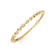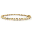 This elegant bracelet features a continuous row of leaf shaped polish gold links, each gracefully shaped and set with a brilliantly sparkling round diamond, creating a refined balance of shine and sophistication. The sleek, modern design gives it a timeless appeal, while the alternating contours of the gold add depth and movement to the piece. With its understated luxury and impeccable craftsmanship, this bracelet is perfect for both everyday elegance and special occasions, making it a versatile and captivating addition to any jewelry collection.