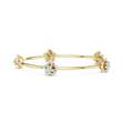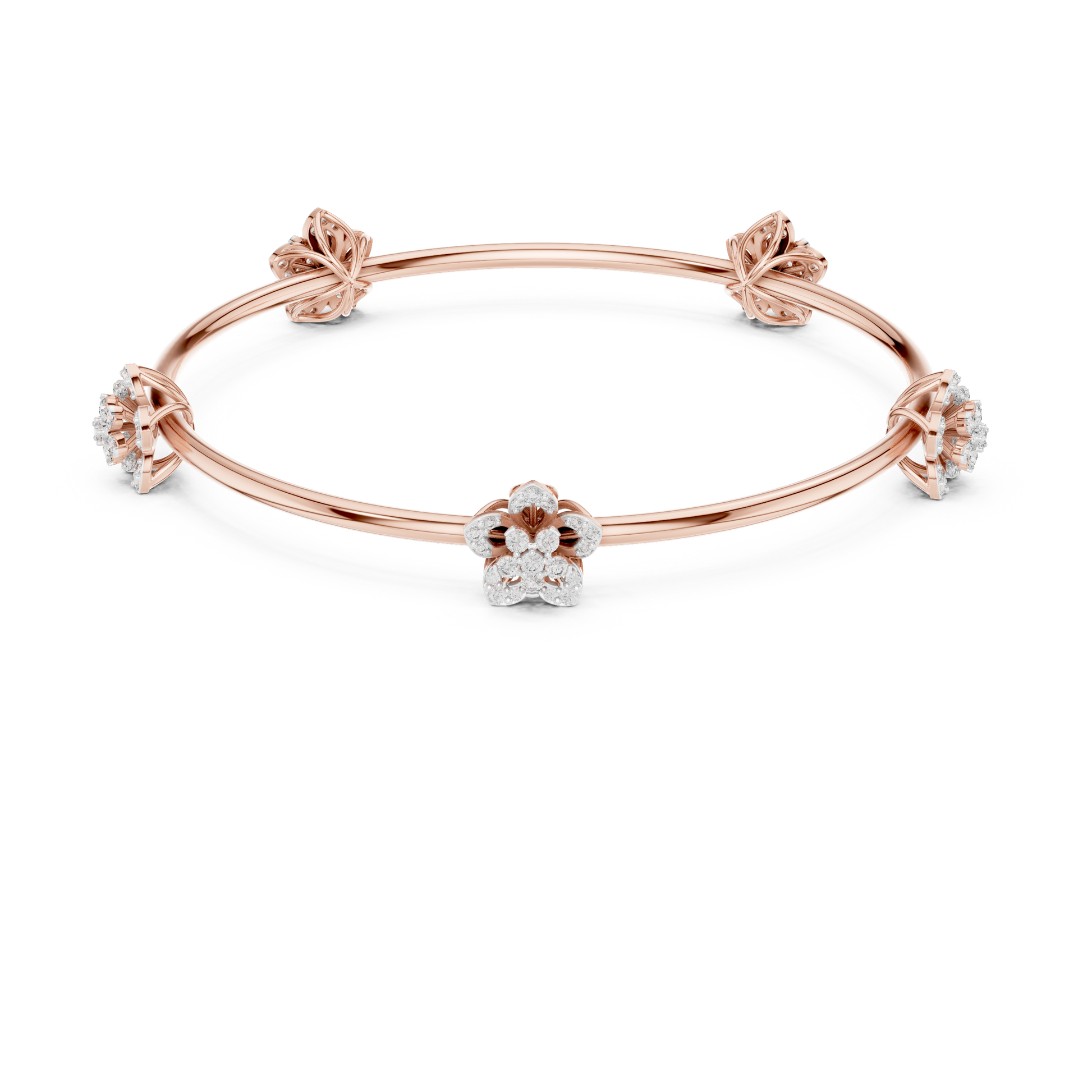 This exquisite gold bangle features a graceful open design adorned with sculpted floral motifs, blending polished gold petals with sparkling diamond accents for a refined, feminine look. Each blossom is delicately crafted to create depth and movement, while the slim, elegant band offers a comfortable, lightweight feel on the wrist. Perfect for both everyday elegance and special occasions, this bracelet captures the beauty of nature in a timeless silhouette that shines with understated luxury.