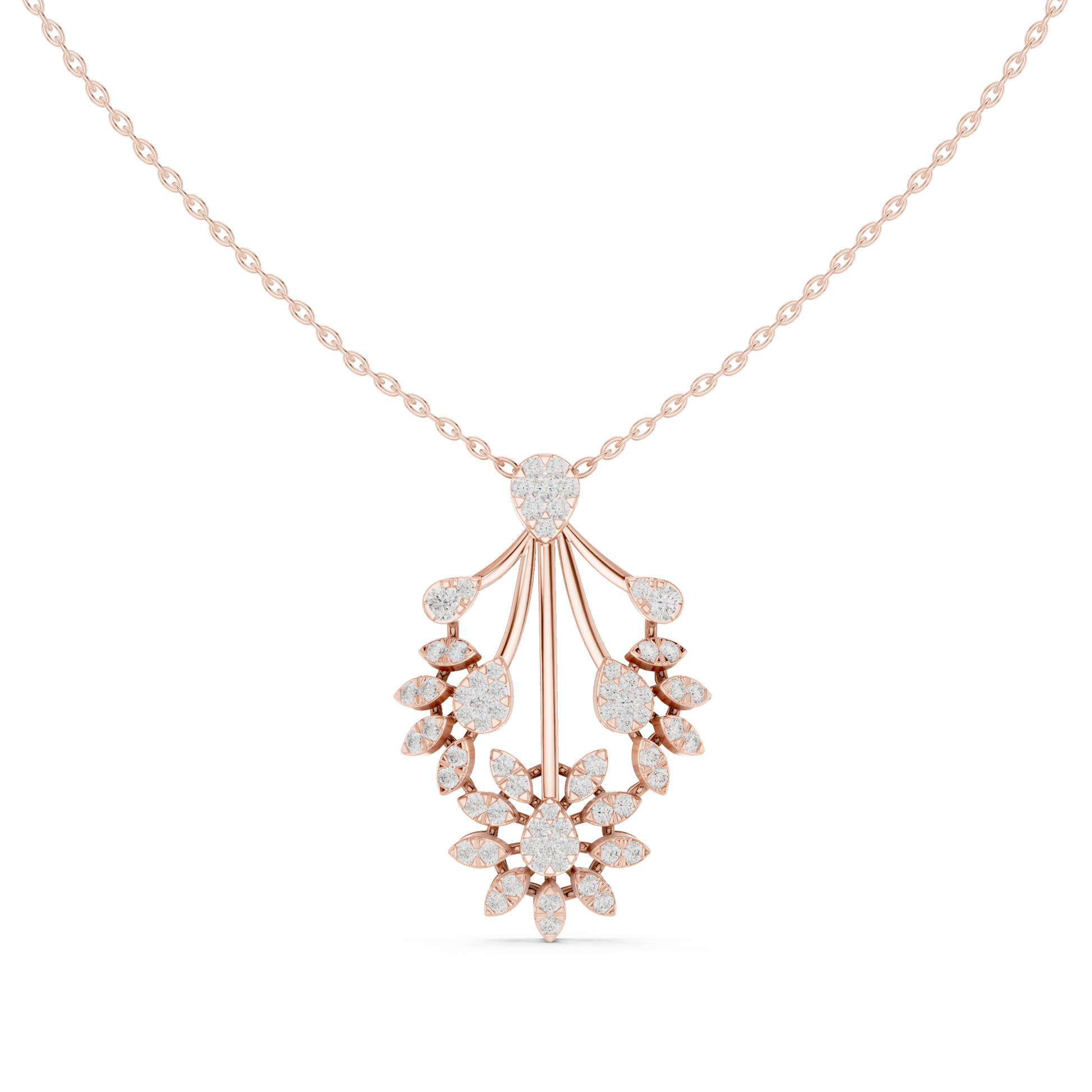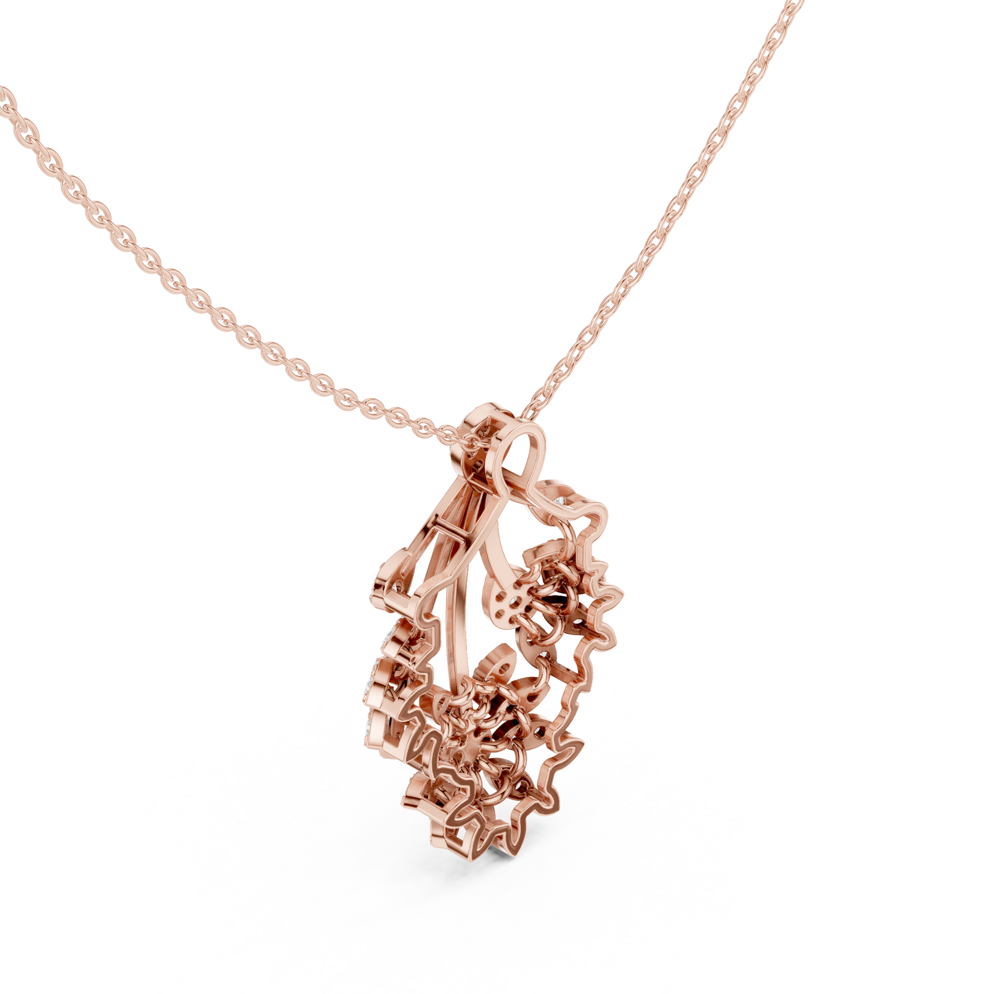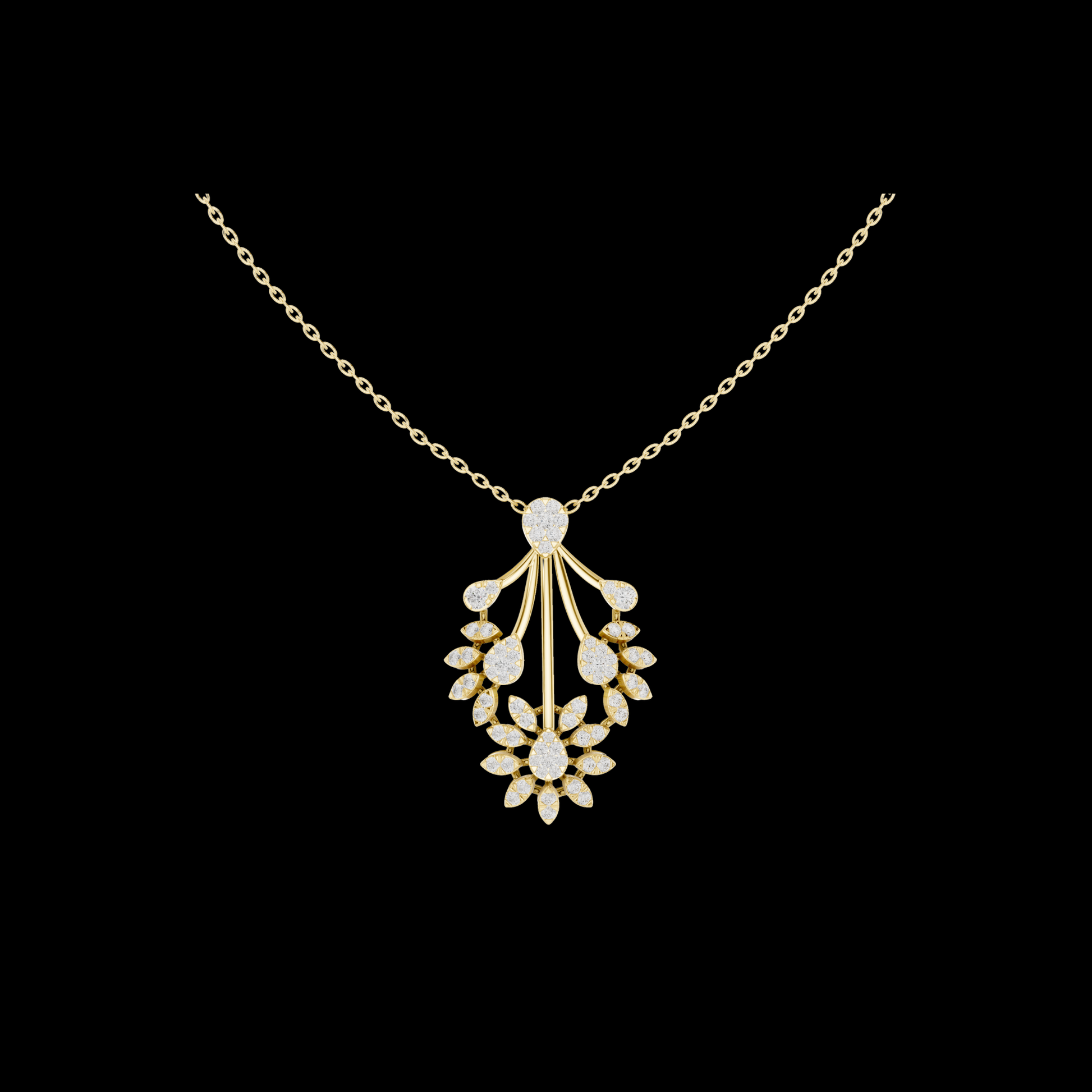 Discover refined elegance with this stunning floral diamond pendant. Inspired by graceful floral motifs, this pendant features a beautifully layered openwork design adorned with shimmering round-cut diamonds that reflect light from every angle. The sculpted gold framework adds depth and dimension, while the delicate gold chain ensures a lightweight yet luxurious feel.