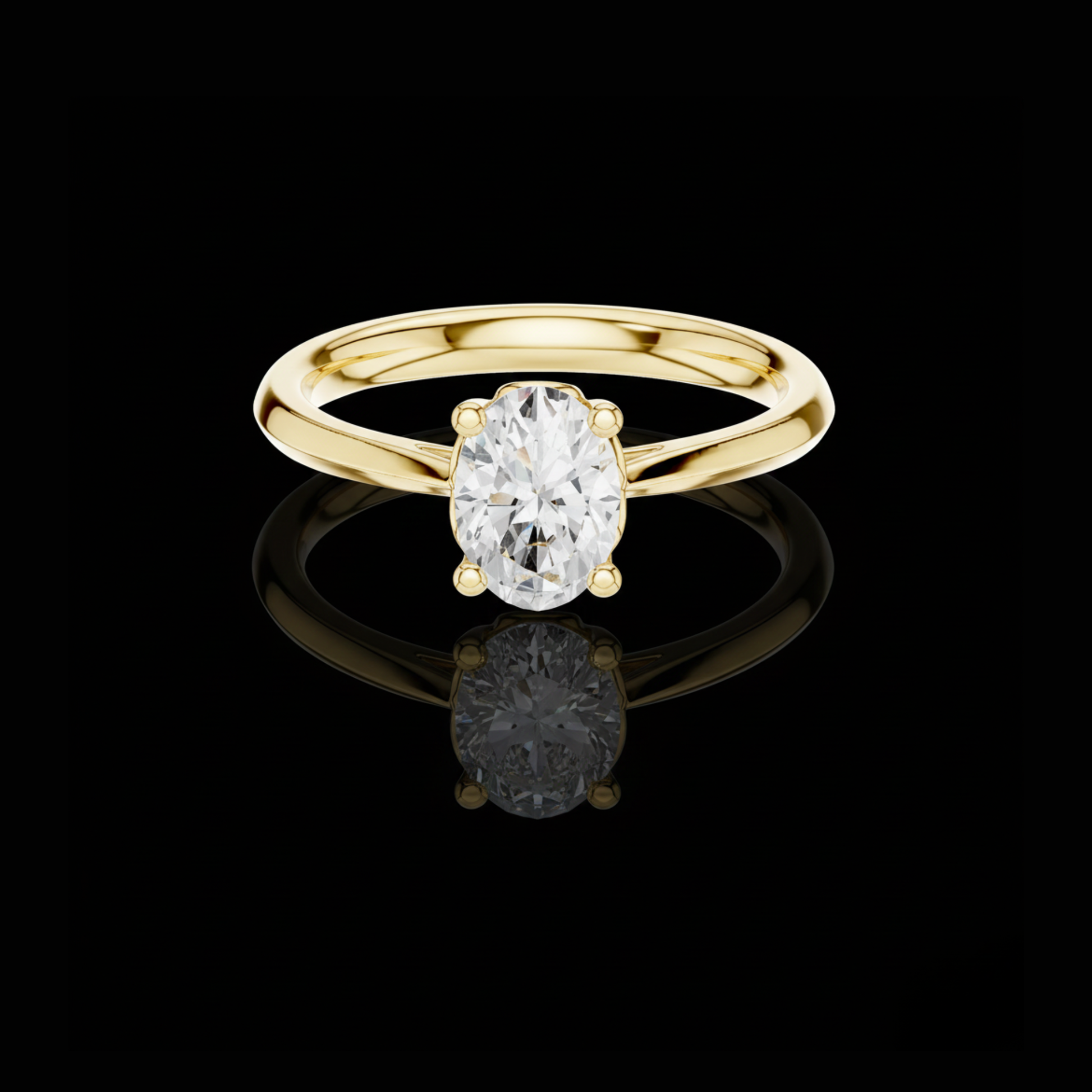 Introducing a stunning creation from Ivevar Luxury, designed for those who admire refined simplicity and timeless radiance. This exquisite piece features an oval-cut center stone set securely in a classic four-prong setting, allowing maximum brilliance and light reflection. The diamond rests on a high-polished gold band, offering a warm, luxurious glow that enhances the stone’s natural sparkle. Crafted with smooth edges and a clean, minimalist silhouette, this ring embodies both elegance and modern sophistication.