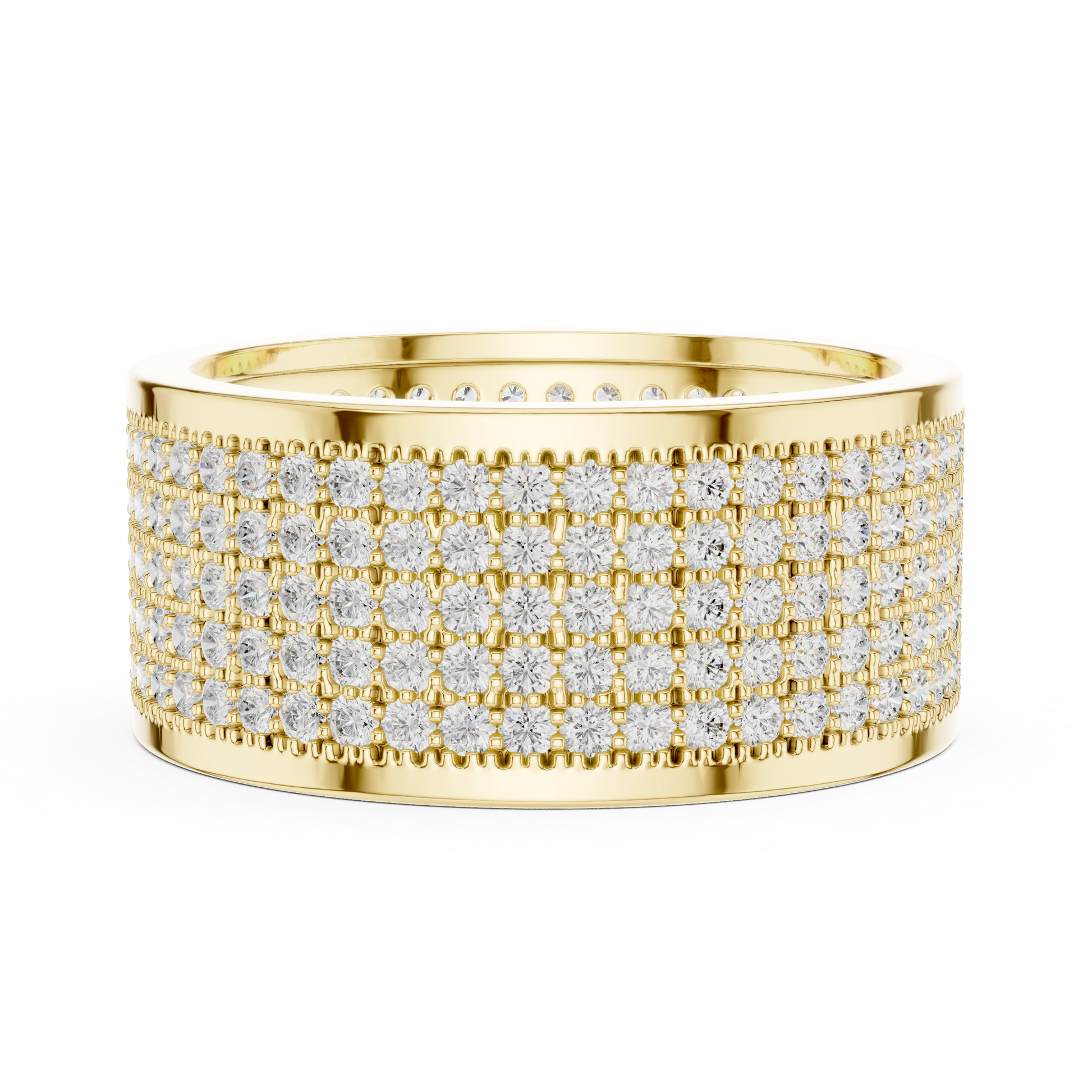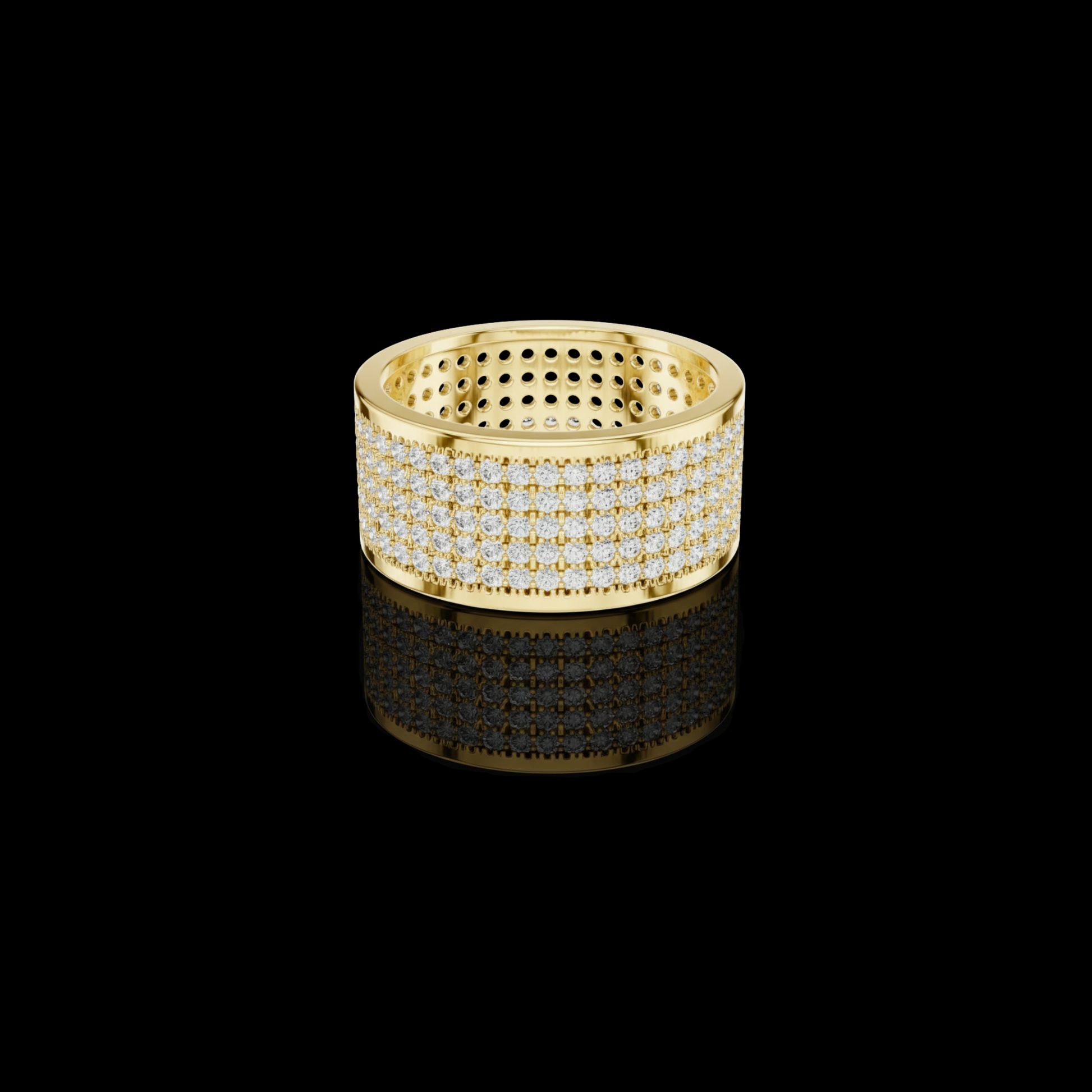 Make an unforgettable impression with this exquisite diamond statement band, crafted in radiant and adorned with meticulously aligned rows of brilliant pavé-set diamonds. The wide-band silhouette delivers a powerful, contemporary look, while the expertly polished gold interior ensures exceptional comfort for everyday luxury. Designed to reflect light from every angle, this ring embodies confidence, opulence, and refined craftsmanship, making it a perfect choice for those who appreciate bold elegance and timeless brilliance.