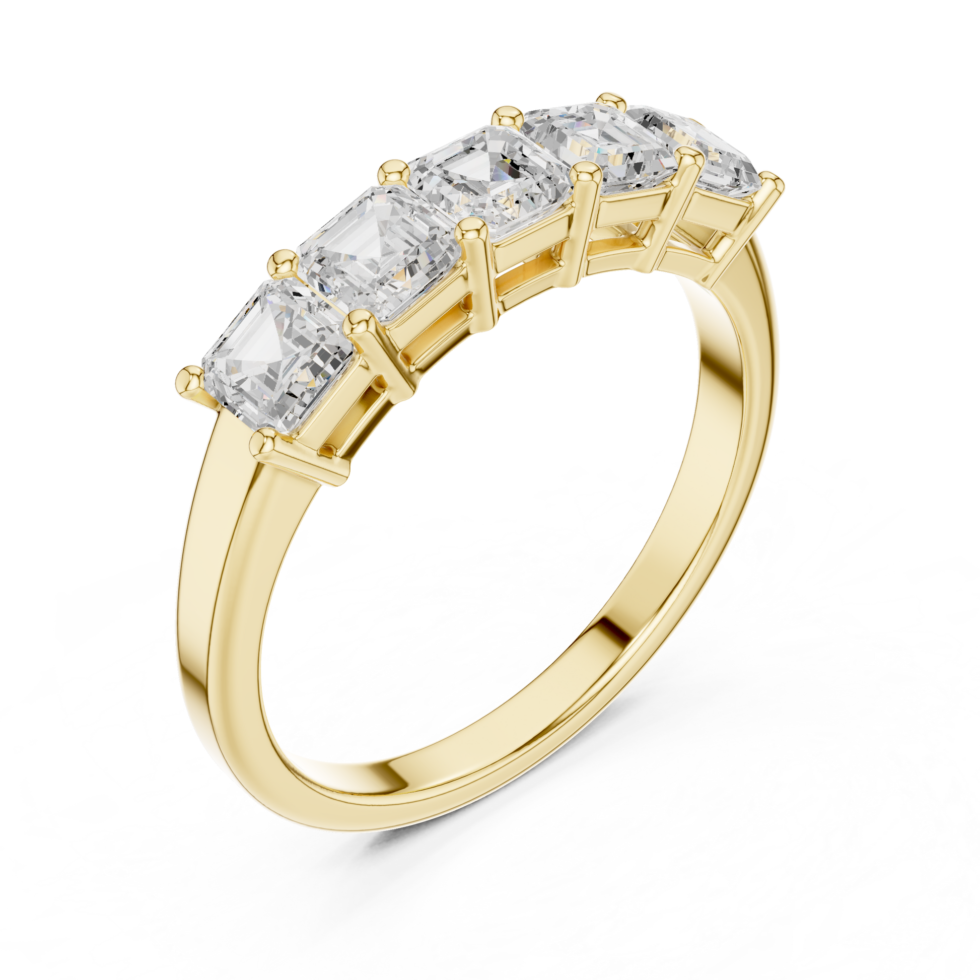 This emerald Cut Diamond Half-Eternity Band showcases a row of stunning step-cut Asscher diamonds, each precision-set in rich gold. Known for their mirror-like brilliance and geometric symmetry, these diamonds create a bold yet timeless look. Perfect as an anniversary band, statement ring, or fine stacking piece, this design reflects the refined craftsmanship and luxurious aesthetic of Ivevar Luxury. A true classic for women who appreciate clean lines, sophisticated sparkle, and modern elegance.