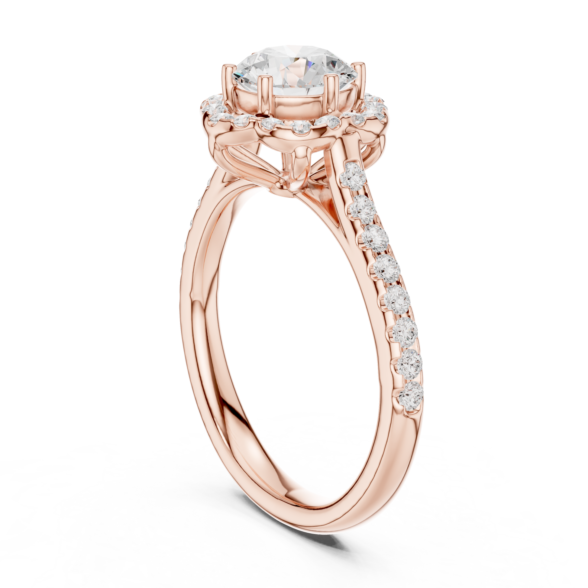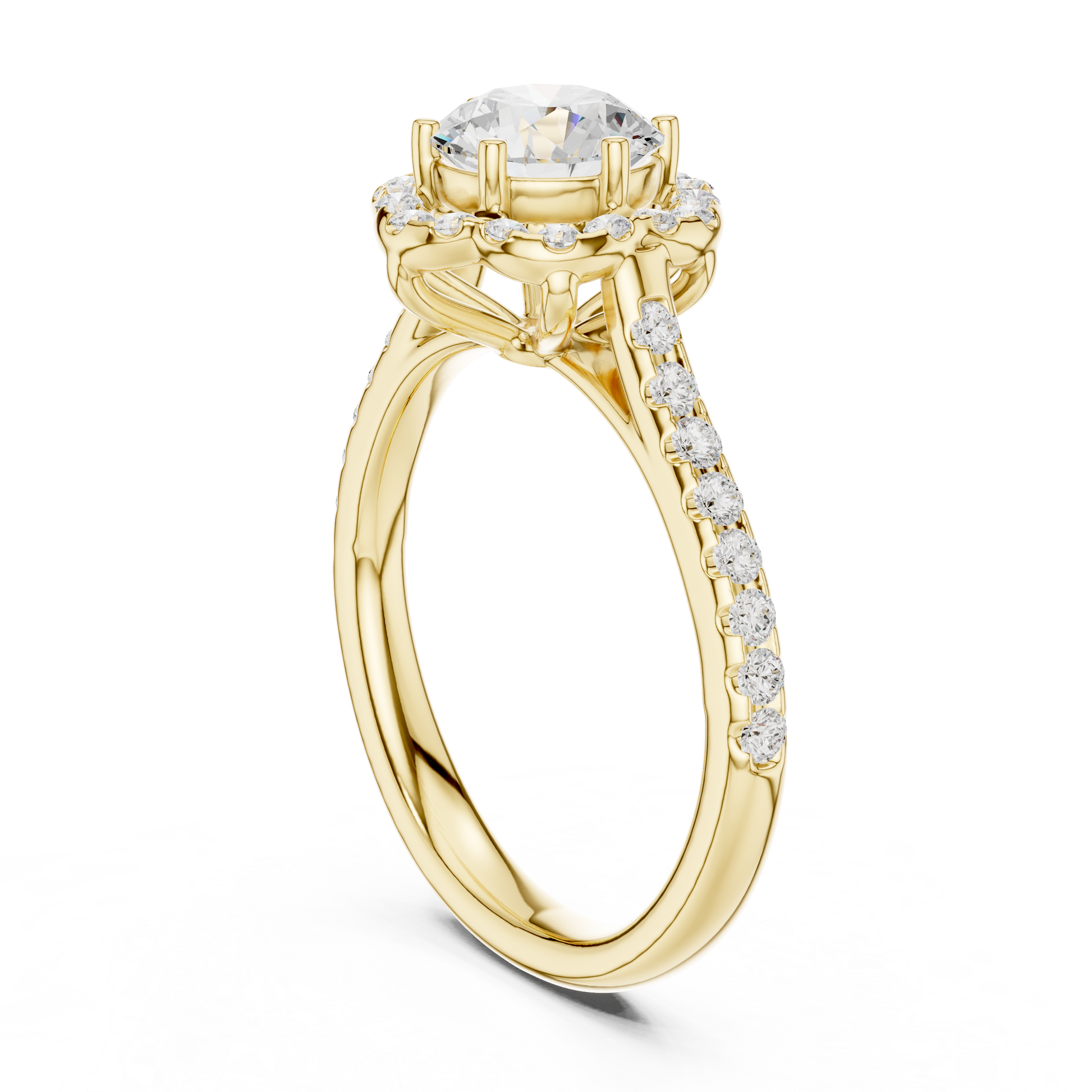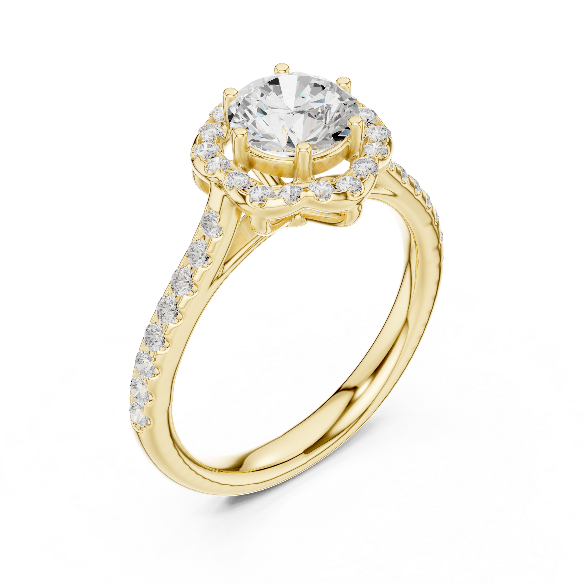 Experience the perfect blend of elegance and brilliance with this exquisite Split Shank Diamond Ring, set in glowing gold. A dazzling round-cut center stone commands attention, enhanced by a double row of perfectly aligned pavé diamonds that create a graceful split-shank silhouette. Crafted for those who desire both modern sophistication and timeless luxury, this ring delivers exceptional sparkle from every angle—ideal for engagements, anniversaries, or elevating your fine jewelry collection.