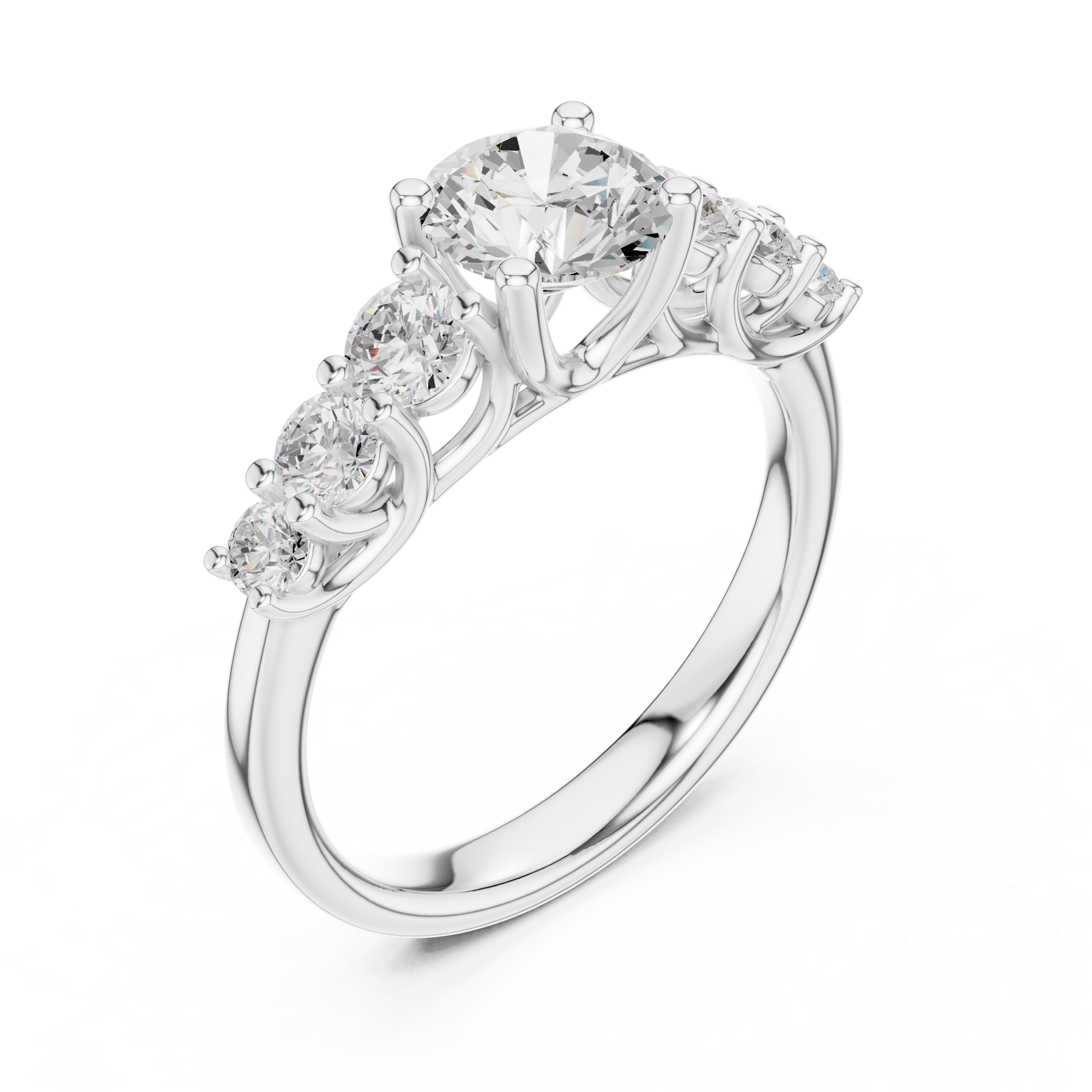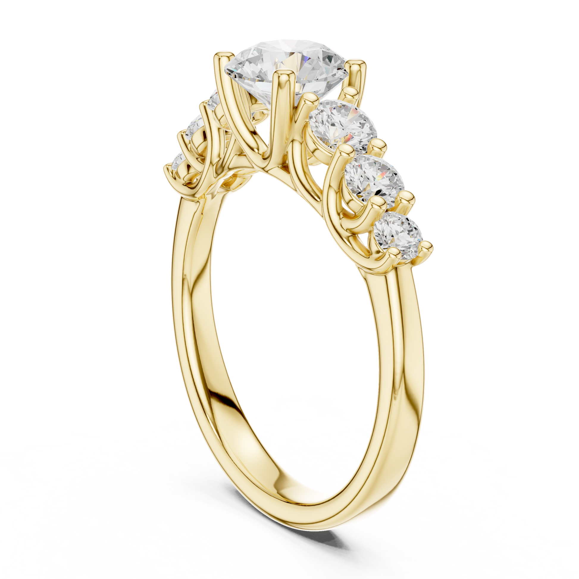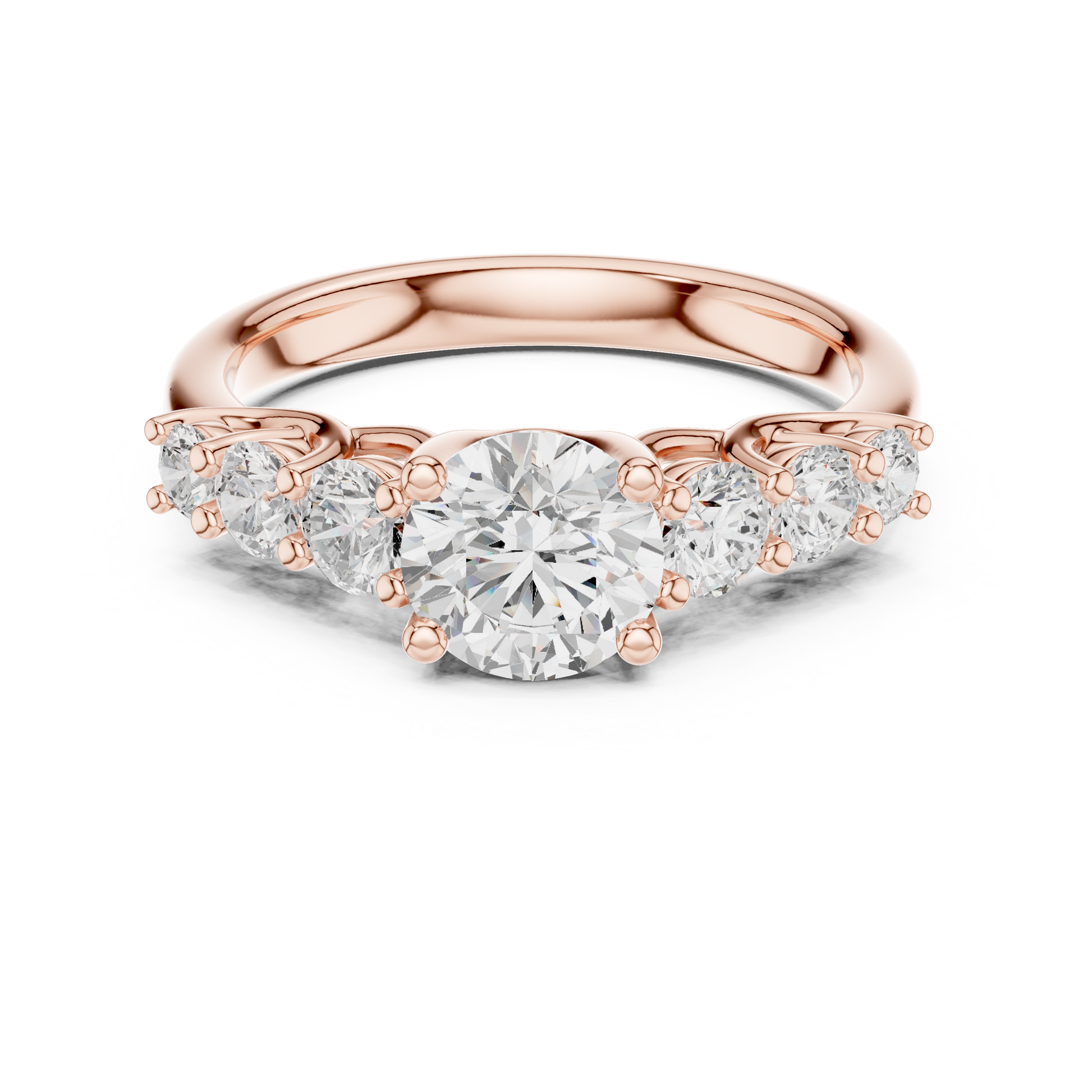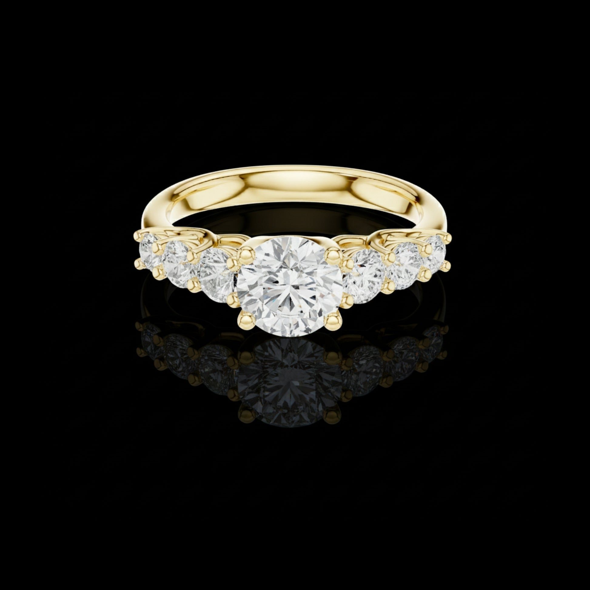 This breathtaking seven-stone diamond ring features a brilliant round-cut center diamond gracefully enhanced by four sparkling side stones, all set in rich gold. Designed for maximum brilliance and timeless elegance, this piece is perfect for engagements, anniversaries, or anyone who loves refined luxury. Its classic silhouette and radiant diamonds create a dazzling statement that never goes unnoticed.