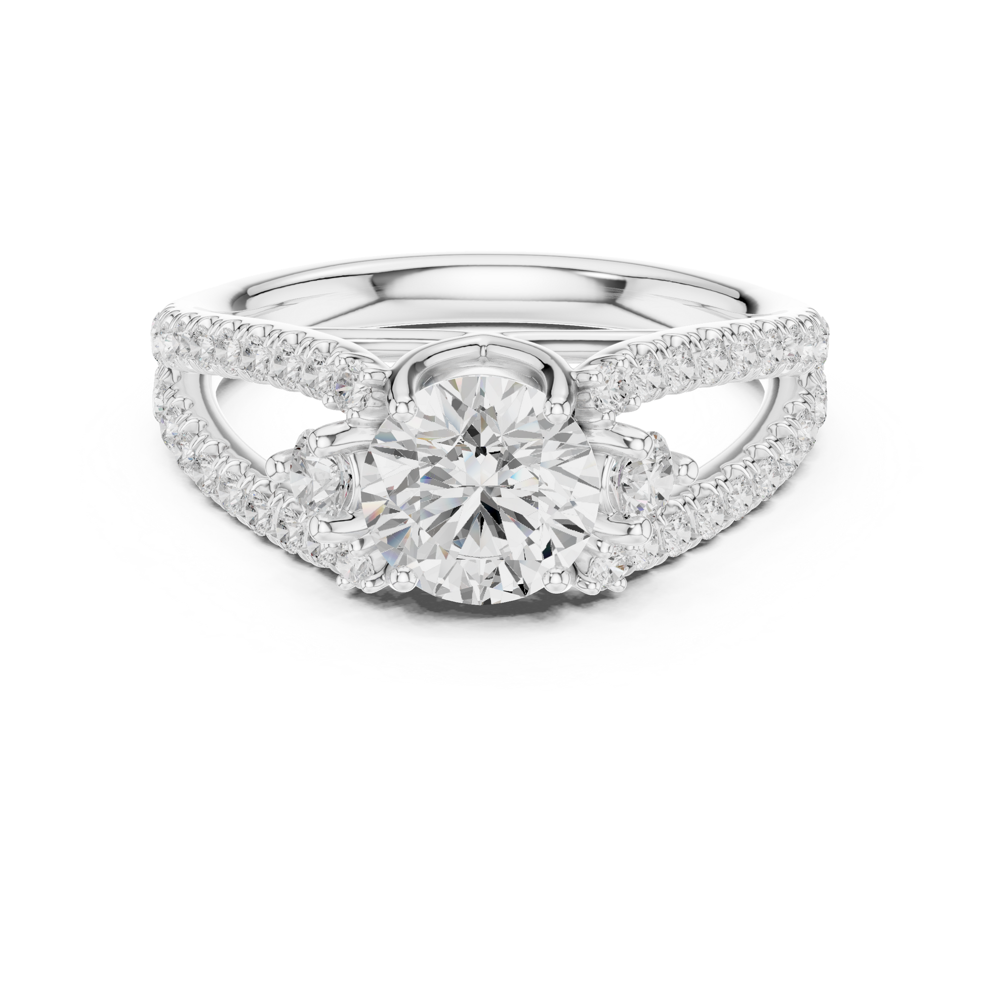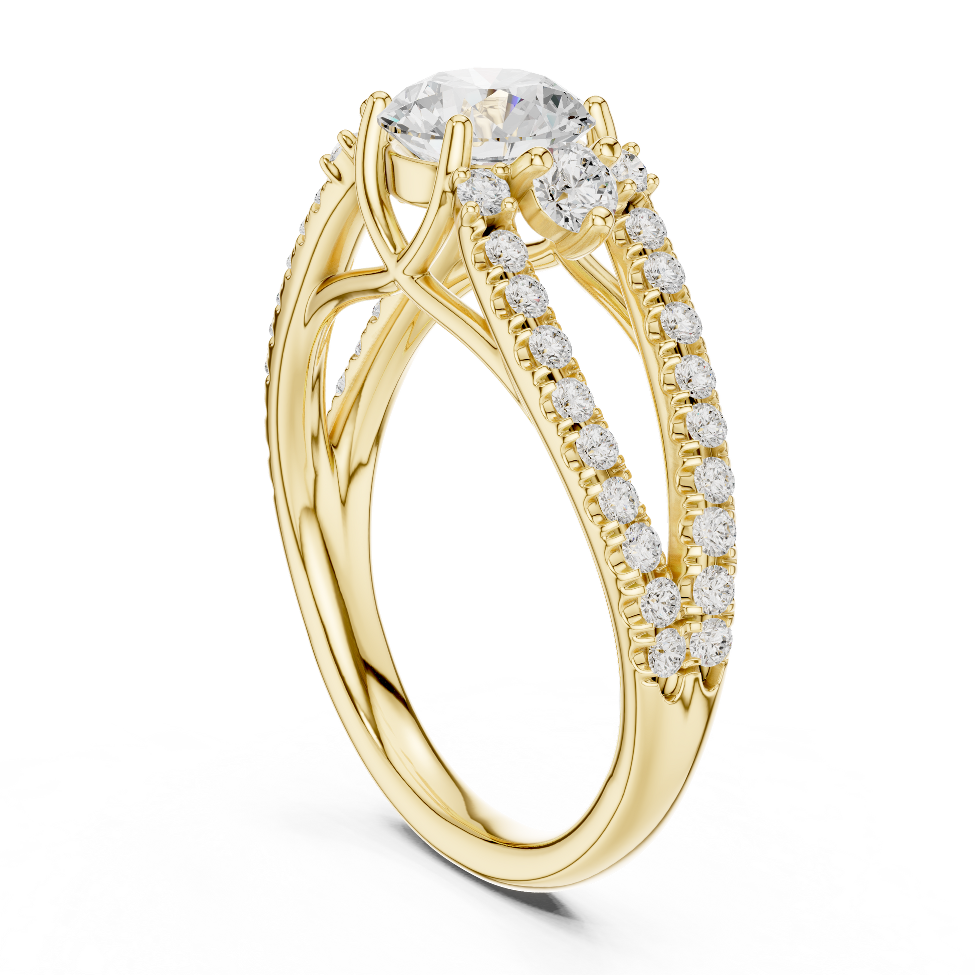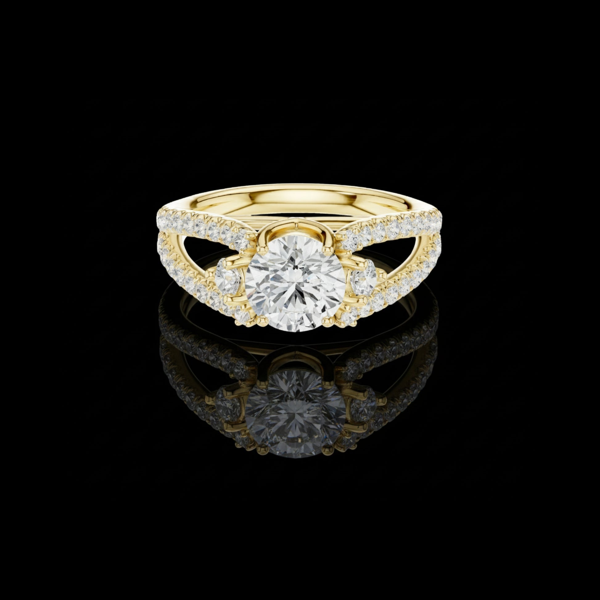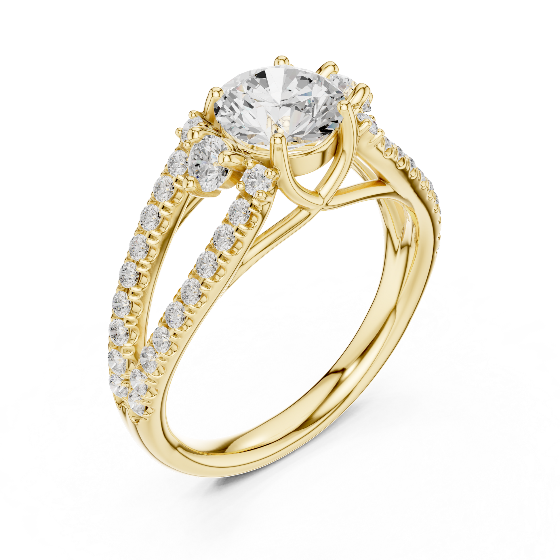 This breathtaking ring features a brilliant round-cut center diamond set on an elegant split-shank design. The band is adorned with shimmering pavé-set diamonds that add exceptional sparkle from every angle. Crafted in radiant gold, this ring blends luxury, sophistication, and timeless design—perfect for engagements, anniversaries, or anyone who loves bold, glamorous jewelry. Its multi-row brilliance and statement silhouette make it a truly unforgettable piece.