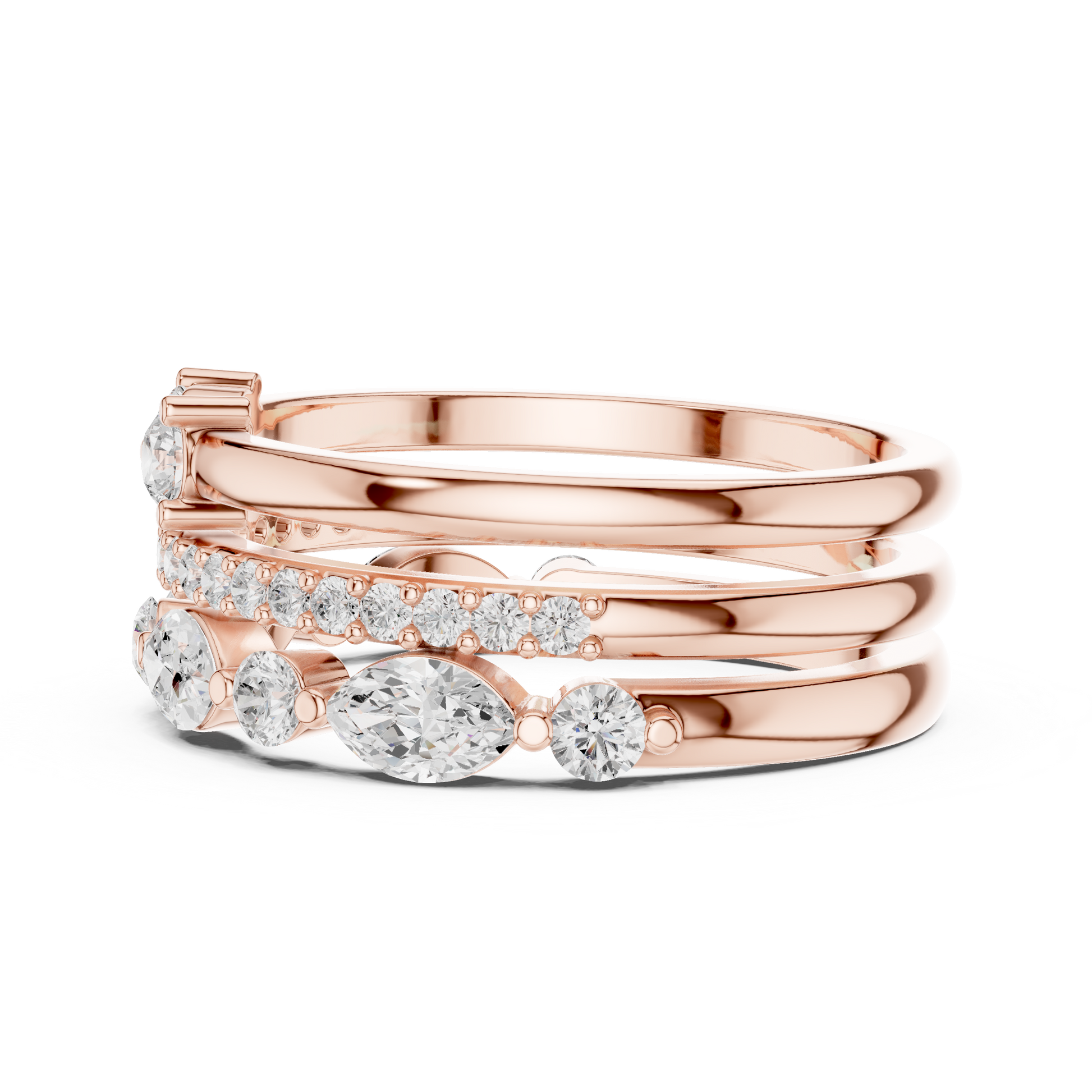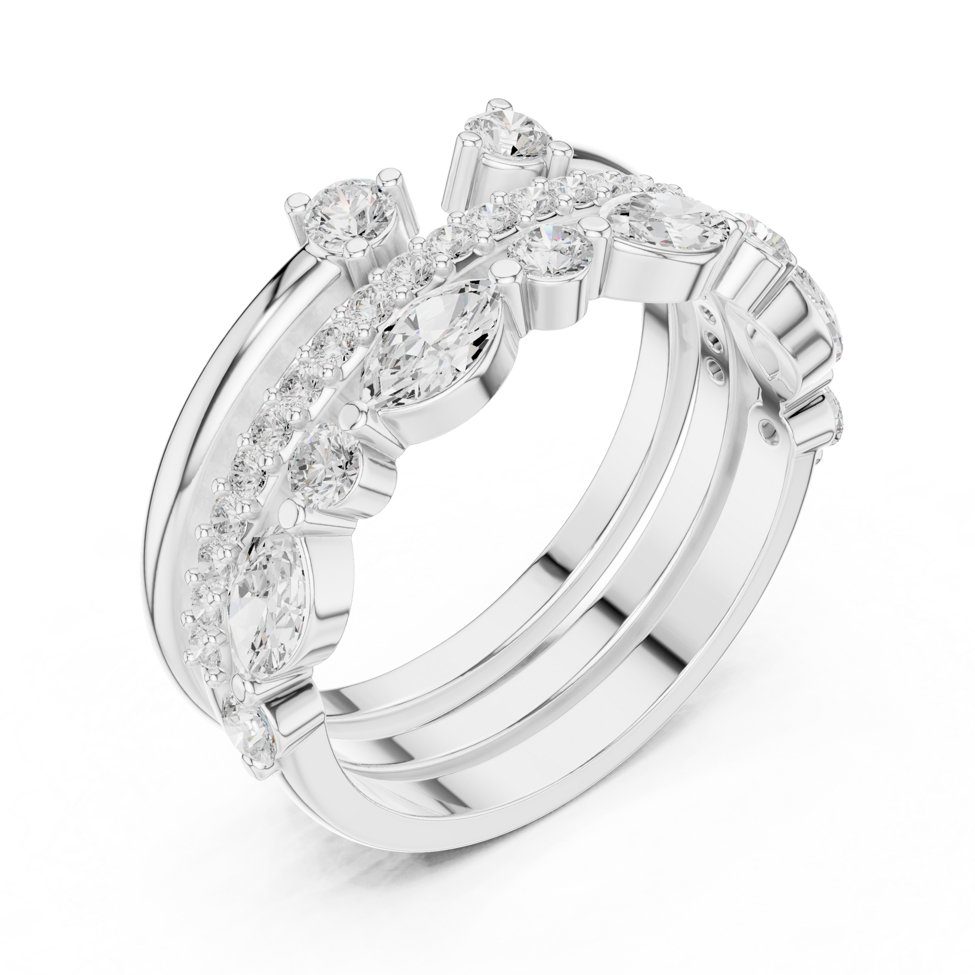 This Majestic Triple-Layer Diamond Stacking Ring Set features a breathtaking combination of round-cut, marquise-cut, and pave set diamonds arranged in a perfectly balanced 18K gold trio. Each ring is crafted with precision, allowing you to wear them together for a bold layered statement or individually for refined elegance. The blend of shapes and shimmer creates a luxury stacked look that radiates brilliance from every angle. A standout piece from Ivevar Luxury, designed for women who love sophisticated sparkle, versatility, and modern glamour.